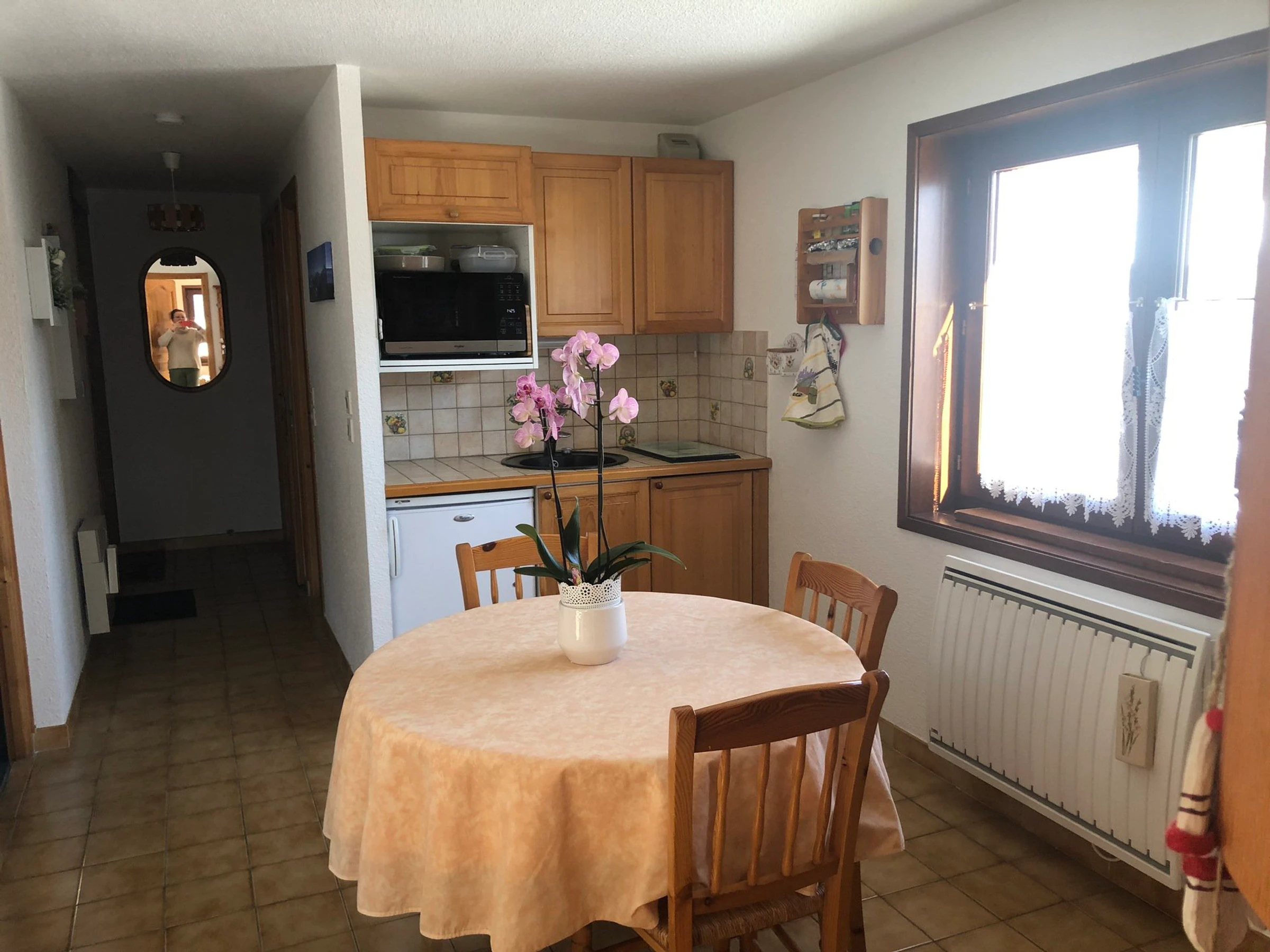 Vous avez une entrée, deux chambres dont une avec un lit double 140x190, et la seconde avec deux lits simple 90x190. Une salle de bain, un WC séparé, un séjour avec un canapé d'angle convertible, une cuisine, et une terrasse exposé côté sud permettant de profiter du soleil et de la magnifique vue sur les montagnes et le village.