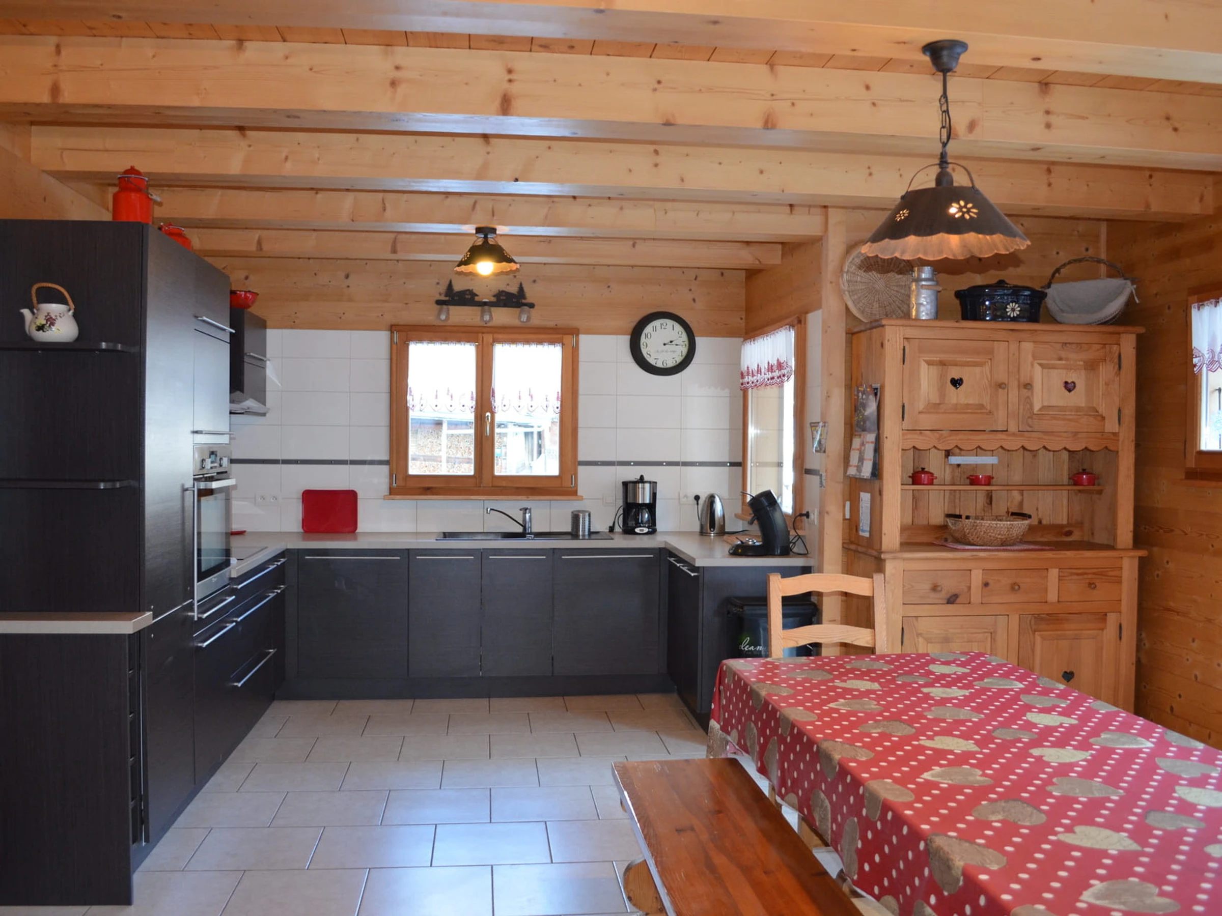 Cuisine ouverte, 1 Réfrigérateur(s) avec partie congélateur, 1 Four(s), 1 Micro-ondes, 1 Lave-vaisselle, 2 Appareil(s) à raclette, 2 Appareil(s) à fondue, 1 Bouilloire(s) électrique(s), 1 Grille-pain, 1 Cafetière(s) filtre, Cafetière(s) à dosettes : SENSEO + NESPRESSO