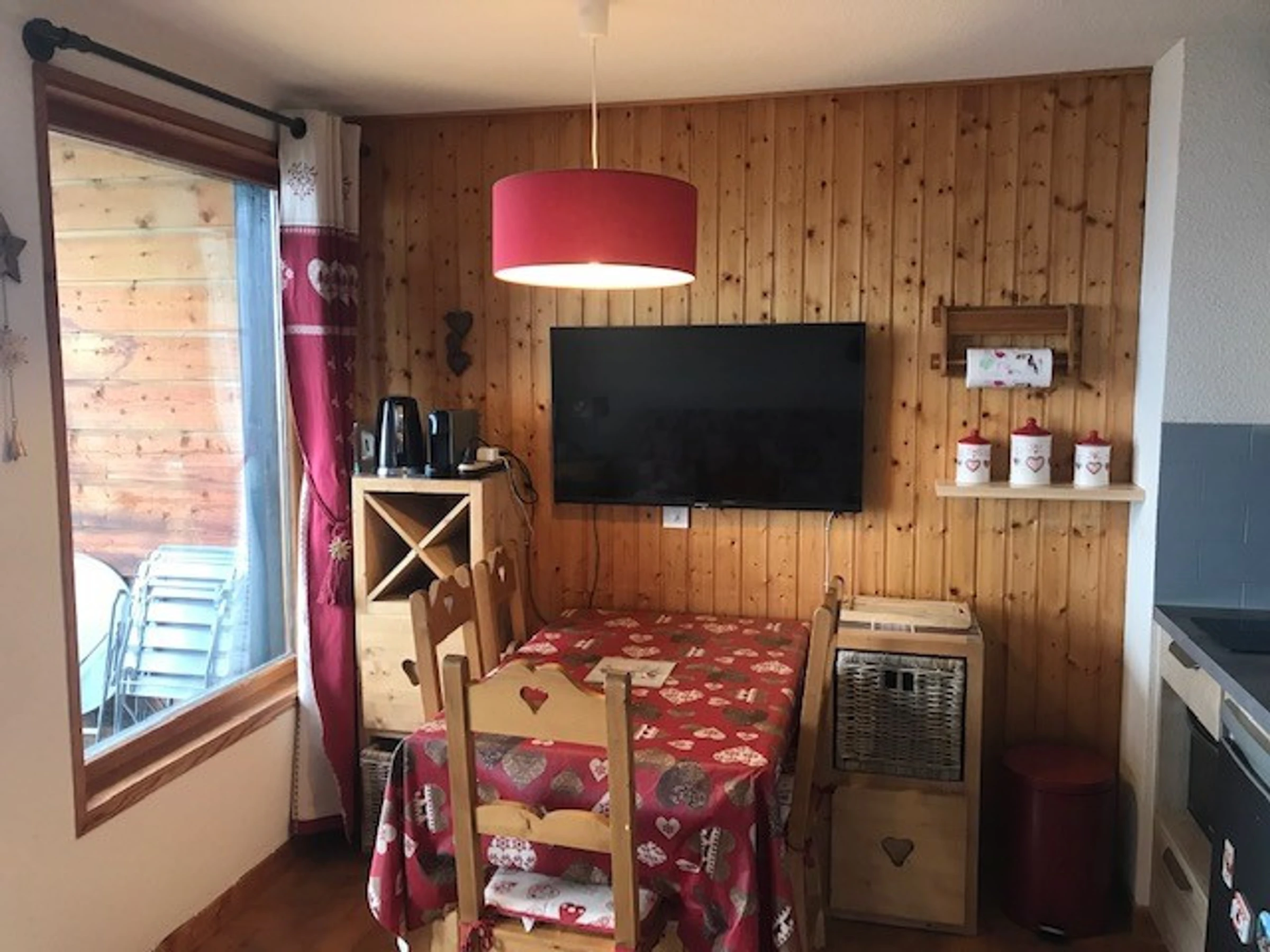 Coin cuisine (kitchenette), 1 Réfrigérateur(s), Combi four/micro-ondes, 1 Appareil(s) à raclette, 1 Appareil(s) à fondue, 1 Bouilloire(s) électrique(s), 1 Grille-pain, 1 Cafetière(s) filtre, Cafetière(s) à dosettes : NESPRESSO