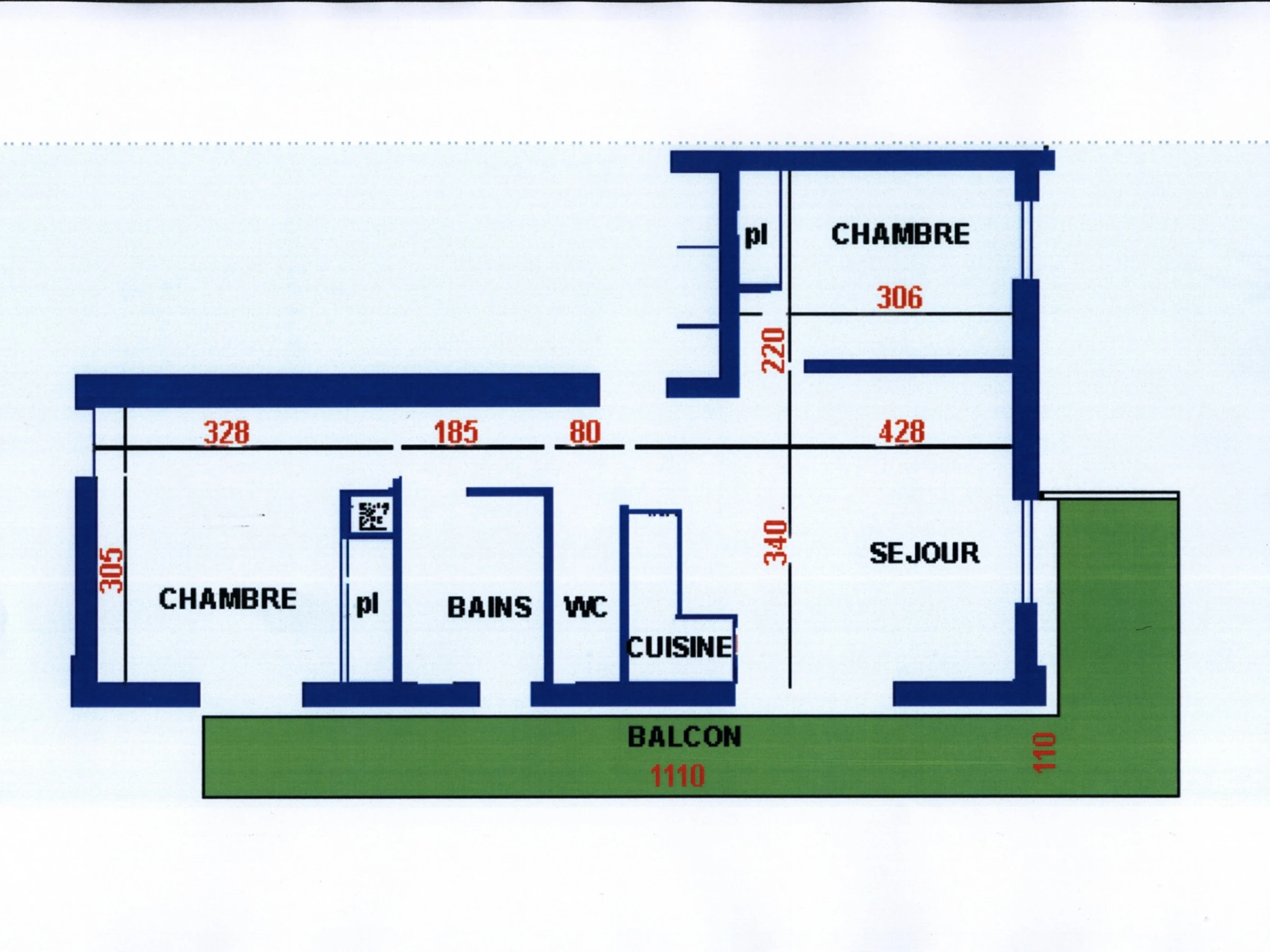 Nombre de salles de bains : 1 salle(s) de bains, Nombre de chambres : 2 chambre(s)