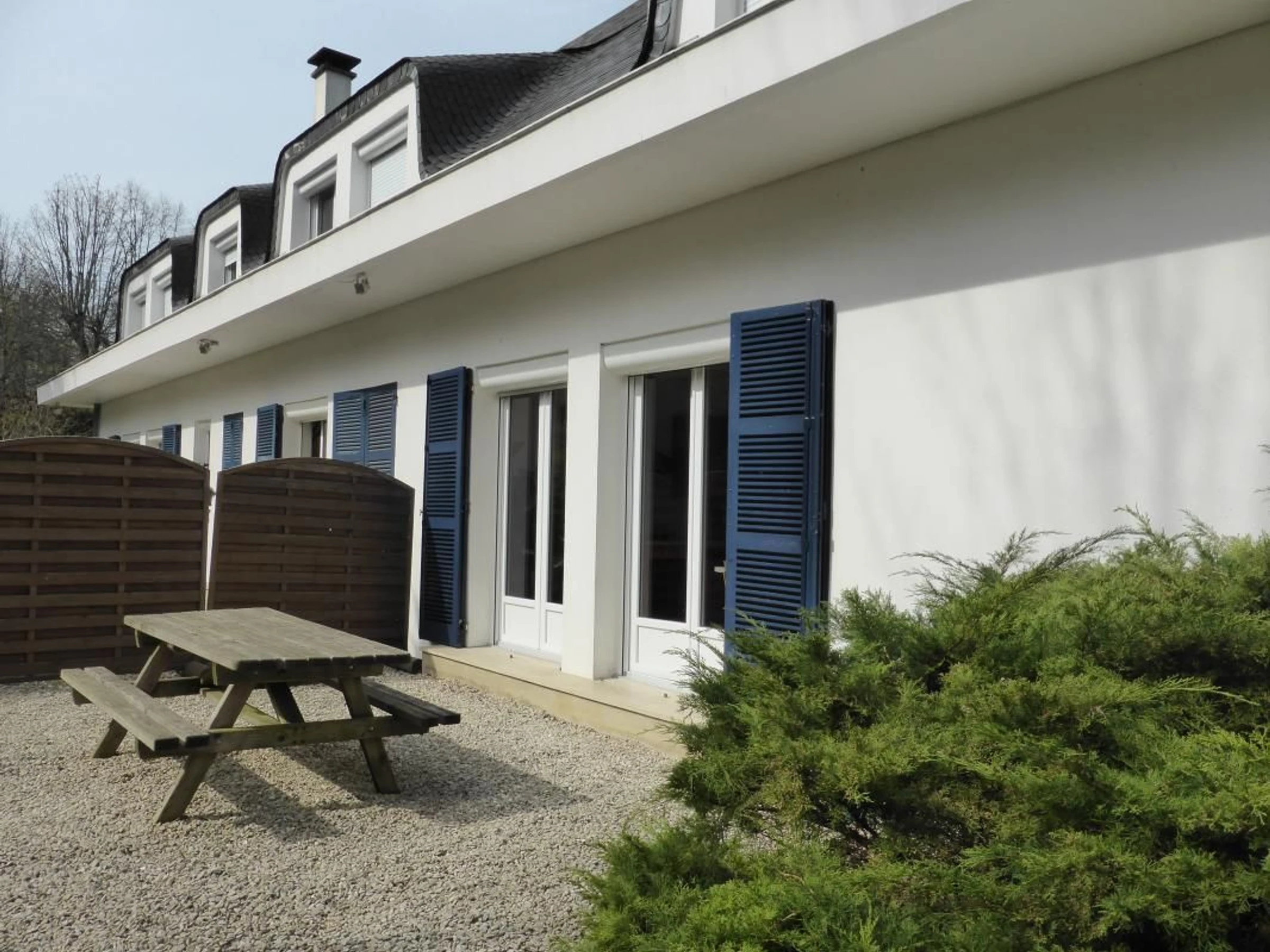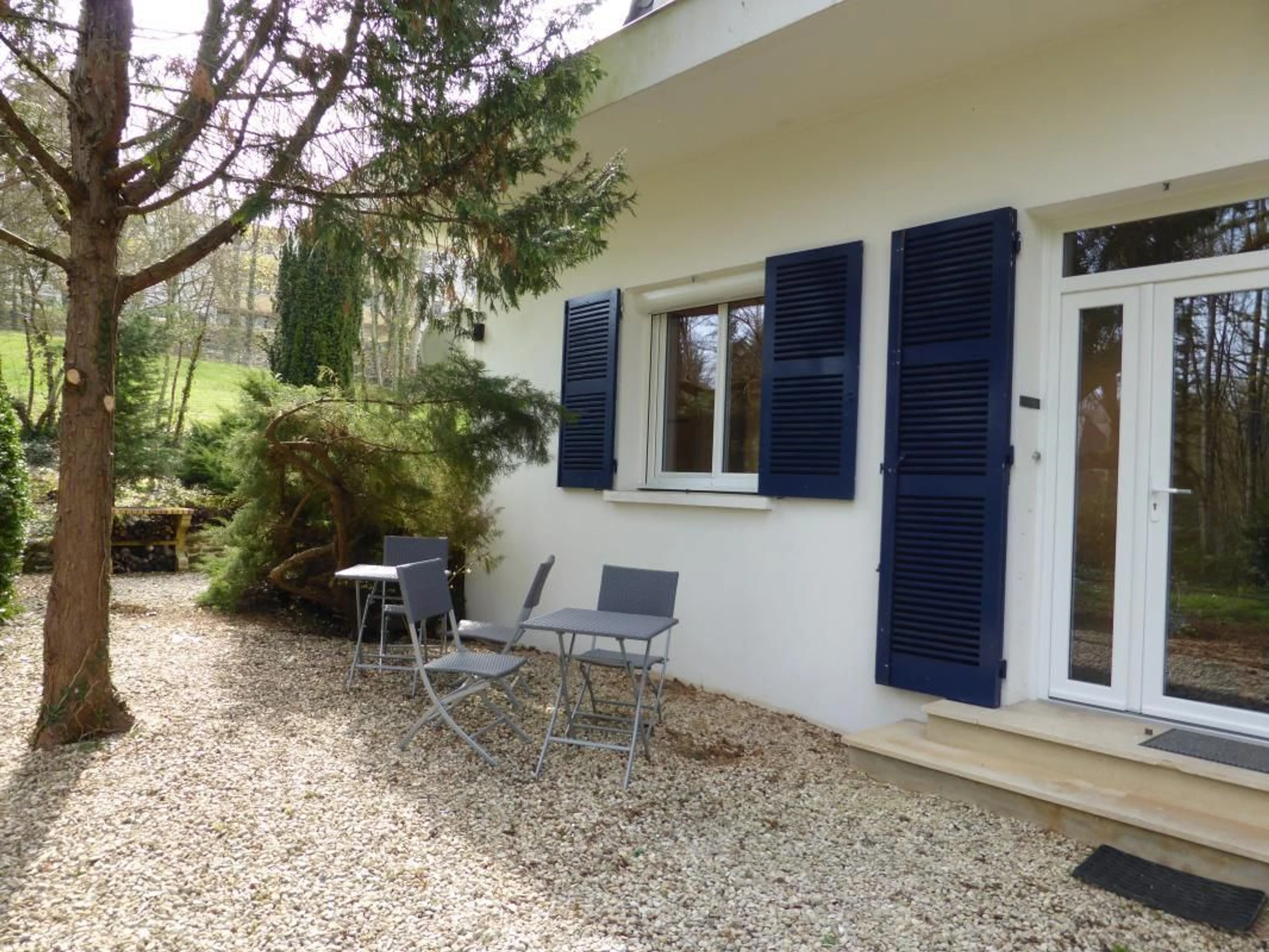 Dans une belle propriété à proximité du centre ville avec tous commerces. Maison récente sur un seul niveau, en mitoyenneté avec la maison des propriétaires, situé dans un parc arboré clos de 5500 m². Entrée indépendante.