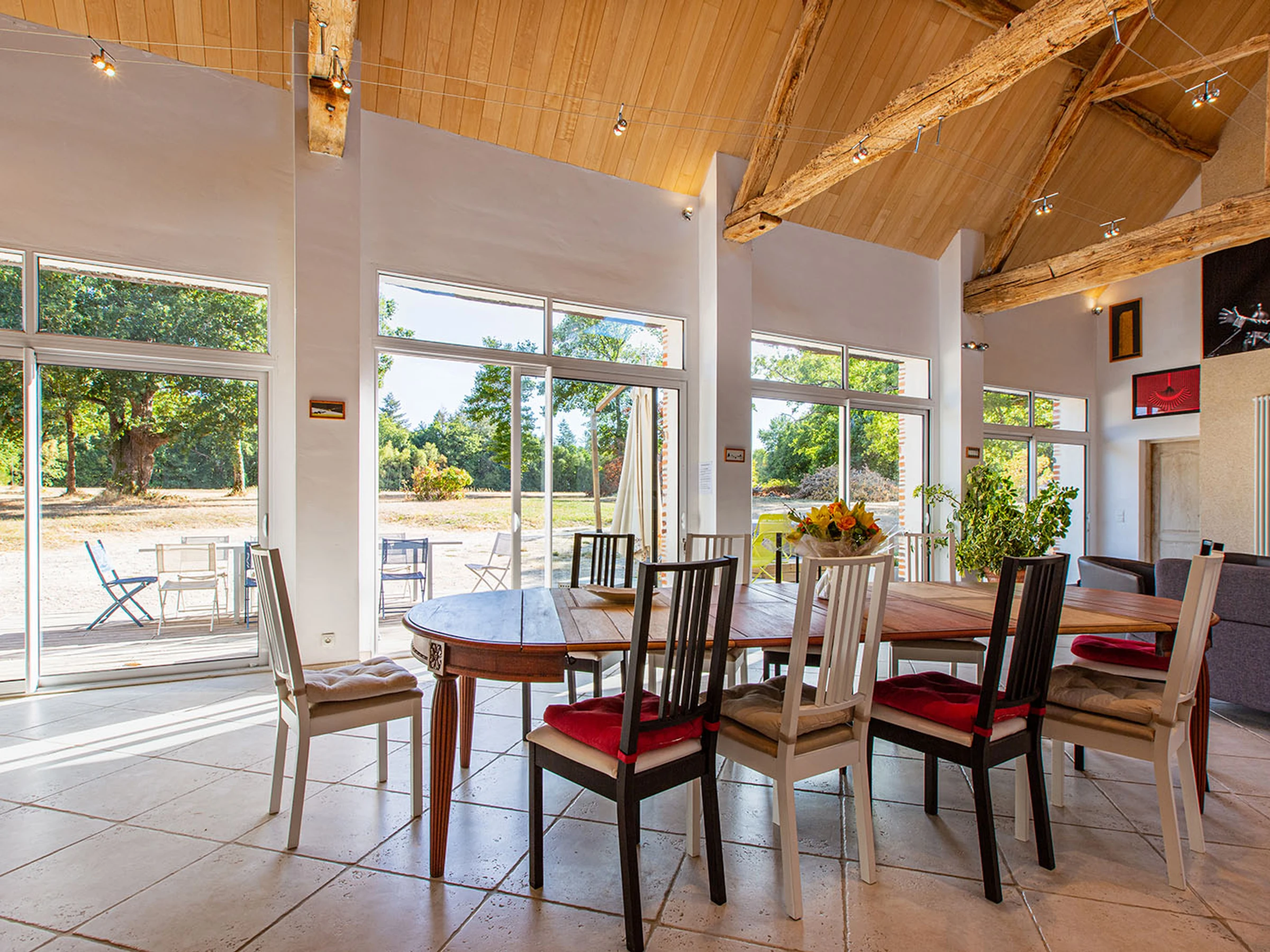 Gîte tout inclus (sauf taxe de séjour). De l'espace à l'intérieur comme à l'extérieur, vous y trouverez tout le confort, avec une cuisine toute équipée (+ sa cheminée/ barbecue et sa cafetière Nespresso) ouverte sur la grande salle à vivre, ainsi que 3 grandes chambres (dont une en rez de chaussée) et leurs salles de bains respectives. Le propriétaire étant caviste, il vous propose (en extra) des dégustations, ainsi que la possibilité de trouver à votre arrivée, le vin que vous lui aurez commandé. La maîtresse de maison peut vous proposer, en extra, un soin relaxant et énergisant, étant maître de reiki. Équipements de loisirs : un portique, un boulodrome, des raquettes de badminton et les volants, 10 vélos adultes (+ 1 siège enfant),3 vélos enfant, un sauna et un bain nordique 6/7 personnes. Les promenades en forêt sont accessibles à partir du gîte. Hébergement non-fumeur. Lits faits à votre arrivée. Linge de toilette et de maison inclus avec des produits ménager d'accueil. Entre vigne et forêt, au milieu d'une propriété familiale Solognote, entouré de sculptures, vous êtes invité au repos, aux retrouvailles familiales ou amicales, ou aux loisirs culturels et/ou sportifs (prêt de vélos et d'un siège enfant), ainsi qu'à des séminaires efficaces et ressourçants. Les propriétaires, passionnés par les chiens, en possèdent 3 et accueilleront avec plaisir les vôtres (voir les tarifs). Entre temps, les golfs, ball-trap, centre aquatique (center-parcs), clubs équestres, Châteaux de la Loire, zoo de Beauval vous attendent.À bientôt en Sologne.
