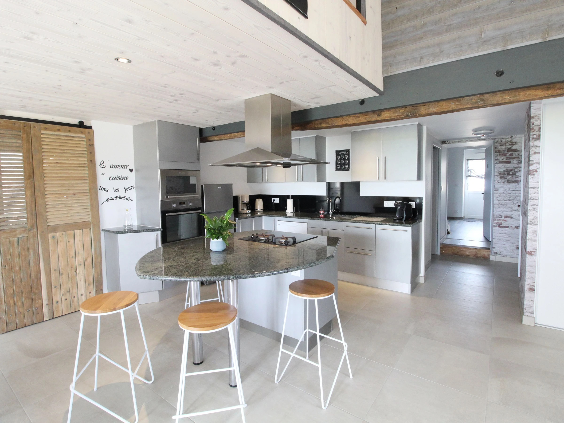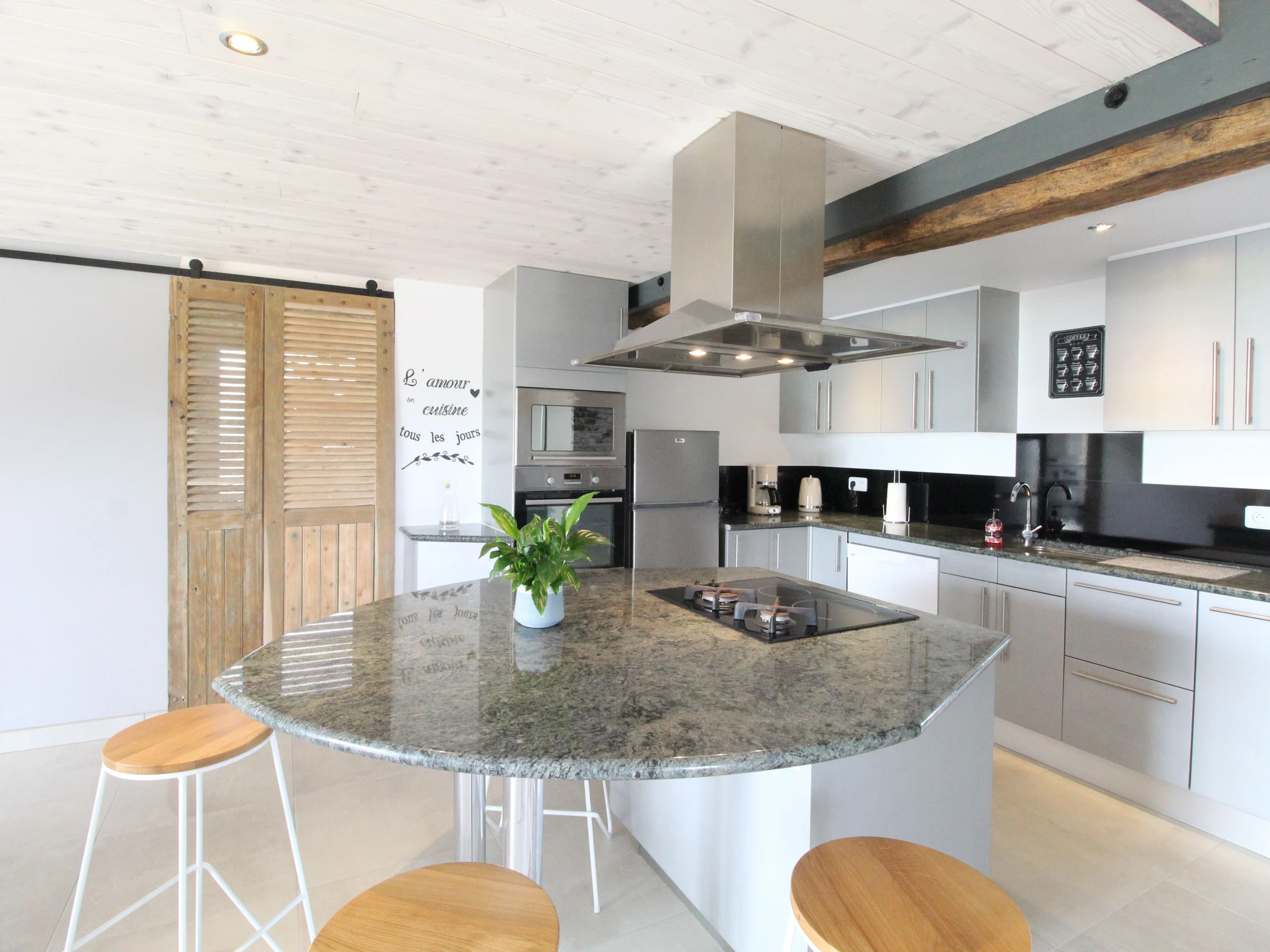 L'hébergement se compose d'une vaste pièce à vivre de plus de 50m², une cuisine intégrée et équipée avec ilot central pour cuisiner en toute convivialité, un salon avec télévision, canapé et fauteuil ainsi qu'un bel espace pour prendre les repas.