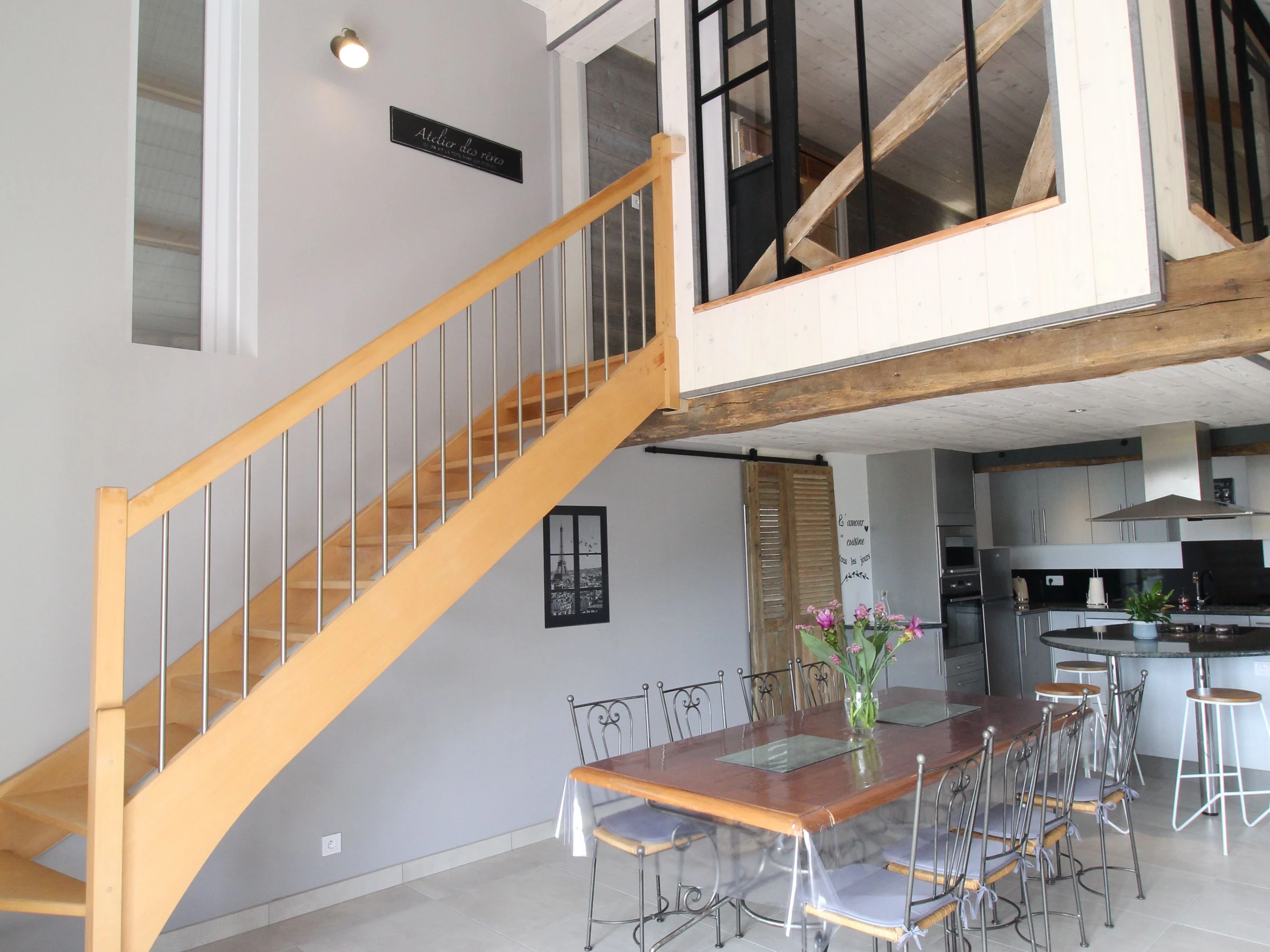 Une mezzanine de 20m² se situe au dessus de la pièce de vie. Un couchage d’appoint est disponible pour 1 à 2 personnes supplémentaires (BZ de 140cm ou lit pliable de 90cm) moyennant un supplément de 20€ par personne et par nuit. Cet espace peut aussi faire office de pièce de jeux ou d'espace de travail.