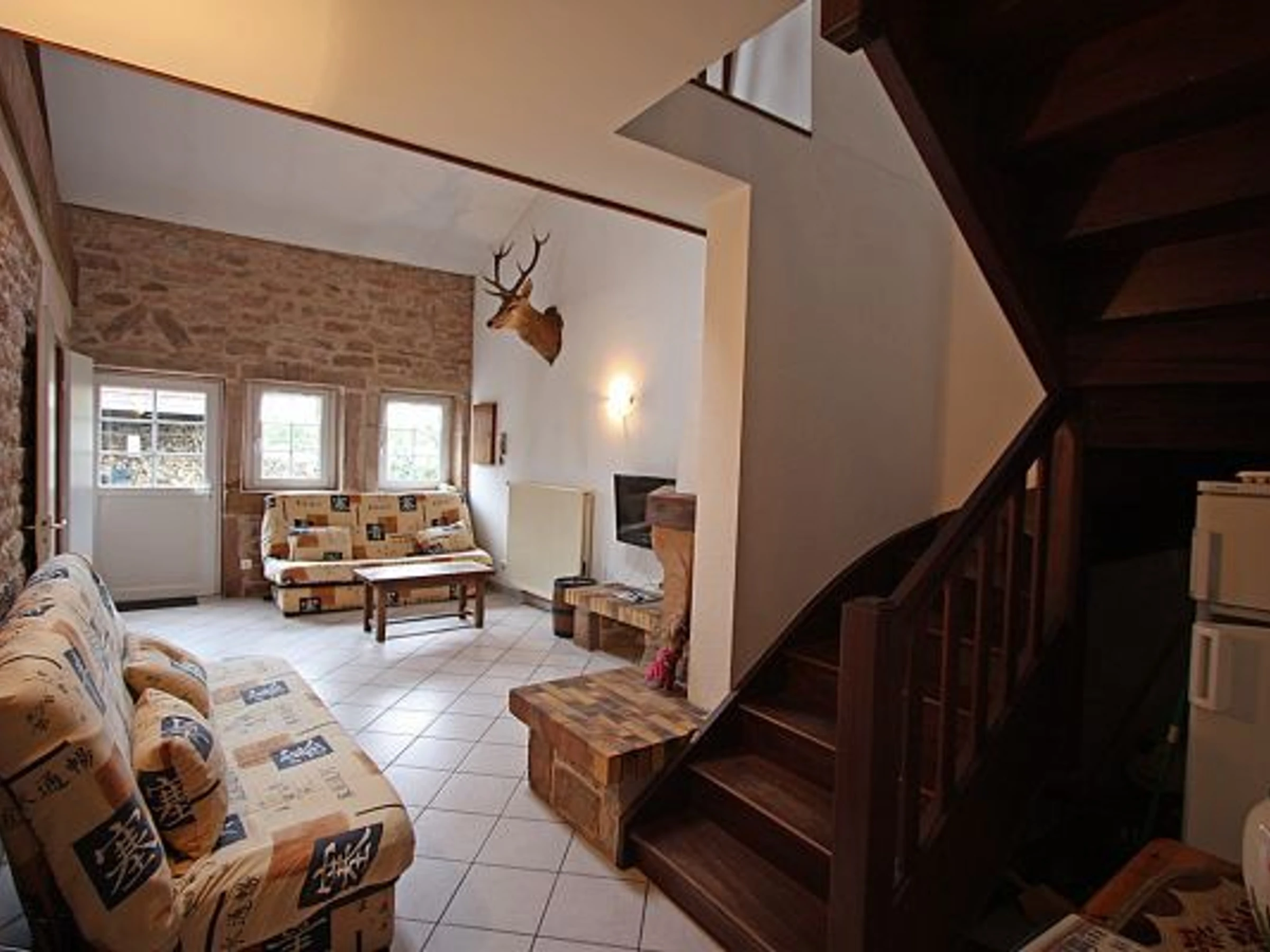 Au centre du village, gîte spacieux et confortable situé entre Épinal, Remiremont, Bruyères et Gérardmer. Boulangerie-pâtisserie, épicerie, tabac-presse, restaurant... sur place. Au pied du massif vosgien, nombreux circuits pédestres et VTT, proche pistes de ski. Gîte mitoyen de 90 m². Rez-de-chaussée et 1er étage : cuisine équipée, séjour, coin détente avec cheminée (canapé clic-clac). 3 chambres (2 lits 2 personnes, 2 lits 1 personne, 2 lits bébé). Sas séparé avec la chambre et la salle d'eau/WC du rez-de-chaussée. Salle de bains, salle d'eau, 2 WC. Chauffage central gaz. Terrasse. Terrain. Charges comprises. Gite communal mitoyen à d'autres appartements. Accessible ave aide - Hauteur lit 40 cm