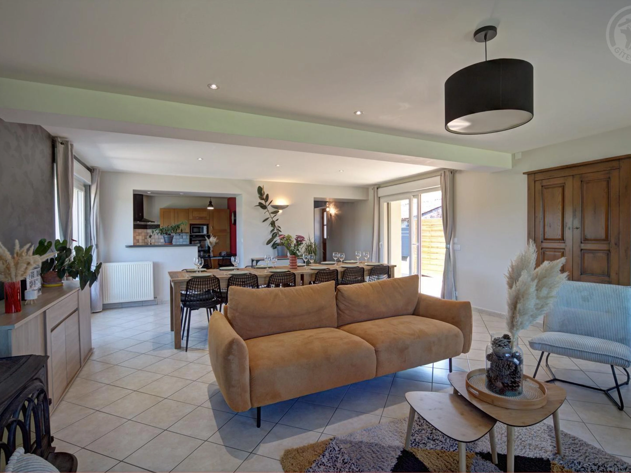 Découvrez ce gîte idéal pour 12 personnes de 170 m², mitoyen à la maison des propriétaire disposant d'une entrée indépendante et d'un jardin privatif sans aucun vis-à-vis. Le Grand Moulin, gîte tout confort sur deux niveaux, propose 4 chambres : une au rez-de-chaussée et trois à l'étage, dont un dortoir parfait pour petits et grands. Deux salles de bain facilitent les séjours en tribu. Au cœur de la maison, les lumineuses pièces à vivre ont été pensées pour se retrouver en toute convivialité : un vaste séjour lumineux, une cuisine ouverte entièrement équipée et un salon accueillant pour partager des repas, des jeux ou simplement des instants précieux. Le tout s'ouvre sur un extérieur paysagé de 600 m² avec jardin, terrasse abritée de 40m² et son spa 5 places, mobilier de plein air et barbecue pour profiter pleinement des beaux jours. Pour un séjour en toute sérénité, les charges sont incluses et les lits faits à votre arrivée. Une location de vacances avec randonnées, vélo et patrimoine à Chevrières dans la Loire ! La région regorge d'activités pour se ressourcer : partez explorer les sentiers des Monts du Lyonnais à pied ou à vélo, traversez des paysages vallonnés et respirez le grand air. Les amoureux d'histoire découvriront des bourgs pittoresques, de petites chapelles, et des musées révélant l'âme du territoire. Installé dans une ancienne ferme rénovée, entourée de verdure, le gîte vous offre un cadre de vie authentique : ici, on se réveille au chant des oiseaux, on partage un café sous la terrasse couverte pendant que les enfants jouent dans le grand jardin clos. Entre nature et culture, l'Auvergne-Rhône-Alpes vous promet une escapade inoubliable.