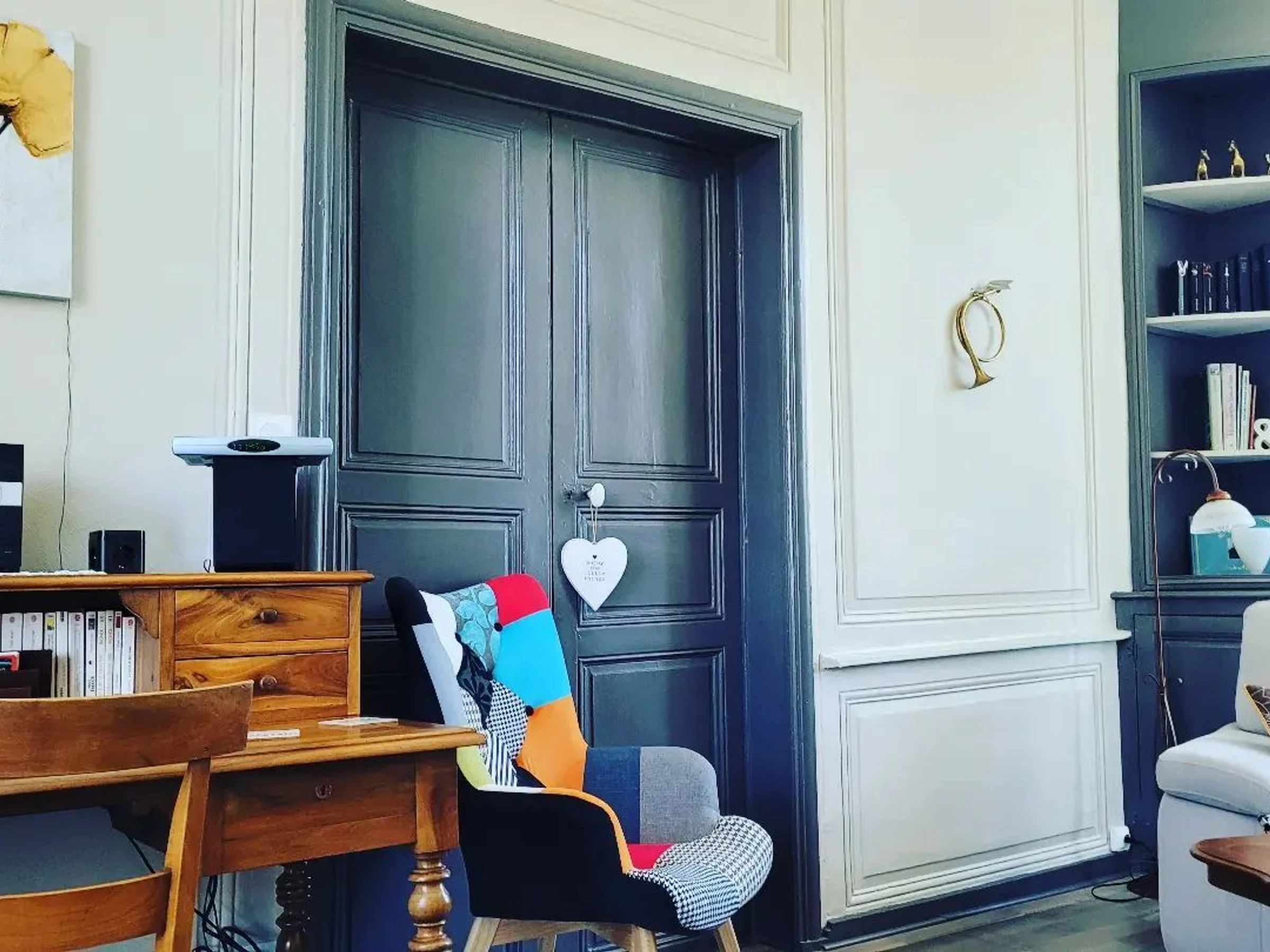 Pour le Télétravail, à votre disposition: un grand secrétaire avec fauteuil et lampe dans un grand salon isolé à l'étage avec lumière extérieure traversante donnant sur 2 balcons, une box free, un câble RJ44 et une couverture mobile 4G (tous opérateurs).