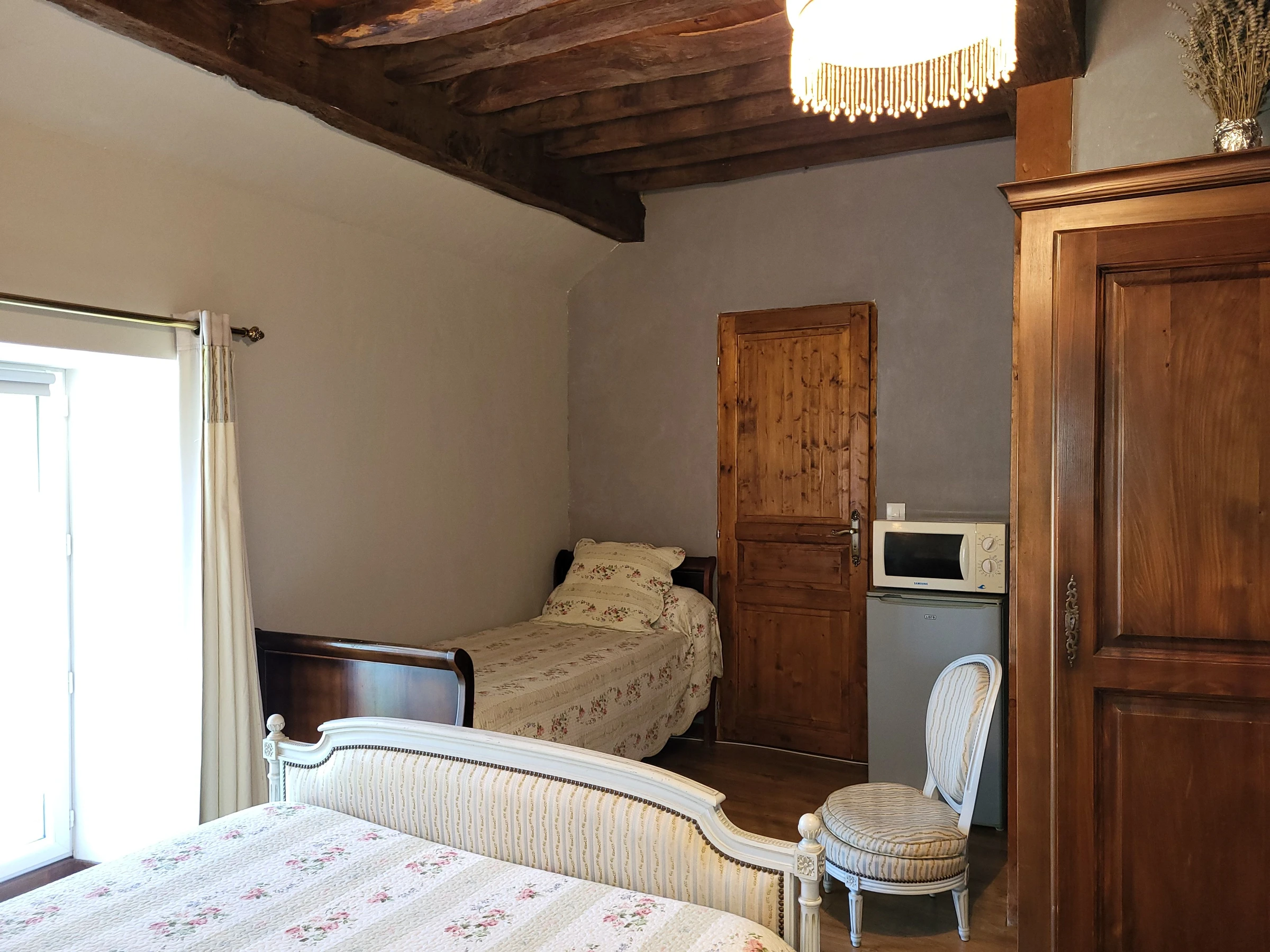 Au rez-de-chaussée, dans l’ancienne cuisine de la maison se trouve la cheminée comtoise en pierre de la région, datée. Là aussi nous y avons aménagé la première chambre d’hôtes en 2002. Nos chambres sont classées 3 épis par Gîtes de France.