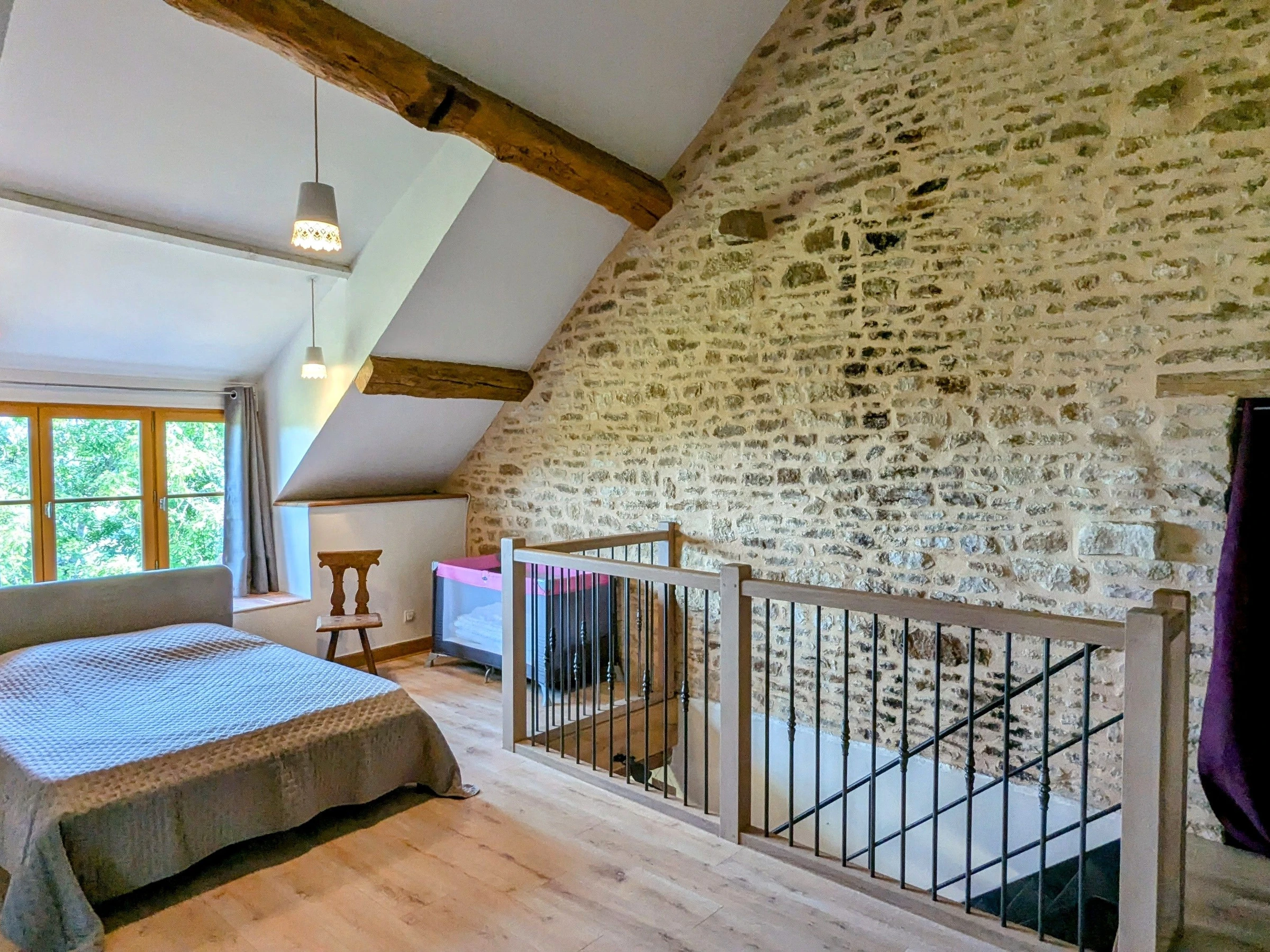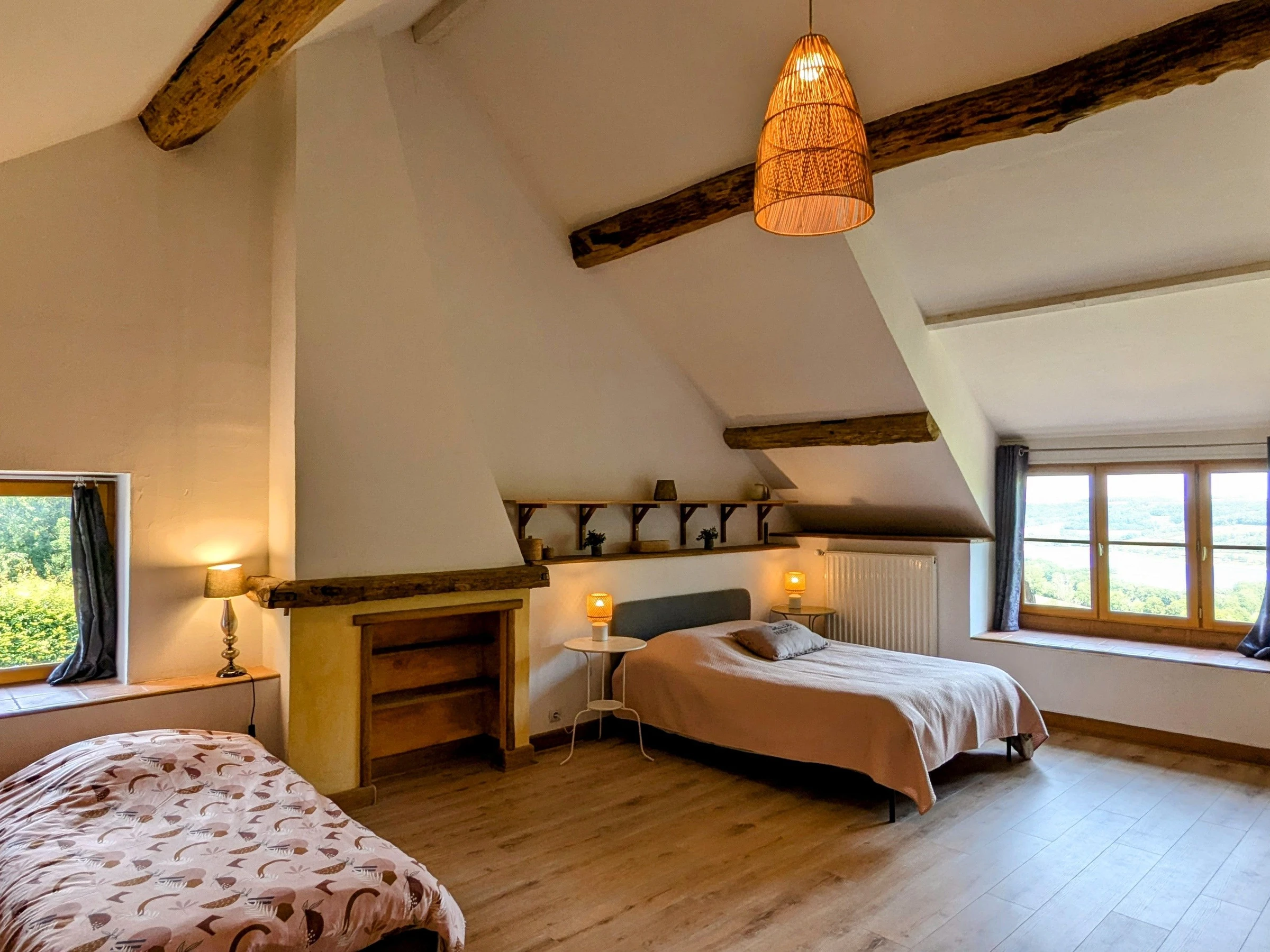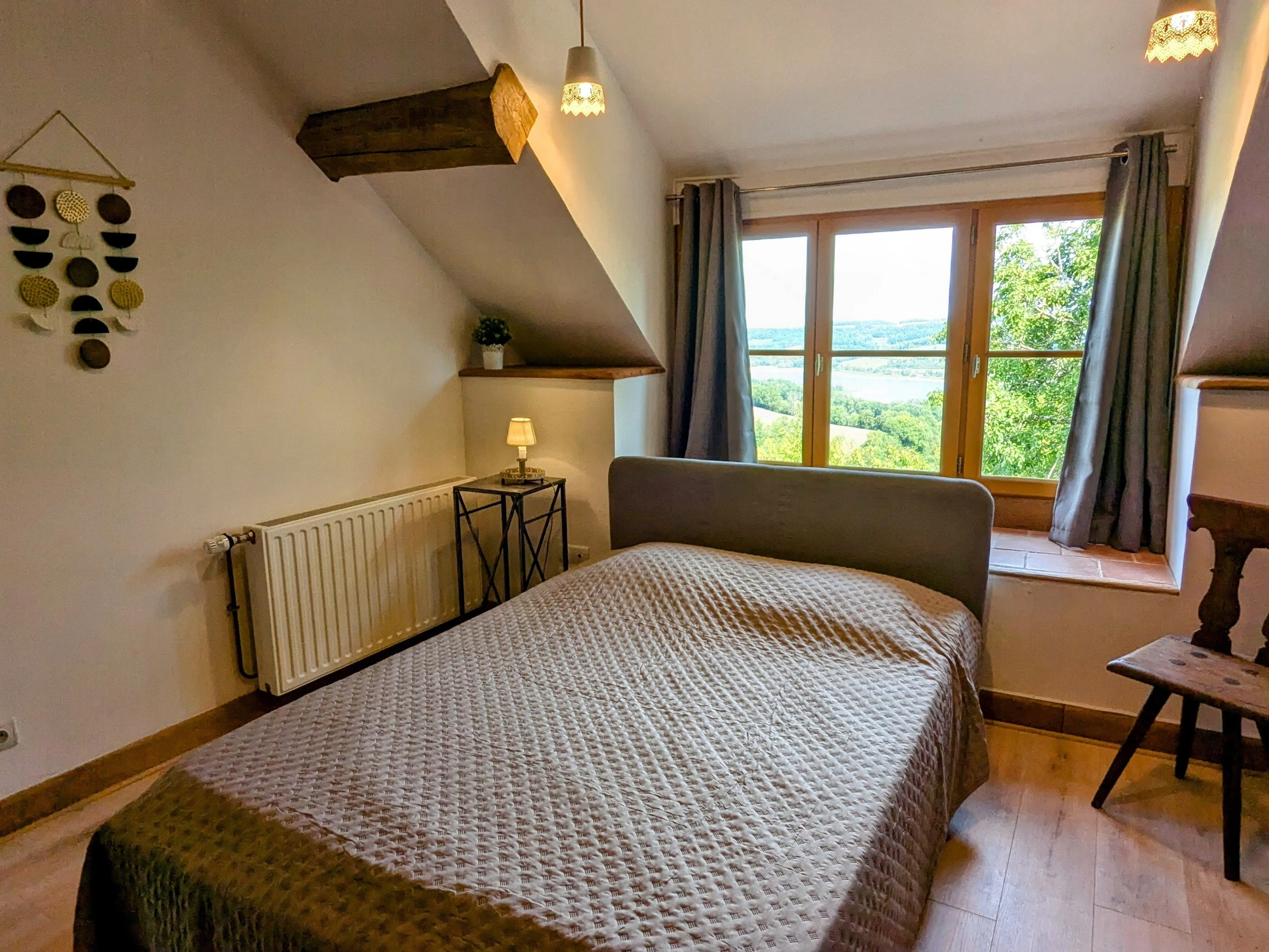 Grande terrasse avec vue exceptionnelle sur le lac Dans un petit village calme, à moins de 30 minutes de Dijon et de Beaune, le gîte "Le Belvédère du Lac", belle maison avec le charme de l'ancien (poutres, pierres, peintures murales, tommettes) vous offre : au rez-de-chaussée : grand salon chaleureux, avec poêle à bois (bois fourni), TV, wifi fibre, bureau, et accès direct à la terrasse, cuisine entièrement équipée ouverte sur salle à manger, avec un second accès à la terrasse. A l'étage : 1 chambre traversante en mezzanine, avec 1 lit de 140 cm, 1 grande chambre avec 2 lits de 90 cm + 1 lit de 140 cm , 1 salle d'eau avec grande douche et WC et fenêtre. Vue magnifique sur le lac de Grosbois depuis les chambres. lit parapluie et chaise haute à disposition sur demande. A l'extérieur : parking privé 2 places dans la cour sur le côté du gîte. A l'arrière, jardin entièrement clos donnant sur la grande terrasse, offrant une vue exceptionnelle sur le lac. Salon de jardin. Pas de barbecue pour des raisons sécurité (beaucoup d'arbres autour).