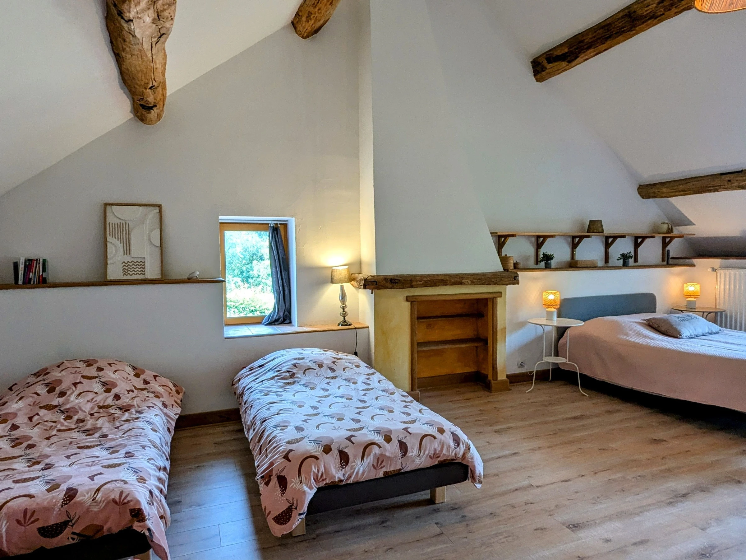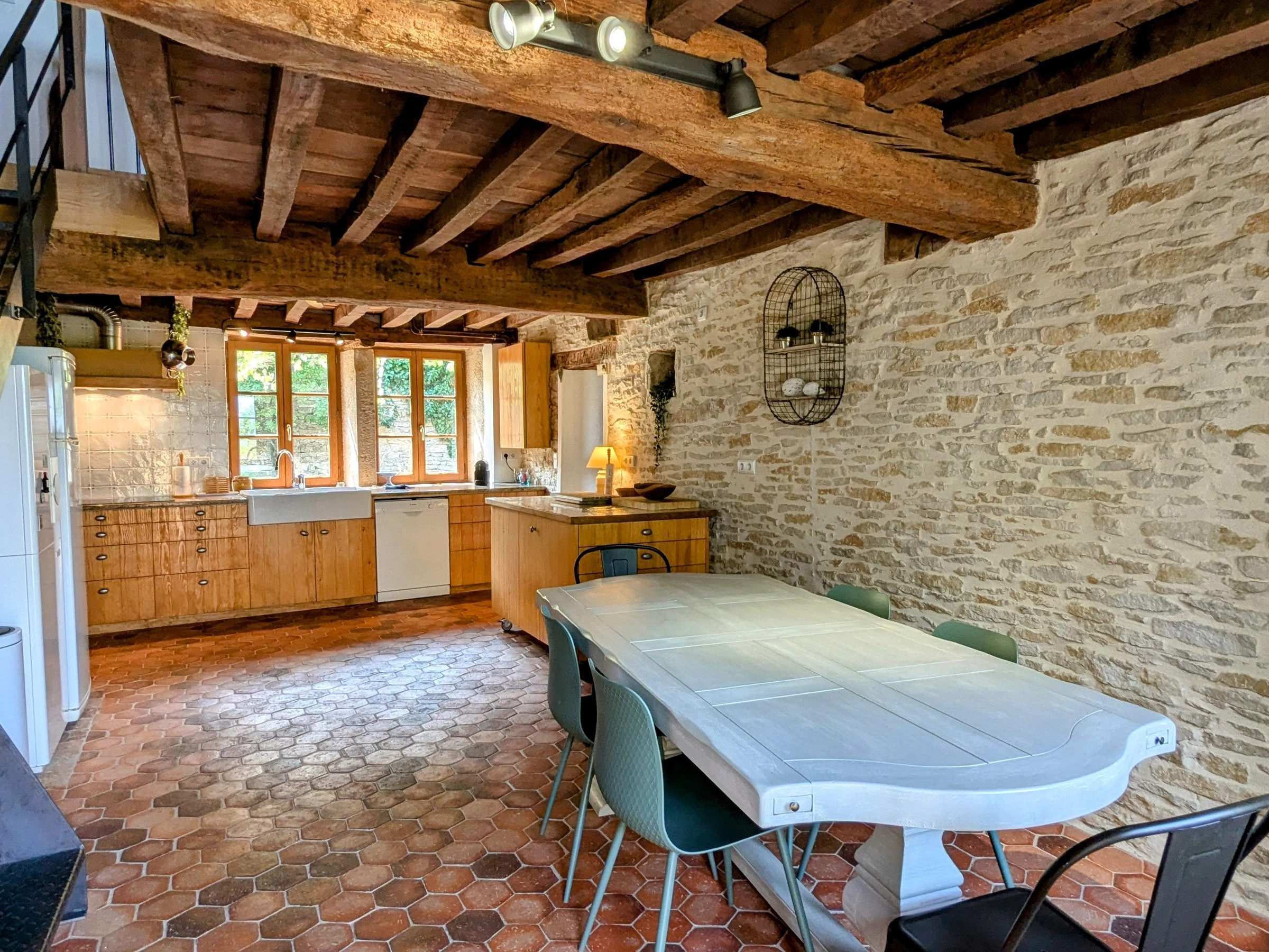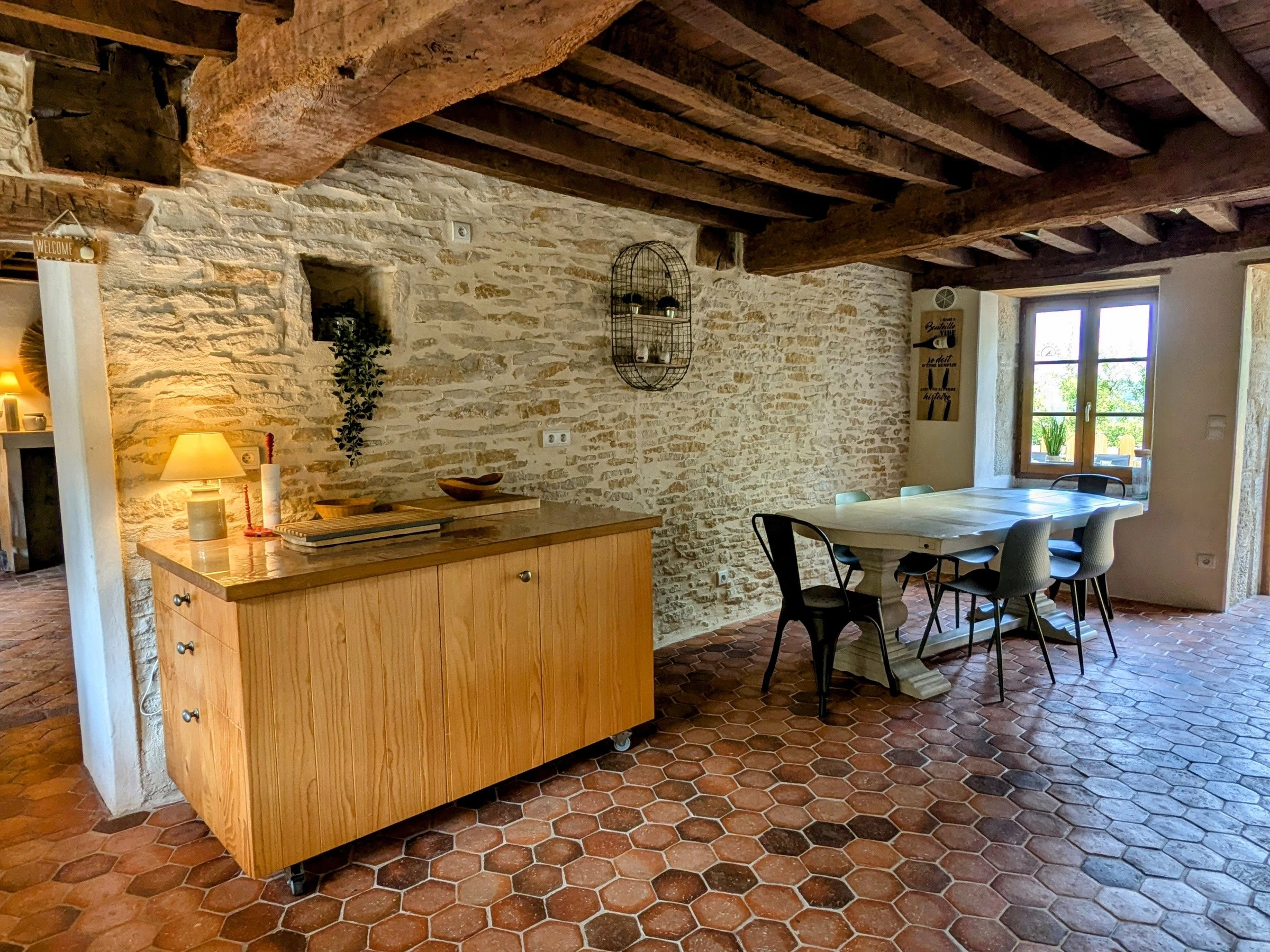 Grande terrasse avec vue exceptionnelle sur le lac Dans un petit village calme, à moins de 30 minutes de Dijon et de Beaune, le gîte "Le Belvédère du Lac", belle maison avec le charme de l'ancien (poutres, pierres, peintures murales, tommettes) vous offre : au rez-de-chaussée : grand salon chaleureux, avec poêle à bois (bois fourni), TV, wifi fibre, bureau, et accès direct à la terrasse, cuisine entièrement équipée ouverte sur salle à manger, avec un second accès à la terrasse. A l'étage : 1 chambre traversante en mezzanine, avec 1 lit de 140 cm, 1 grande chambre avec 2 lits de 90 cm + 1 lit de 140 cm , 1 salle d'eau avec grande douche et WC et fenêtre. Vue magnifique sur le lac de Grosbois depuis les chambres. lit parapluie et chaise haute à disposition sur demande. A l'extérieur : parking privé 2 places dans la cour sur le côté du gîte. A l'arrière, jardin entièrement clos donnant sur la grande terrasse, offrant une vue exceptionnelle sur le lac. Salon de jardin. Pas de barbecue pour des raisons sécurité (beaucoup d'arbres autour).