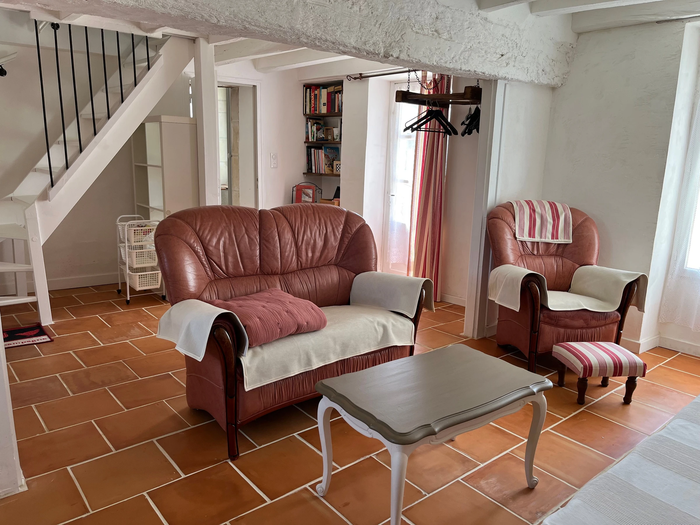 Des marches sont présentes entre la salle à manger et le salon, entre le salon et la chambre 1 et entre la cuisine et le salon de détente.