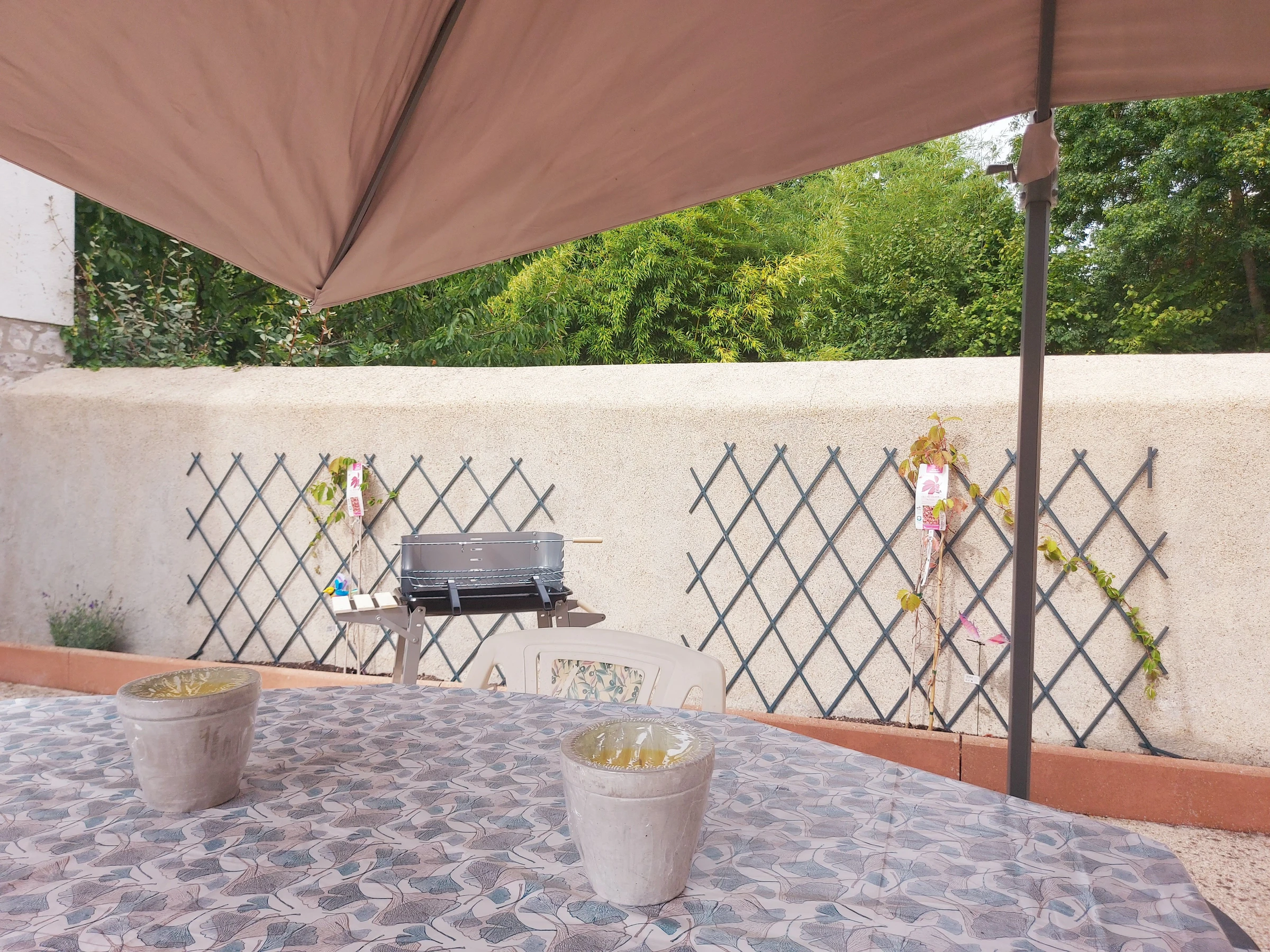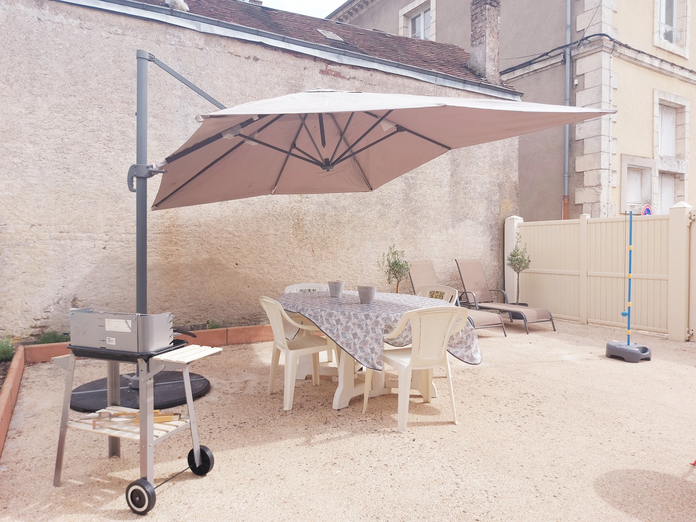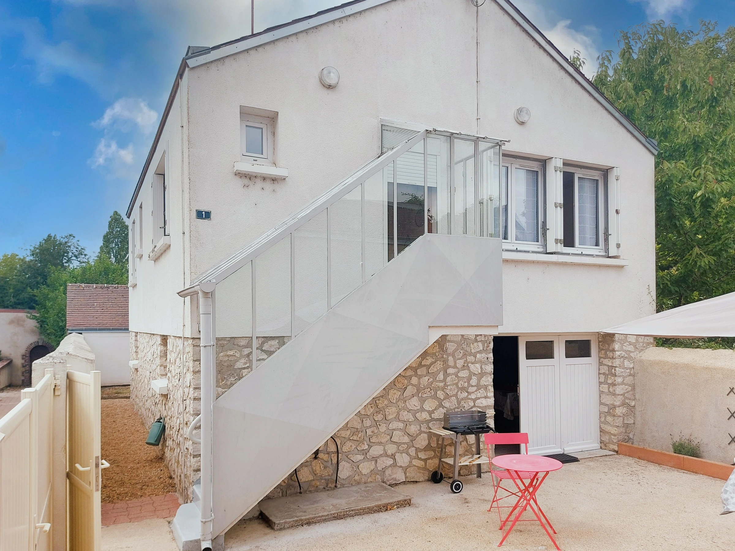 À l’extérieur : profitez d’une cour fermée aménagée avec salon de jardin, barbecue, table, chaises et bains de soleil, idéale pour vos moments de détente et vos repas en plein air. Un garage privé est à votre disposition, équipé d’une table de ping-pong et d’un lave-linge.