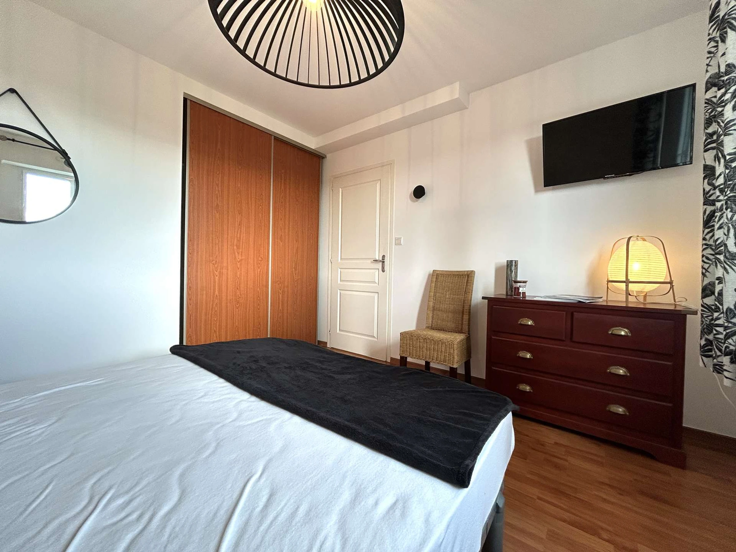 À 12 km de Saint-Gilles-Croix-de-Vie et des plages, bel appartement de vacances confortable, situé au 2ème étage avec ascenseur, au sein d’un domaine au cœur d’un golf. Il se compose d’une entrée, d’une cuisine aménagée et équipée (lave-vaisselle, micro-ondes), d’un séjour avec télévision, de deux chambres comprenant chacune un lit double en 160 cm, d’une salle de bains et de WC séparés.