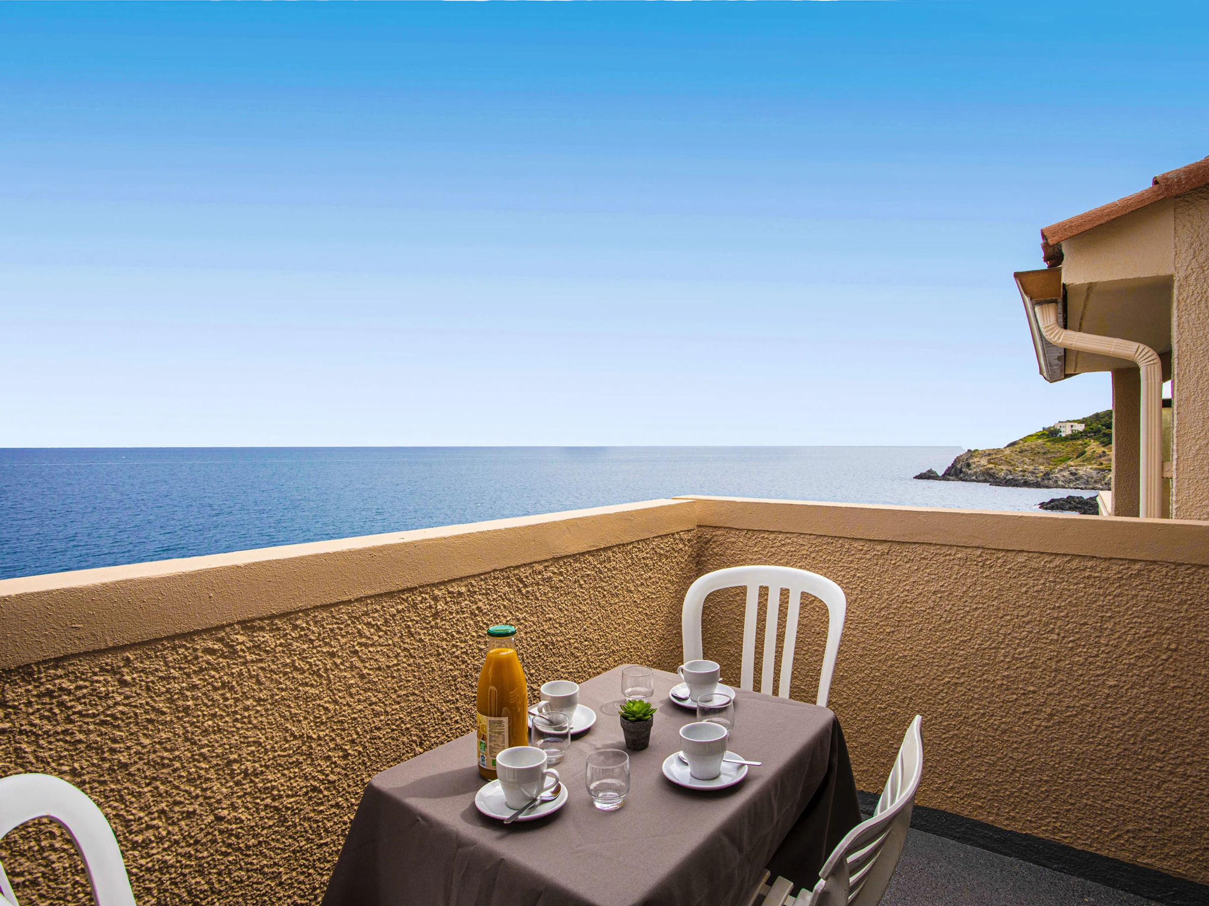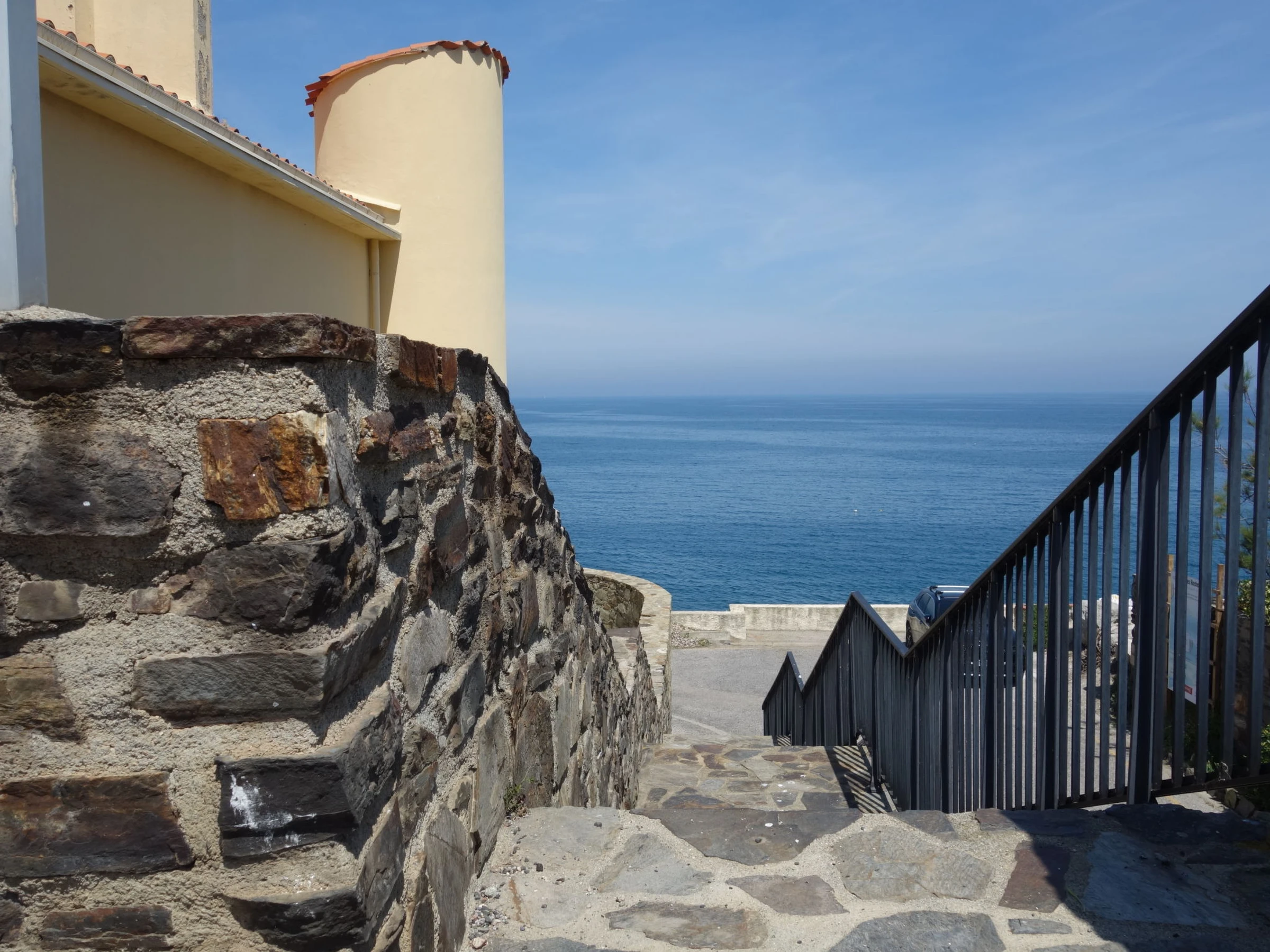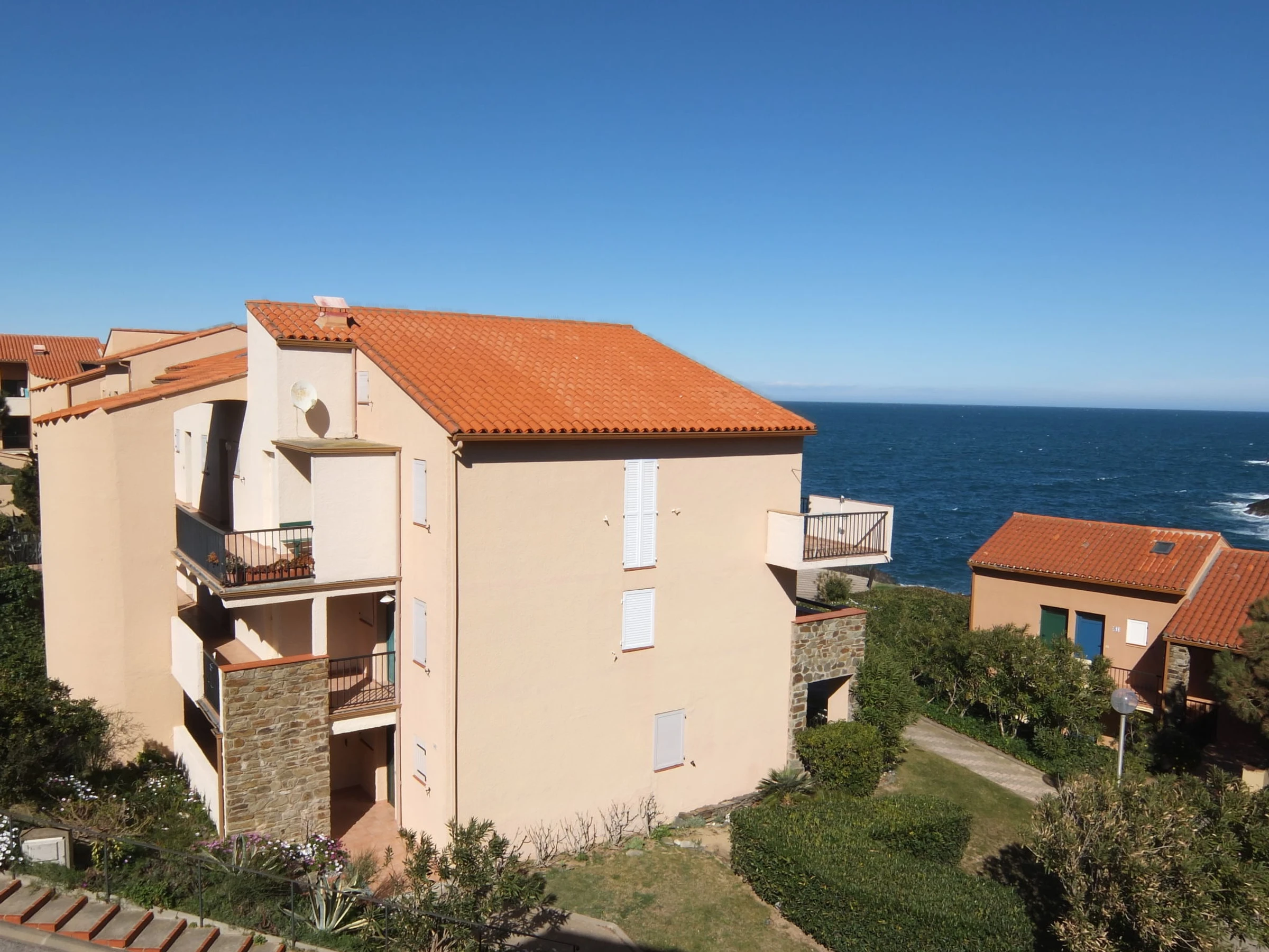 A flanc de falaise et dominant la baie avec accès direct à une crique (petite plage de sable et graviers) résidence "Les Roches Bleues". En bordure de la localité, à 1.5 km du centre de Collioure, à 200 m de la mer, à 200 m de la plage. Magasins 1 km, supermarché 400 m, restaurant 500 m, gare ferroviaire "Collioure" 2.5 km, plage de graviers "Plage de l'Oli" 200 m, centre de plongée 3 km. Port plaisance 1 km, terrain de golf (27 trous) 25 km, ecole de voile 2.2 km. Attractions à proximité: Château Royal de Collioure 2 km, Port Vendres 1 km, Banyuls sur Mer 8 km. Veuillez noter: sans ascenseur.