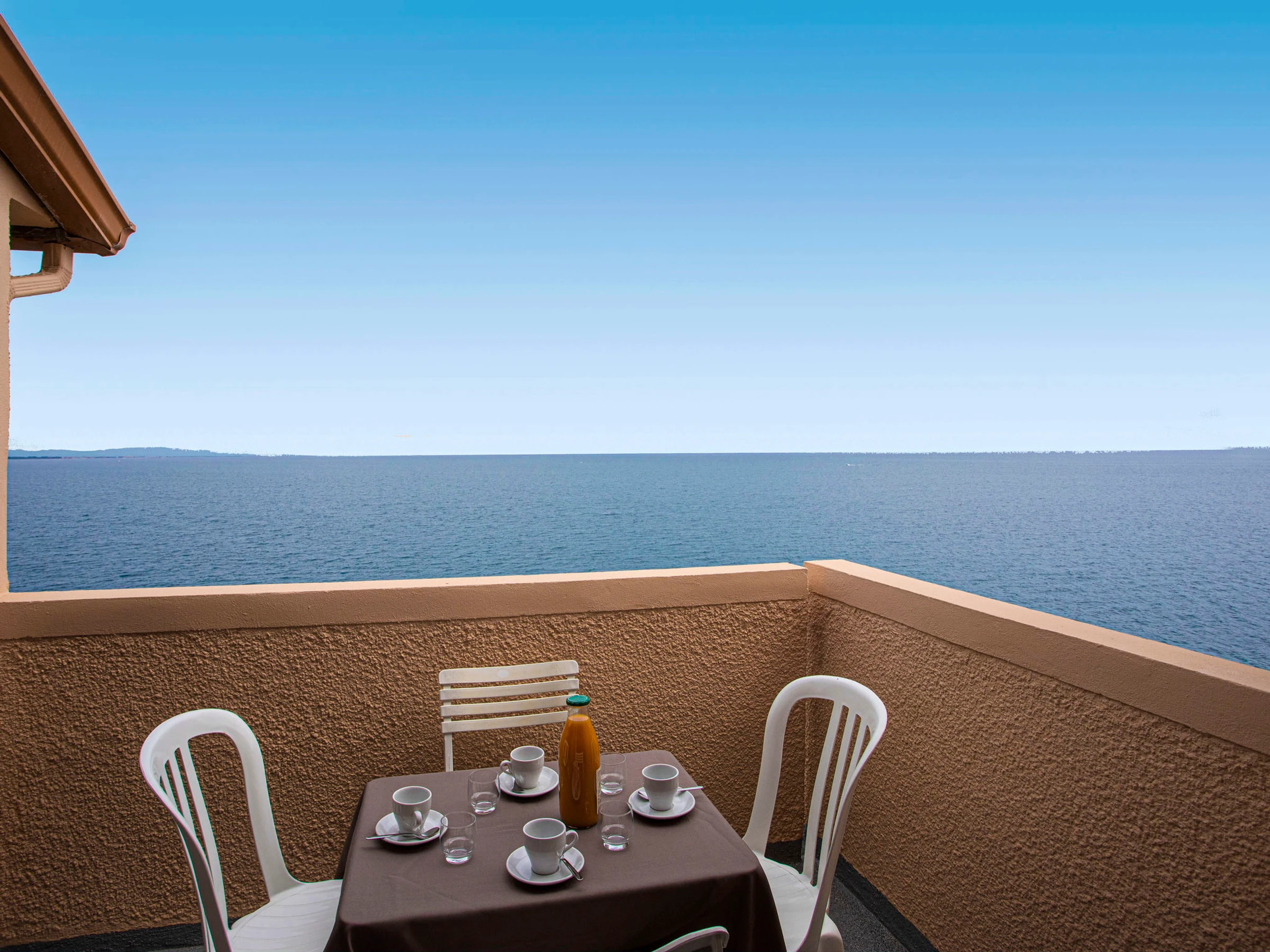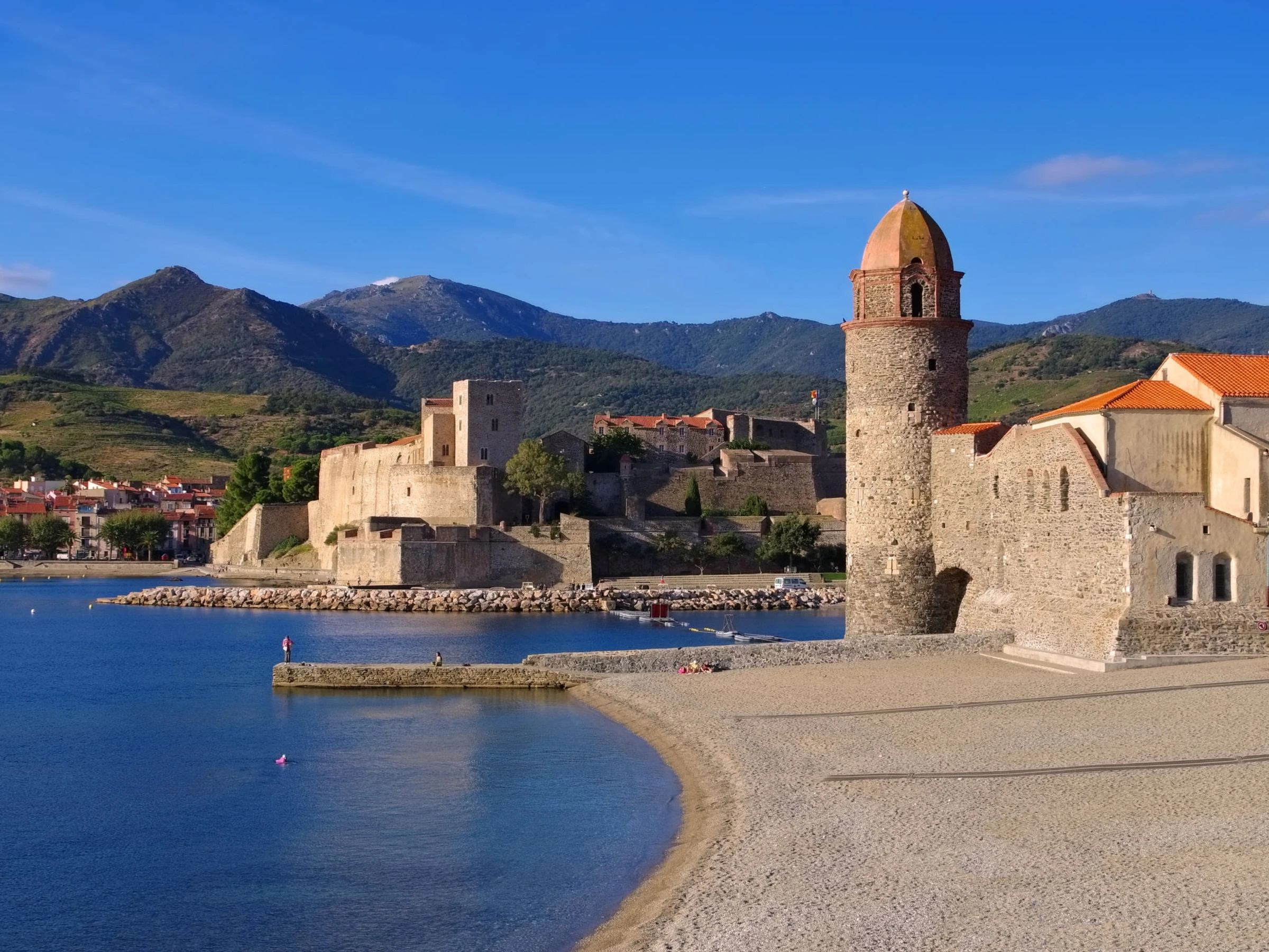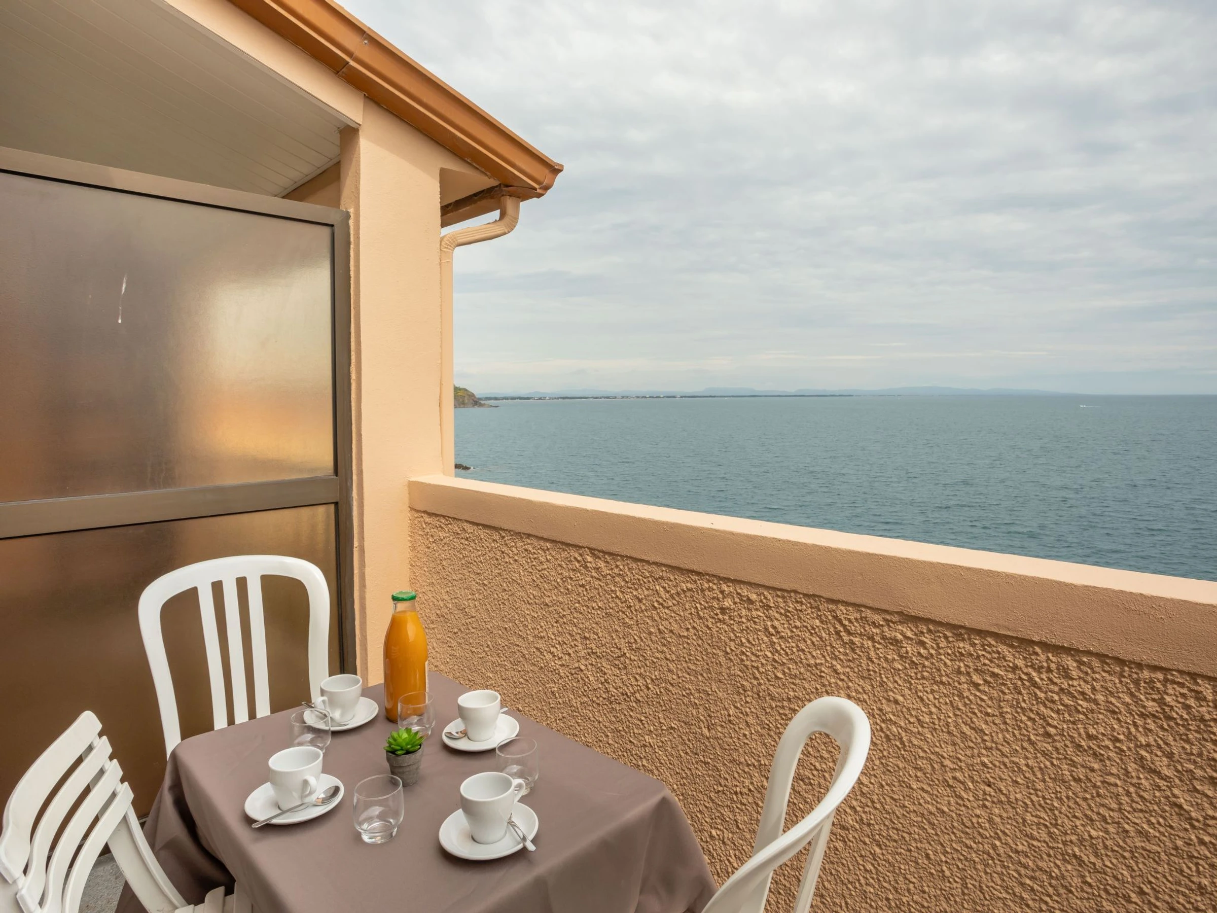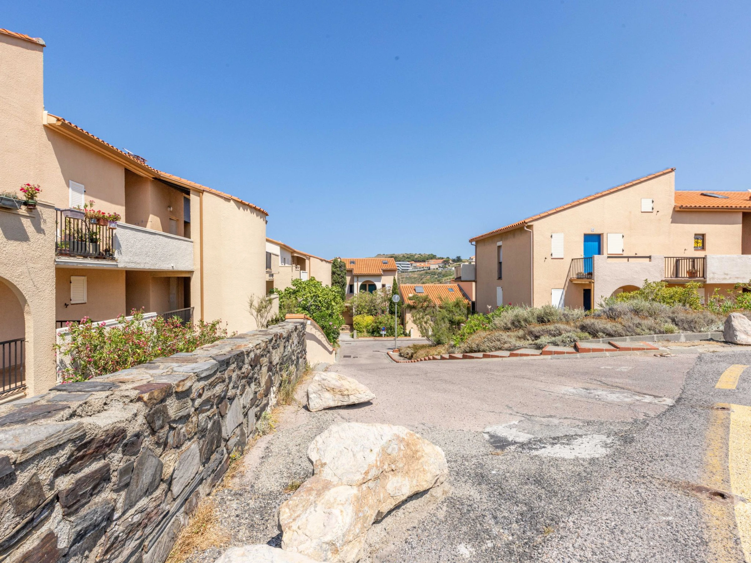 A flanc de falaise et dominant la baie avec accès direct à une crique (petite plage de sable et graviers) résidence "Les Roches Bleues". En bordure de la localité, à 1.5 km du centre de Collioure, à 200 m de la mer, à 200 m de la plage. Magasins 1 km, supermarché 400 m, restaurant 500 m, gare ferroviaire "Collioure" 2.5 km, plage de graviers "Plage de l'Oli" 200 m, centre de plongée 3 km. Port plaisance 1 km, terrain de golf (27 trous) 25 km, ecole de voile 2.2 km. Attractions à proximité: Château Royal de Collioure 2 km, Port Vendres 1 km, Banyuls sur Mer 8 km. Veuillez noter: sans ascenseur.