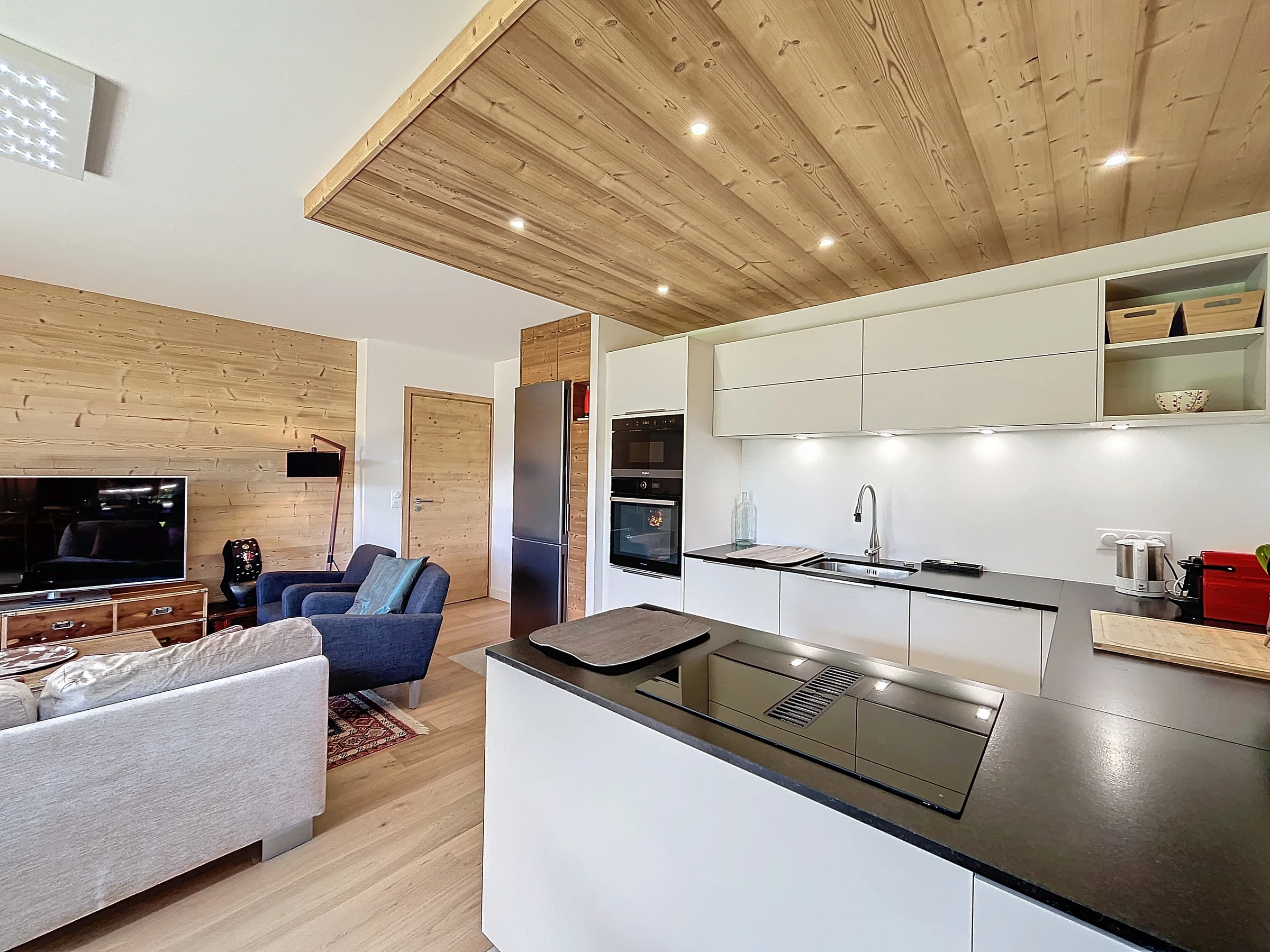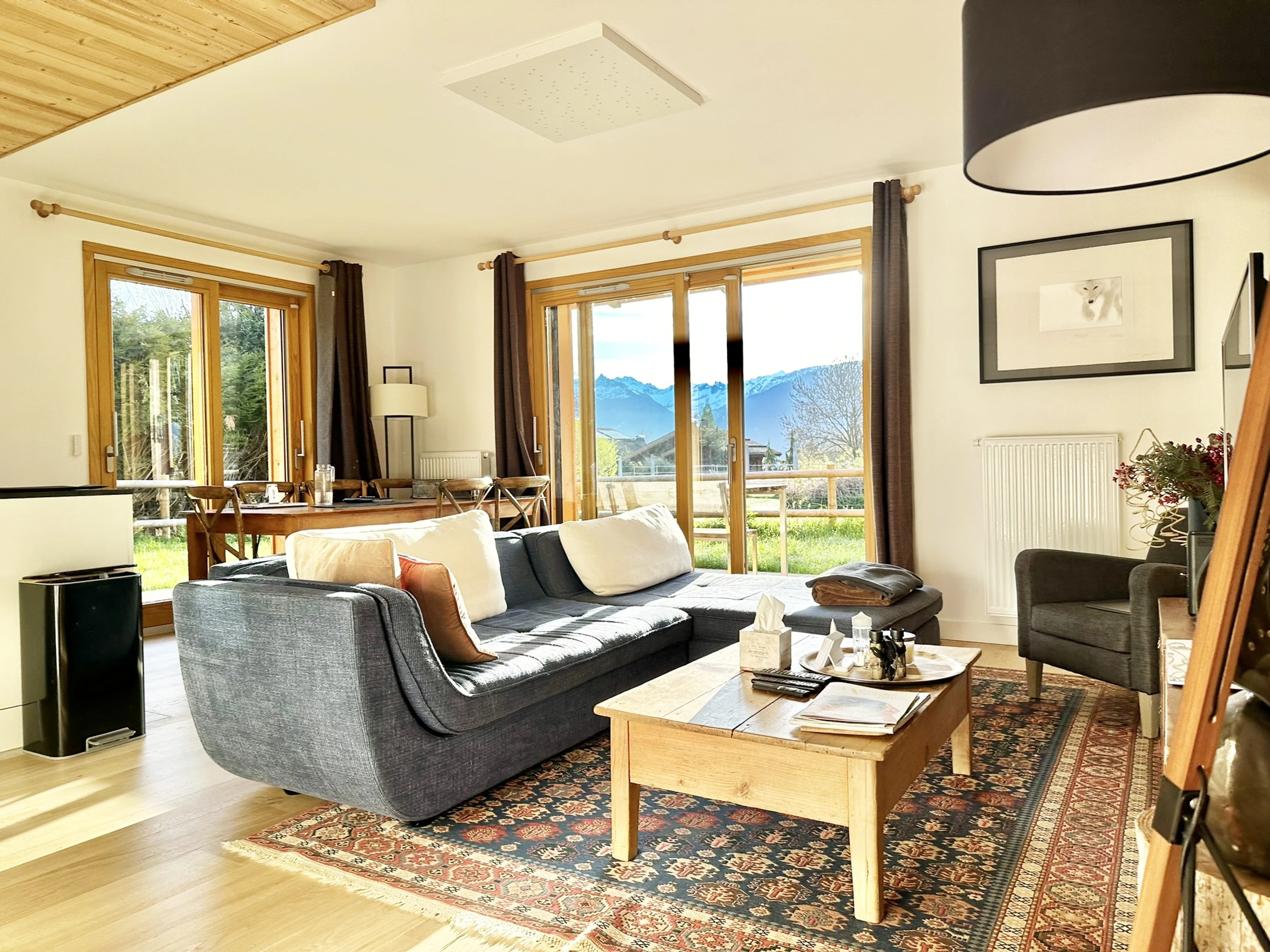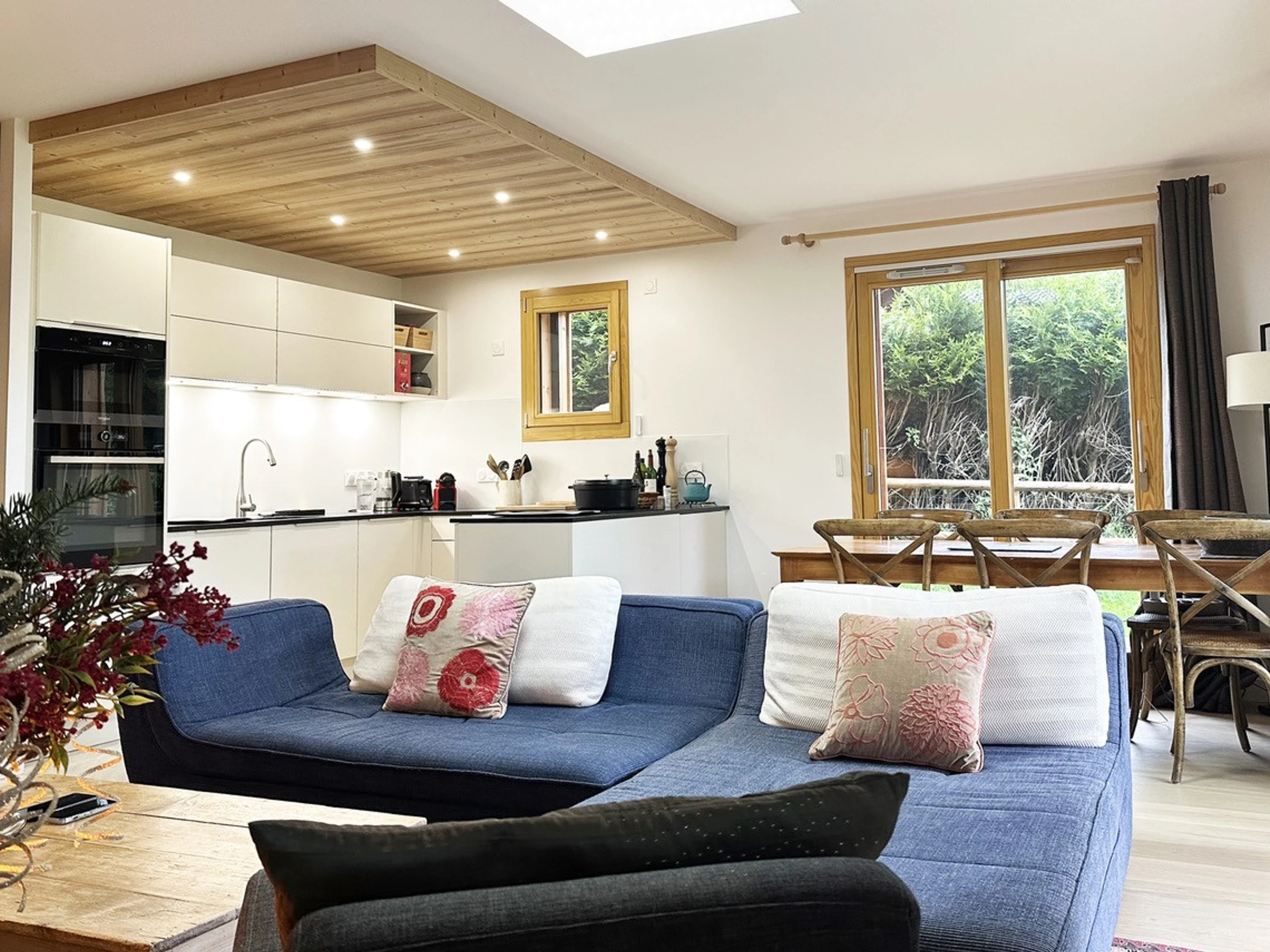 Idéalement situé : à quelques pas du lac Bio top et du centre du village qui propose tous les commerces nécessaires, de charmantes boutiques et de nombreux restaurants pour passer un séjour détente sans utiliser sa voiture. Vue panoramique sur la chaine du Mont Blanc, les aiguilles de Chamonix et des Fiz. Très bel appartement neuf situé au Rez de jardin, situé dans un chalet de 5 logements avec vue sur le Mont Blanc, dans une résidence neuve de standing, d’une superficie de 85 m², il se compose d'un hall d'entrée, placard, un wc indépendant, une chambre double en suite avec un lit en 160x200 et sa salle de bain/wc, une chambre avec deux lits superposés ( 1 lit de 120x190 et un lit de 90x190), une salle de douche, une chambre avec un convertible en 140x190, une buanderie avec Lave linge & Sèche linge, une belle pièce de vie avec cuisine ouverte tout équipée, salon, espace repas avec accès sur un beau jardin/terrasse de 100 m² clôturé, exposé Est Sud. Annexes : une place de parking extérieur numéro 11 et un casier à ski avec sèche chaussures. PRESTATIONS CONFORT (prix pour une semaine) : Linge de maison inclus. A régler lors de votre arrivée : Taxe de séjour et caution logement par carte bancaire uniquement. Wifi