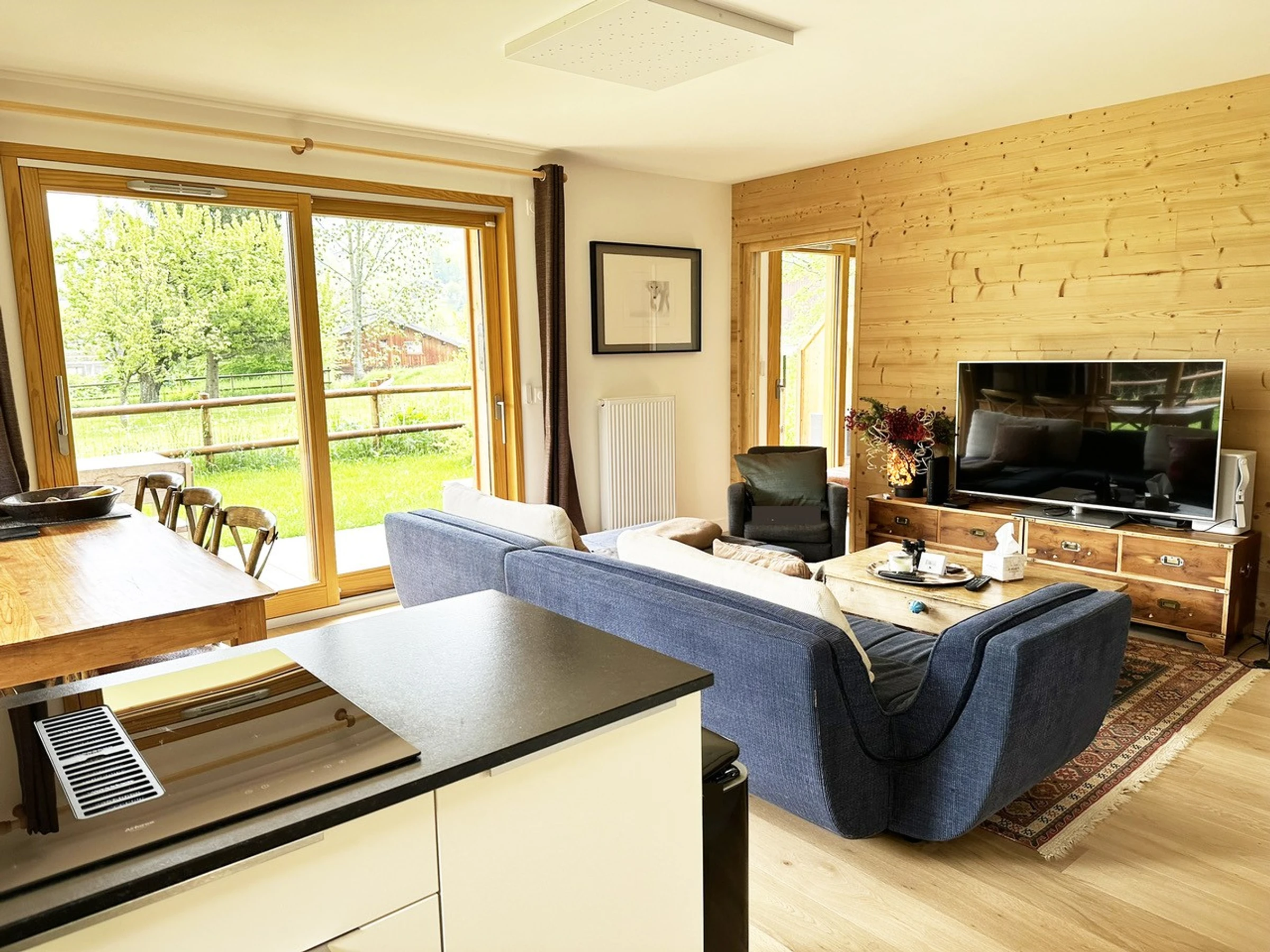 Idéalement situé : à quelques pas du lac Bio top et du centre du village qui propose tous les commerces nécessaires, de charmantes boutiques et de nombreux restaurants pour passer un séjour détente sans utiliser sa voiture. Vue panoramique sur la chaine du Mont Blanc, les aiguilles de Chamonix et des Fiz. Très bel appartement neuf situé au Rez de jardin, situé dans un chalet de 5 logements avec vue sur le Mont Blanc, dans une résidence neuve de standing, d’une superficie de 85 m², il se compose d'un hall d'entrée, placard, un wc indépendant, une chambre double en suite avec un lit en 160x200 et sa salle de bain/wc, une chambre avec deux lits superposés ( 1 lit de 120x190 et un lit de 90x190), une salle de douche, une chambre avec un convertible en 140x190, une buanderie avec Lave linge & Sèche linge, une belle pièce de vie avec cuisine ouverte tout équipée, salon, espace repas avec accès sur un beau jardin/terrasse de 100 m² clôturé, exposé Est Sud. Annexes : une place de parking extérieur numéro 11 et un casier à ski avec sèche chaussures. PRESTATIONS CONFORT (prix pour une semaine, sur devis à partir de la quinzaine) : Linge de maison inclus. A régler lors de votre arrivée : Taxe de séjour et caution logement par carte bancaire uniquement. Wifi