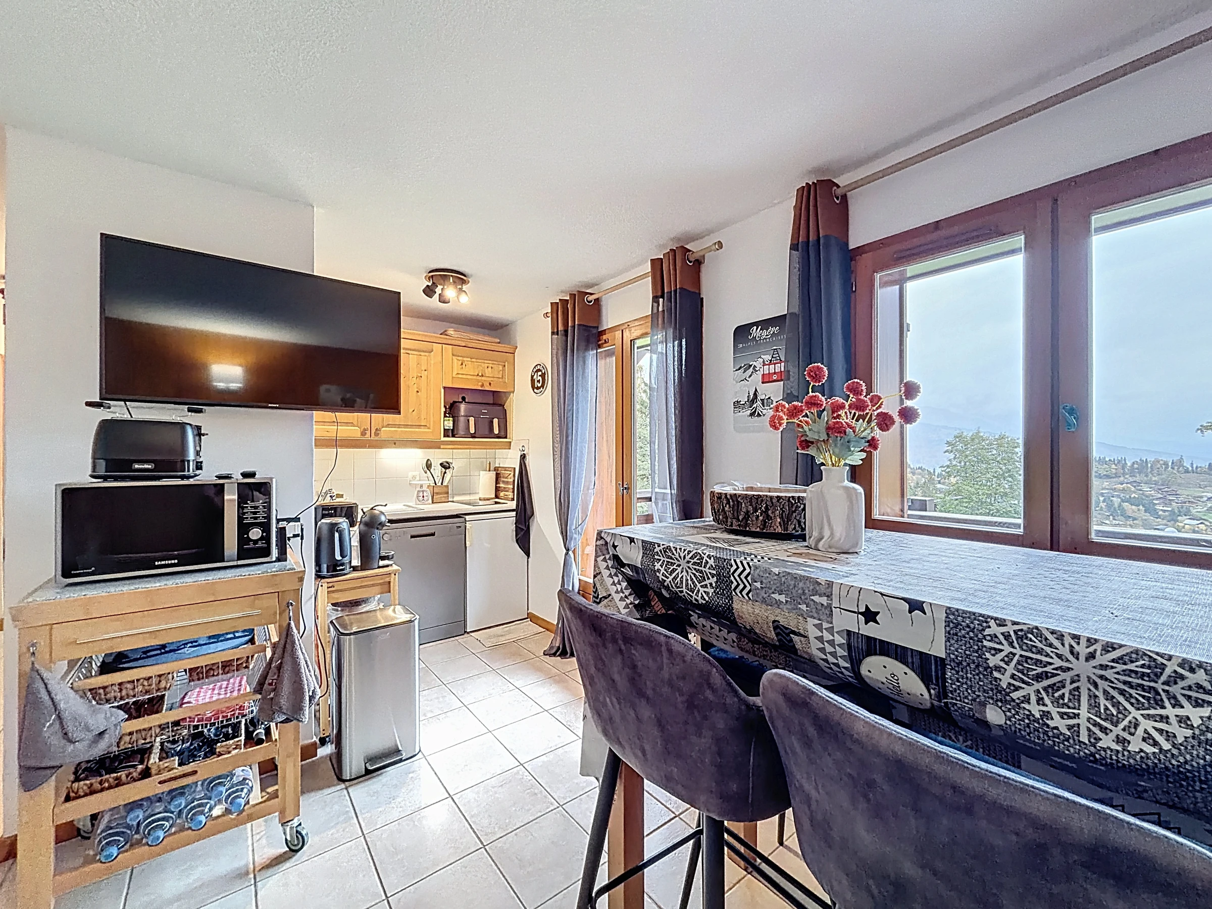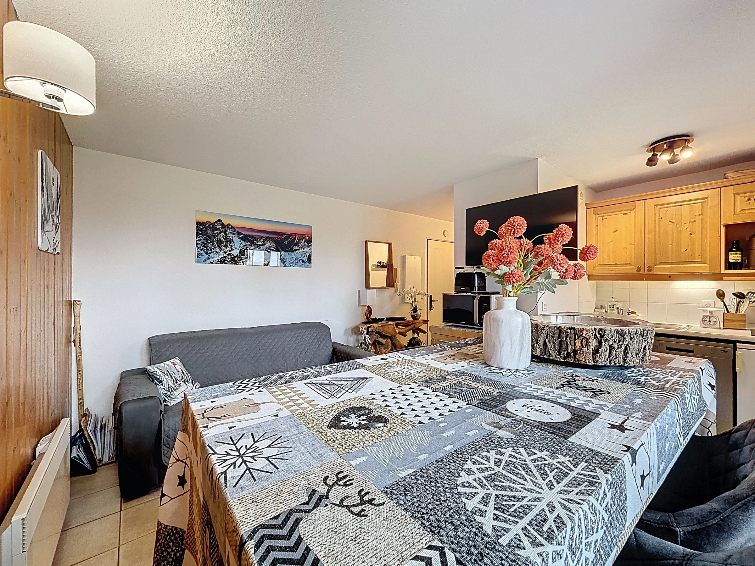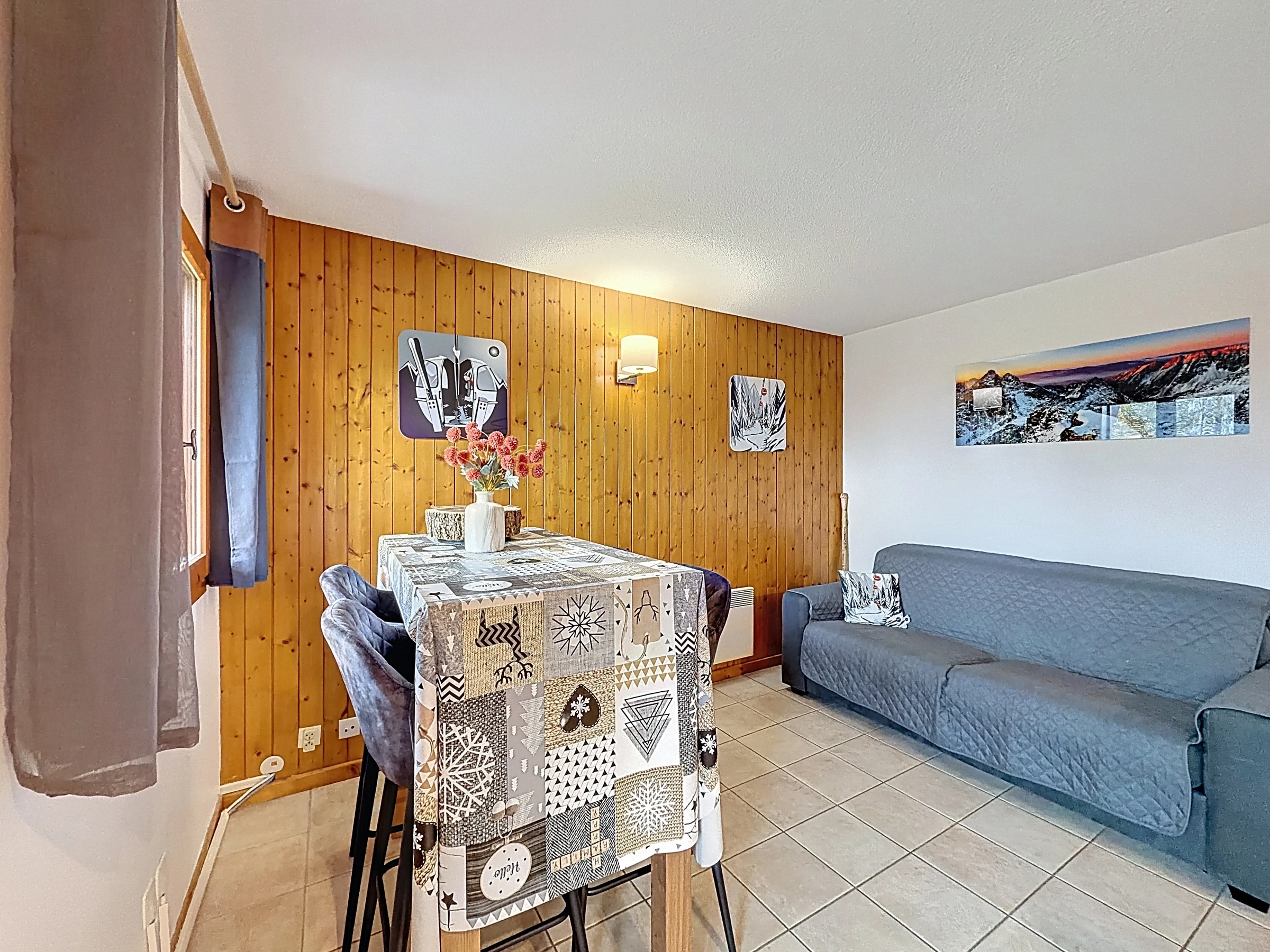 Appartement d’une superficie de 32 m² environ, situé au premier étage de la résidence Le Mowgly. Il se compose d’une entrée, placard, un wc indépendant, une chambre avec un lit double en 140, une salle de bain avec sèche serviette, un séjour avec un canapé lit en 140, une cuisine ouverte équipée (cafetière, nescafé, duo four/micro-ondes, mini four traditionnel, grille-pain, bouilloire, frigo, lave-vaisselle, appareil à raclette, appareil à fondu), un balcon/terrasse exposé Nord-Ouest. Annexes : Un garage avec casier à ski au fond. A régler lors de votre arrivée : Taxe de séjour et caution logement par carte bancaire uniquement.