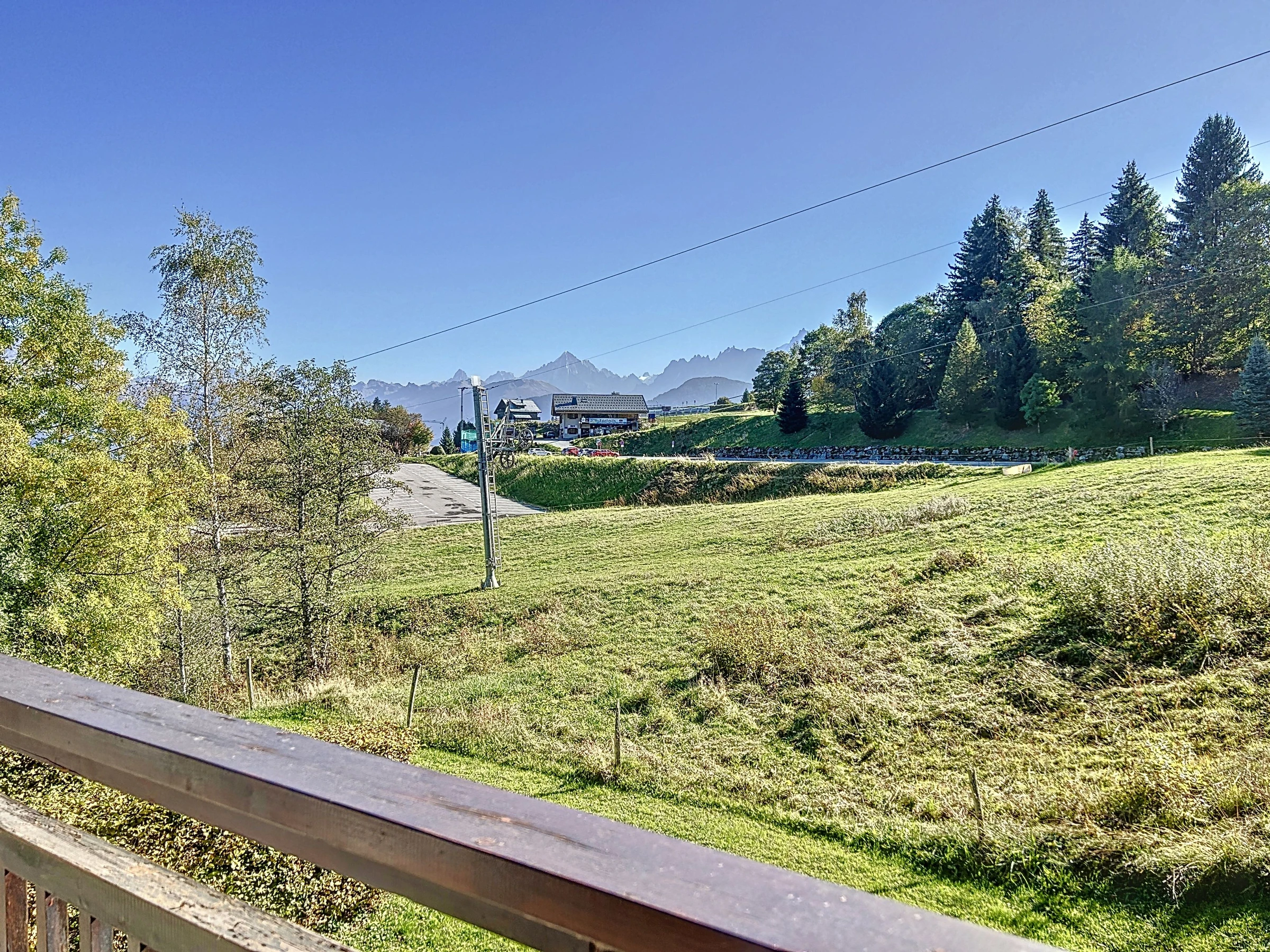 Dans une petite résidence située à 4,5 Km du centre de Combloux, dans un endroit calme et champêtre l'été, au pied des pistes de ski l'hiver, 3 pièces d'environ 52 m2 composé de : Une entrée, séjour avec cheminée, banquette 2 lits 1 personnes (lit tiroir), balcon d'angle exposé Est Sud-ouest, petite cuisine équipée avec four, plaques, frigo et lave vaisselle, wc avec lave mains, salle de bains, une chambre avec 1 lit double, une chambre avec 2 lits superposés + 1 lit tiroir. Casier à skis. Garage. Pas d'animaux.