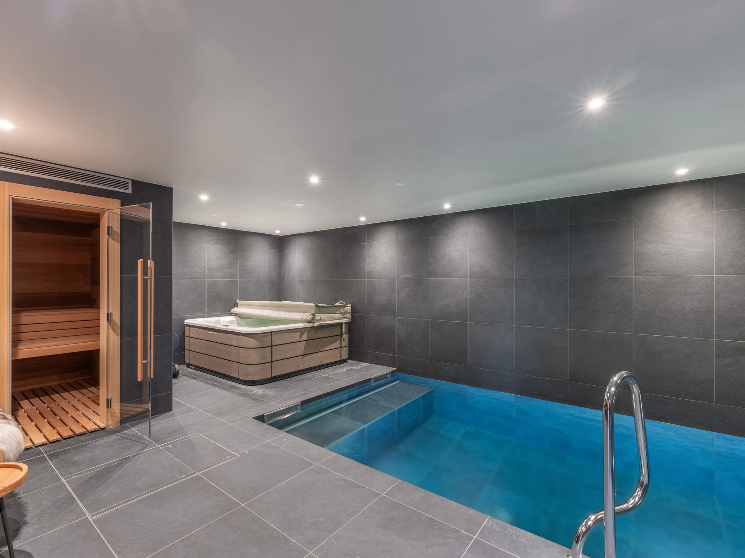- Espace détente : Piscine à nage à contre courant, jacuzzi intérieur, sauna et salle de douche avec toilettes