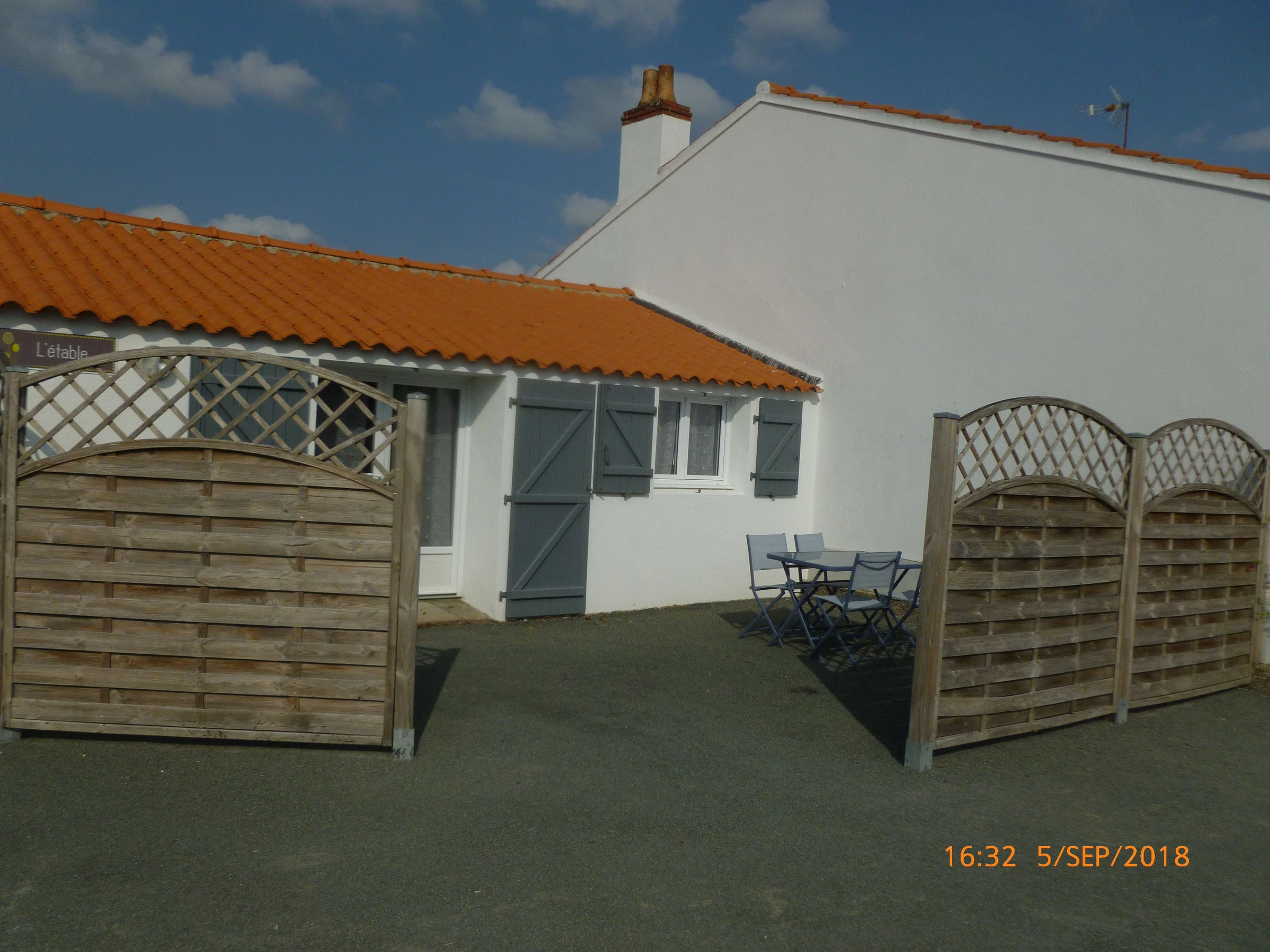 De la place de l'Eglise, tourner à gauche. Tout droit sur environ 1 km (direction Saint Gilles Croix de Vie). Tourner à droite, direction Parking Vélo Rail/Usine Bénéteau. Continuer tout droit. Arrivé sur une patte d'oie, prendre à gauche le sens interdit sauf riverain puis 1ère à gauche, portail blanc, longère aux volets gris.