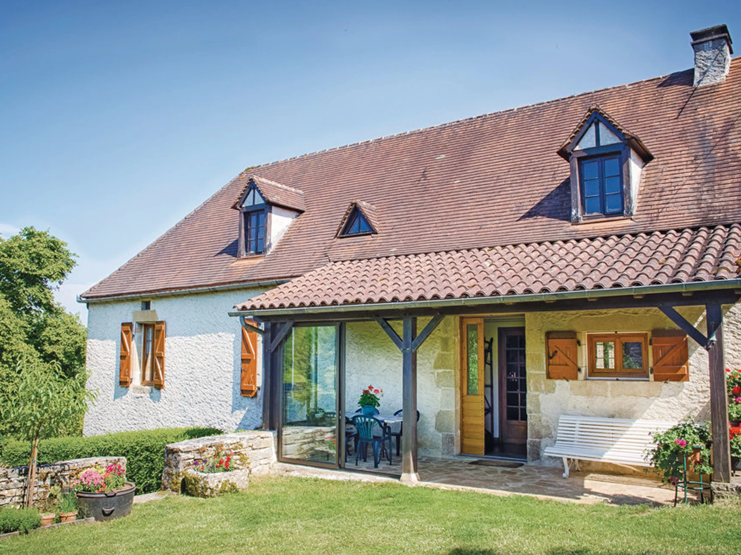 Près du village de Concorès, cette maison de vacances en pierre, bien entretenue et datant de 1900, est meublée dans le style typique de la région. Elle dispose d'un jardin clos arboré et offre une vue magnifique sur la vallée de la rivière Céou. Gourdon (10km) offre toutes les commodités d'une petite ville et a de nombreux cafés et restaurants. Plus au nord, la vallée de la Dordogne avec ses magnifiques villages perchés sur les falaises rocheuses vous attend et vous pourrez faire du canoë / kayak le long de la rivière, pêcher ou vous baigner. Les grottes de Cougnac sont à voir, tout comme Rocamadour et La Forêt de Singes. Services supplémentaires obligatoires sur le site: Taxe de séjour - 0.55 EUR par jour et par personne; Disponible sur le site avec supplément: Draps de lit - 10.0 EUR par personne; Nettoyage(sur place) - 60.0 EUR par séjour;