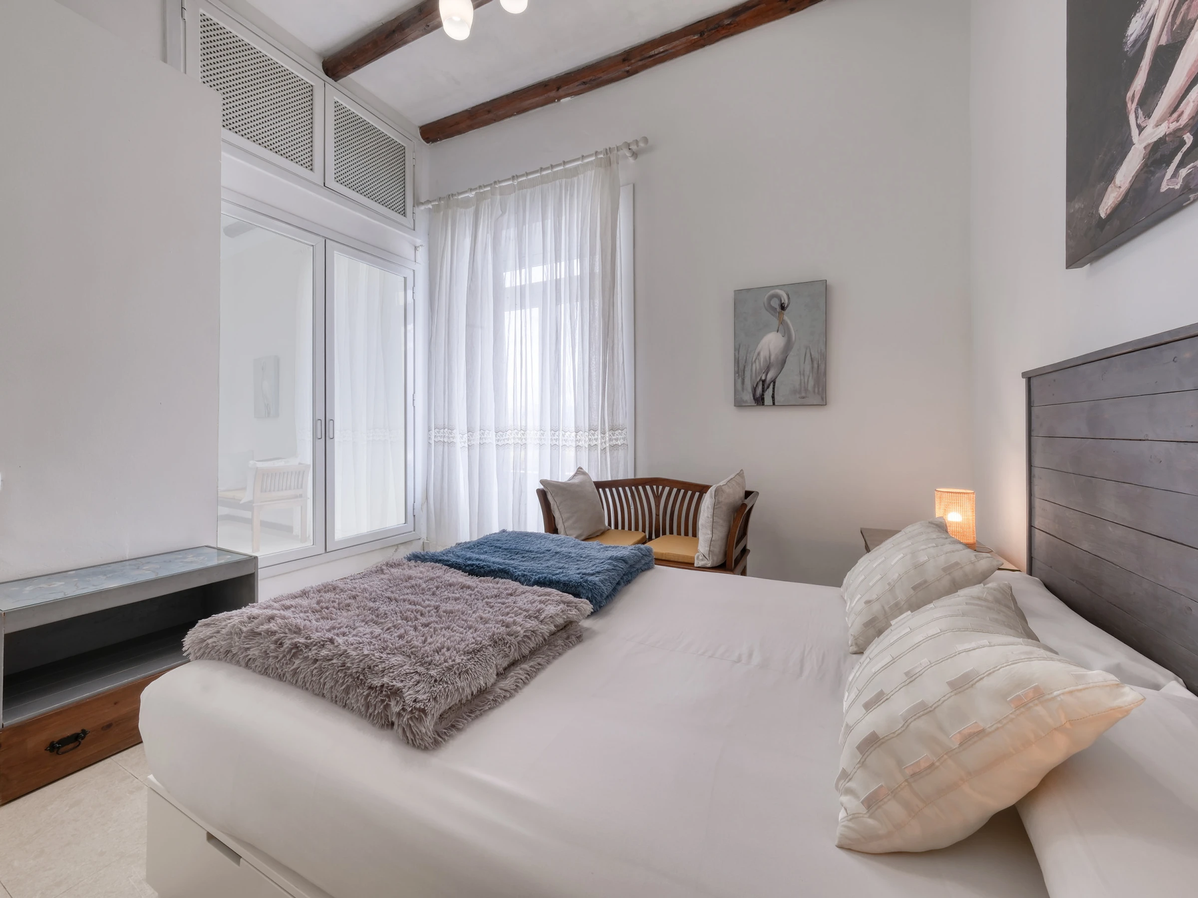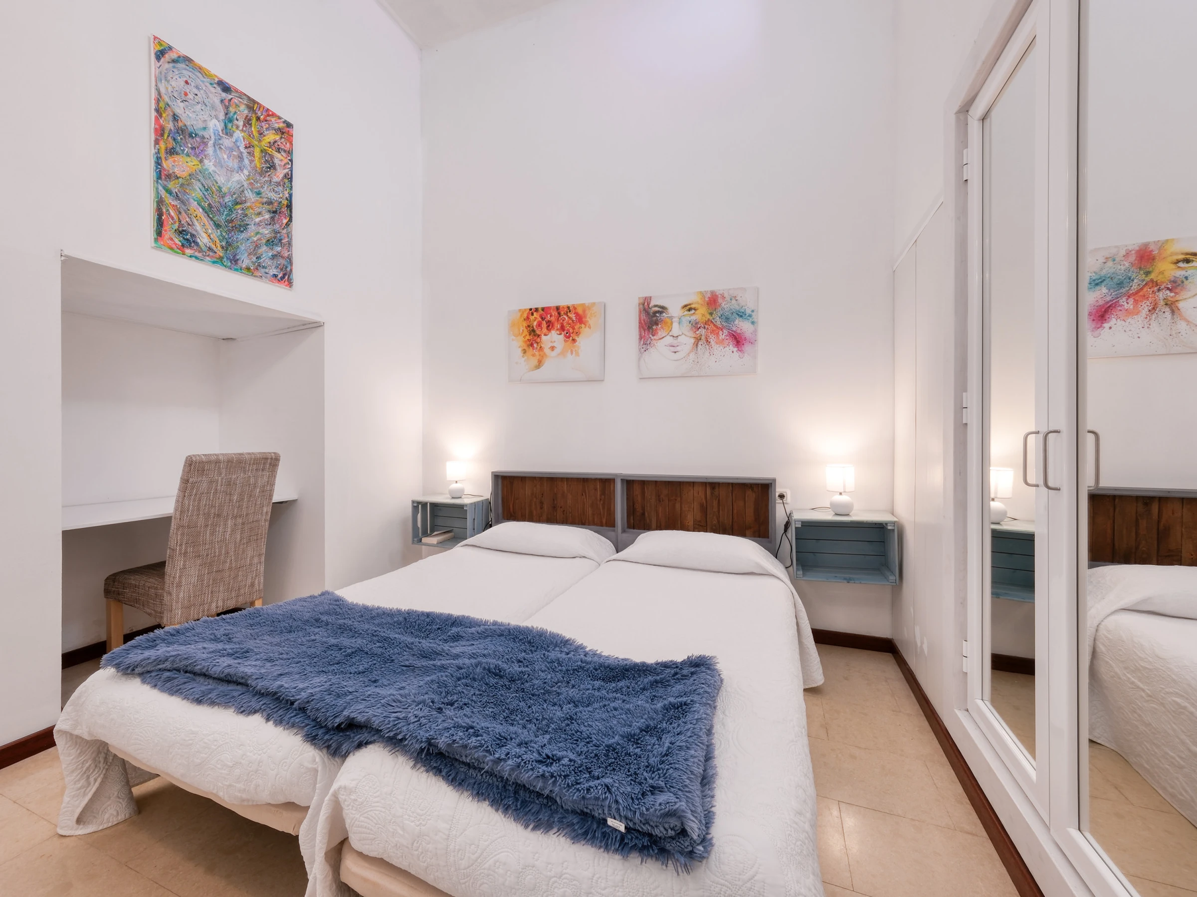 Le logement dispose de trois chambres soigneusement réparties : une chambre avec un lit de mariage ; une chambre avec deux lits individuels ; et une chambre avec un lit individuel, idéale pour les enfants ou pour ceux qui voyagent seuls.