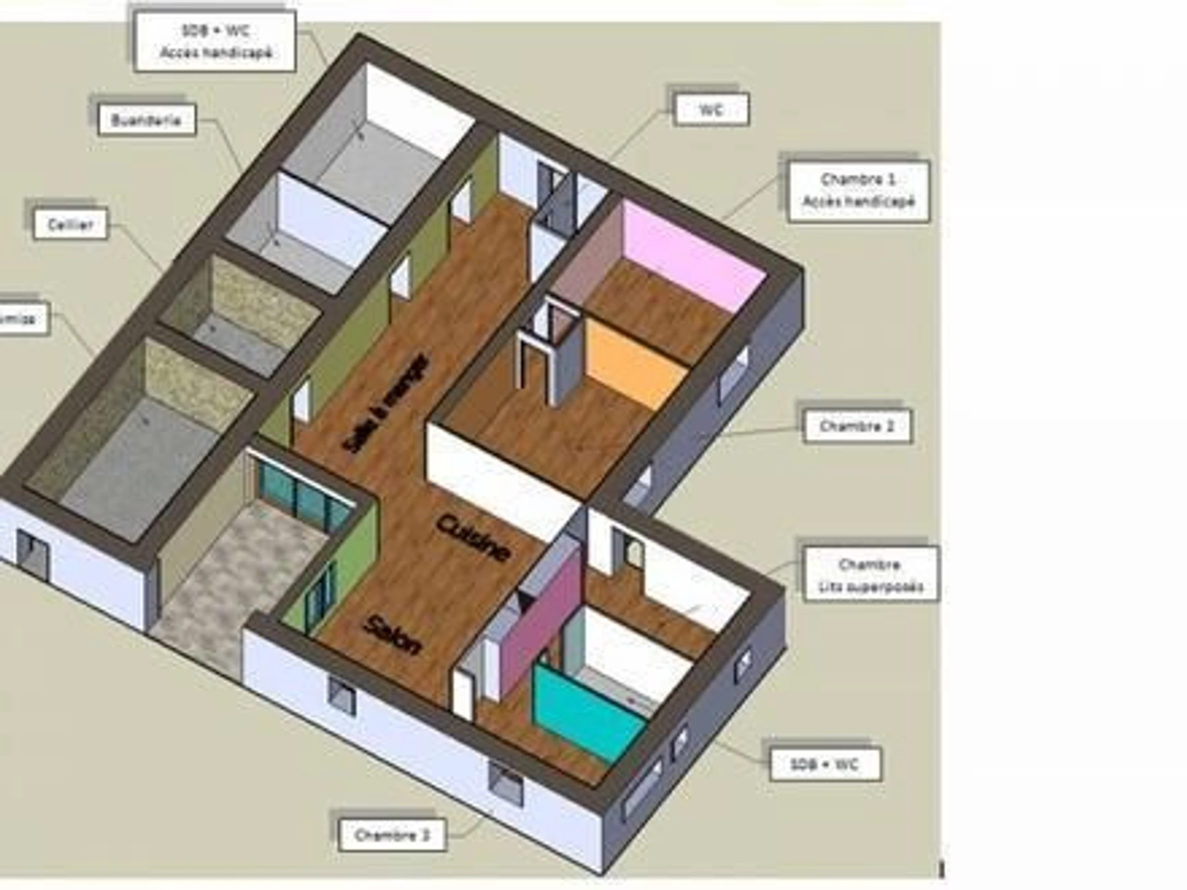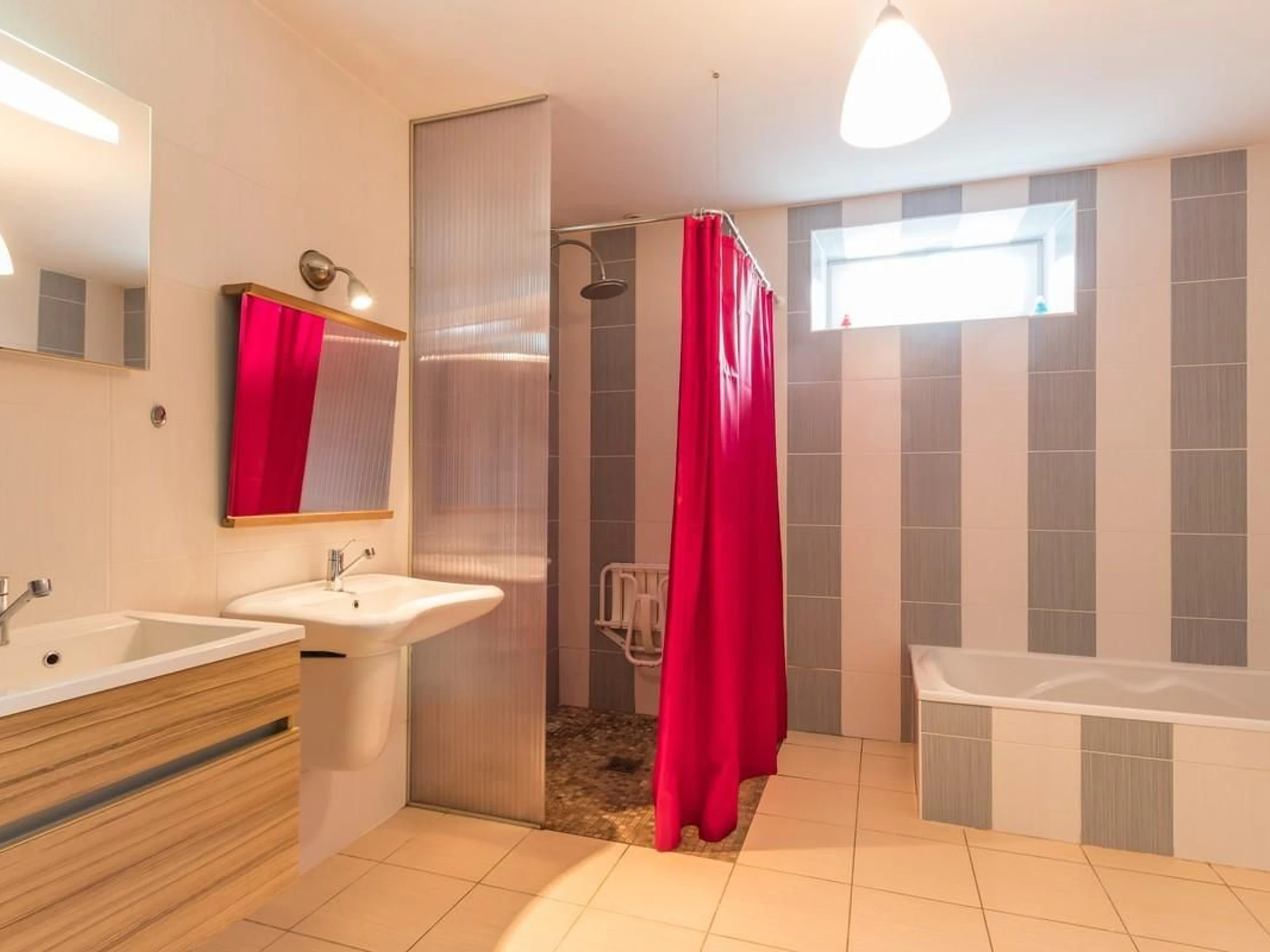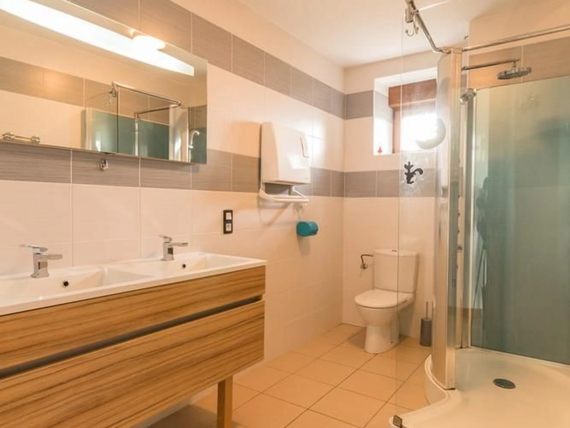Deux chambres en enfilade (une avec 2 lits 90 jumelables en lit 180 et l'autre avec 2 lits 90 superposés) avec une salle d'eau/WC entre les 2. Deux autres chambres avec chacune 1 lit 160. Salle de bains accessible aux personnes à mobilité réduite avec baignoire, douche et WC. Ancienne cave voûtée.