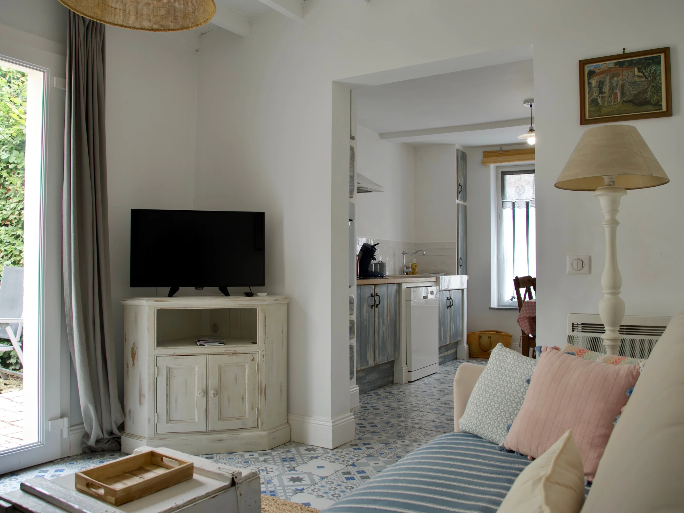 Agréable gîte de plain-pied confortable bénéficiant d'une entrée indépendante. Terrasse de 50m² clôturée par des arbustes face à la maison des propriétaires, avec salon de jardin et de détente, barbecue, parasol et transats. Proche de la vélo-route, des vélos sont à votre disposition. Tous commerces sur place, restaurants, musées, la Loire. Pièce à vivre avec cuisine équipée, salon avec canapé convertible (50€ si personne supplémentaire pour le séjour mais précision : il faudra passer par la chambre pour se rendre à la salle d'eau/wc), 1 chambre avec 1 lit 160x200, une salle d'eau attenante à la chambre comprenant une grande douche à l'italienne et wc.