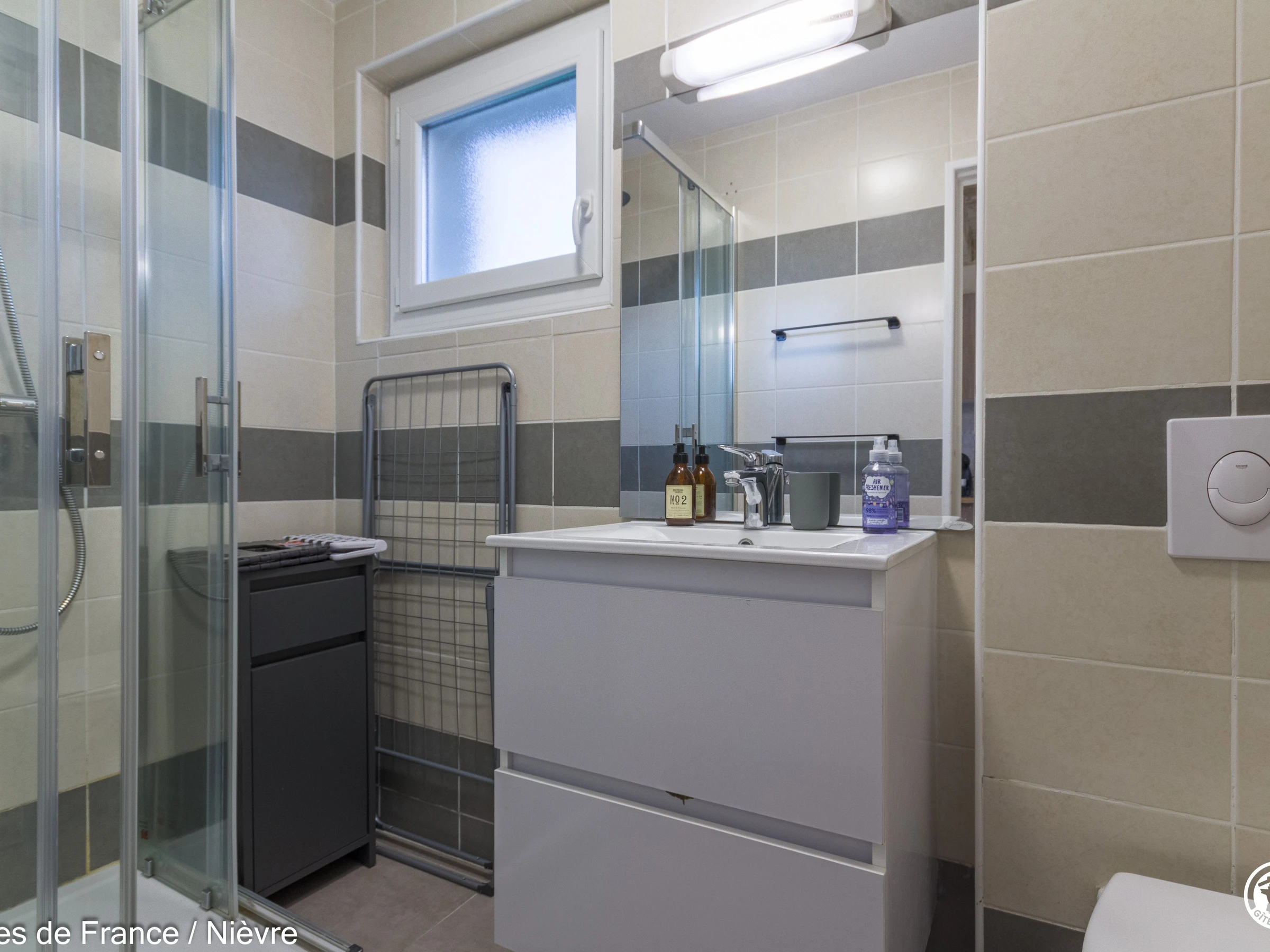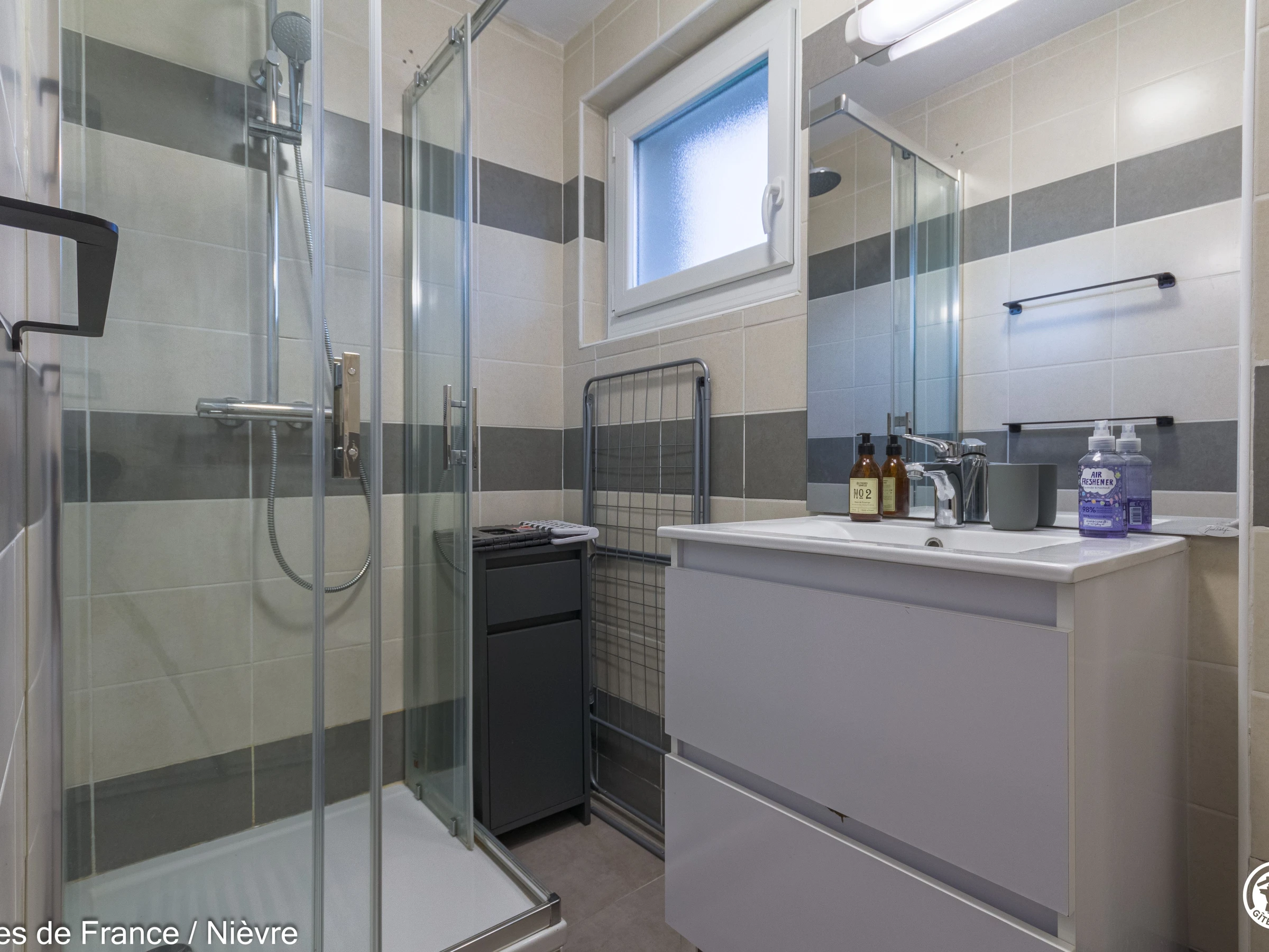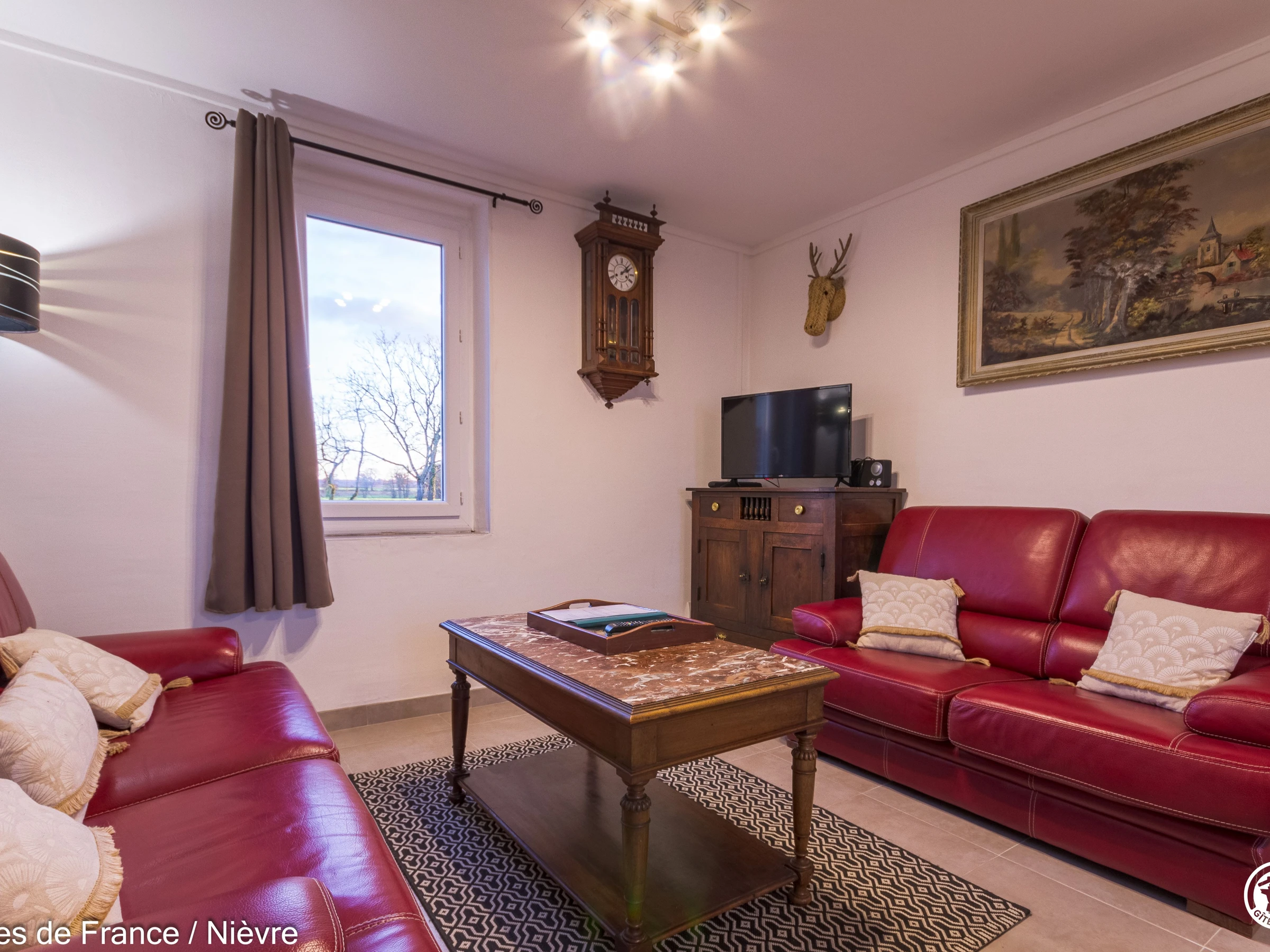 Au calme, maison individuelle à 20min de Decize, à 35min du PAL (Parc d'attraction et parc animalier), à 7 min de Gannay sur Loire (canal latéral à la Loire avec guiguette) et à 30min de Moulins. Maison individuelle de 70m² entièrement rénovée sur un grand terrain clos. Endroit idéal pour se ressourcer, se reconnecter à la nature et oublier le stress du quotidien. Mare sur le terrain (les enfants doivent rester sous la surveillance d'adultes - baignade interdite). Quelques marches pour accéder au gîte : entrée dans la pièce à vivre (espace repas et espace salon avec 2 canapés, tv, wifi et radio), cuisine indépendante, salle d'eau avec wc et douche, 2 chambres avec 1 lit 140x190 dans l'une et 1 lit 140x190 + 1 lit 130x190 dans l'autre. Poêle à granulés. Chauffage électrique, électricité et forfait ménage inclus. 2 sacs de granulés inclus (distributeur de pellet à 5 mn dans la commune de Gannay).