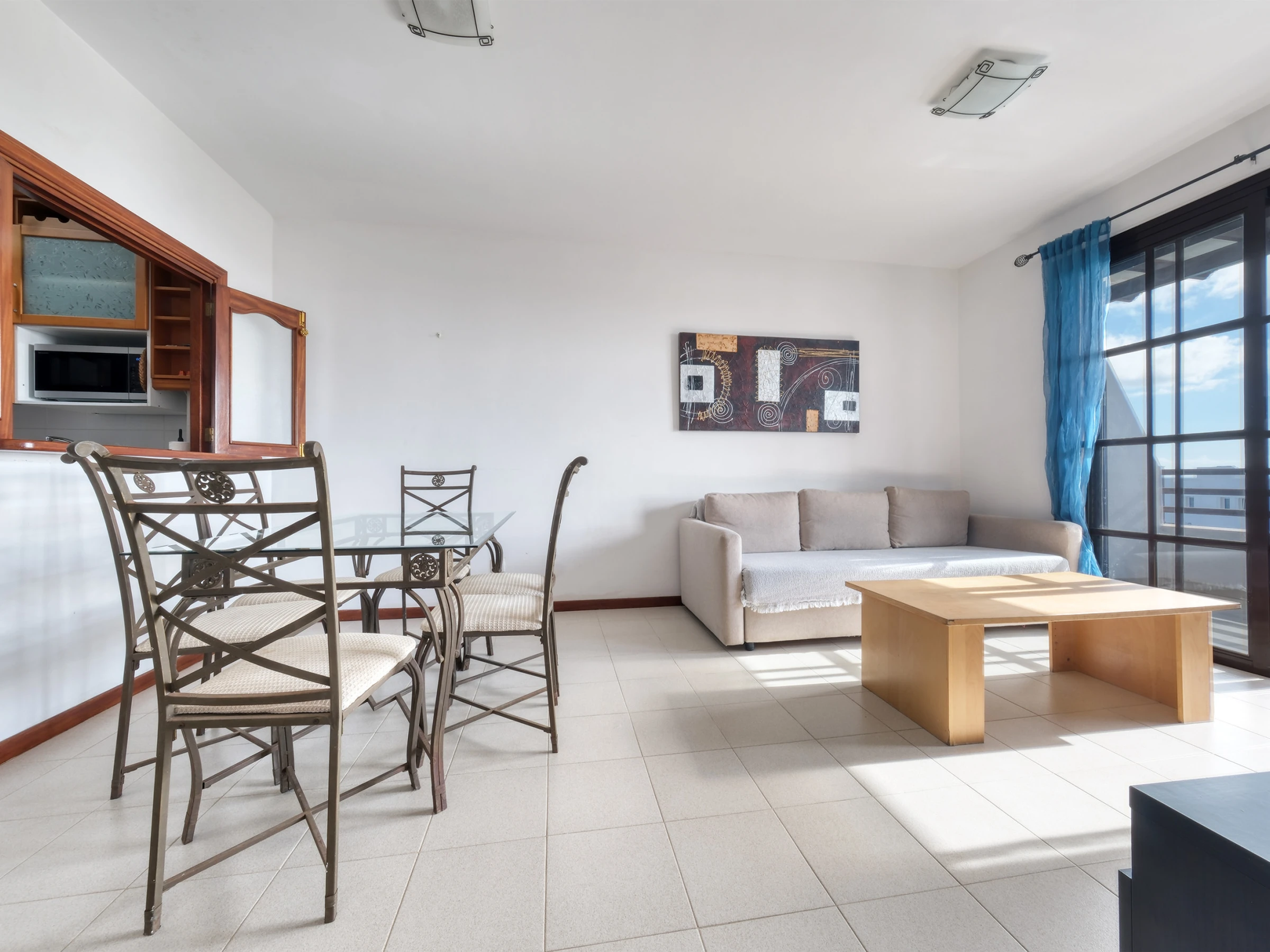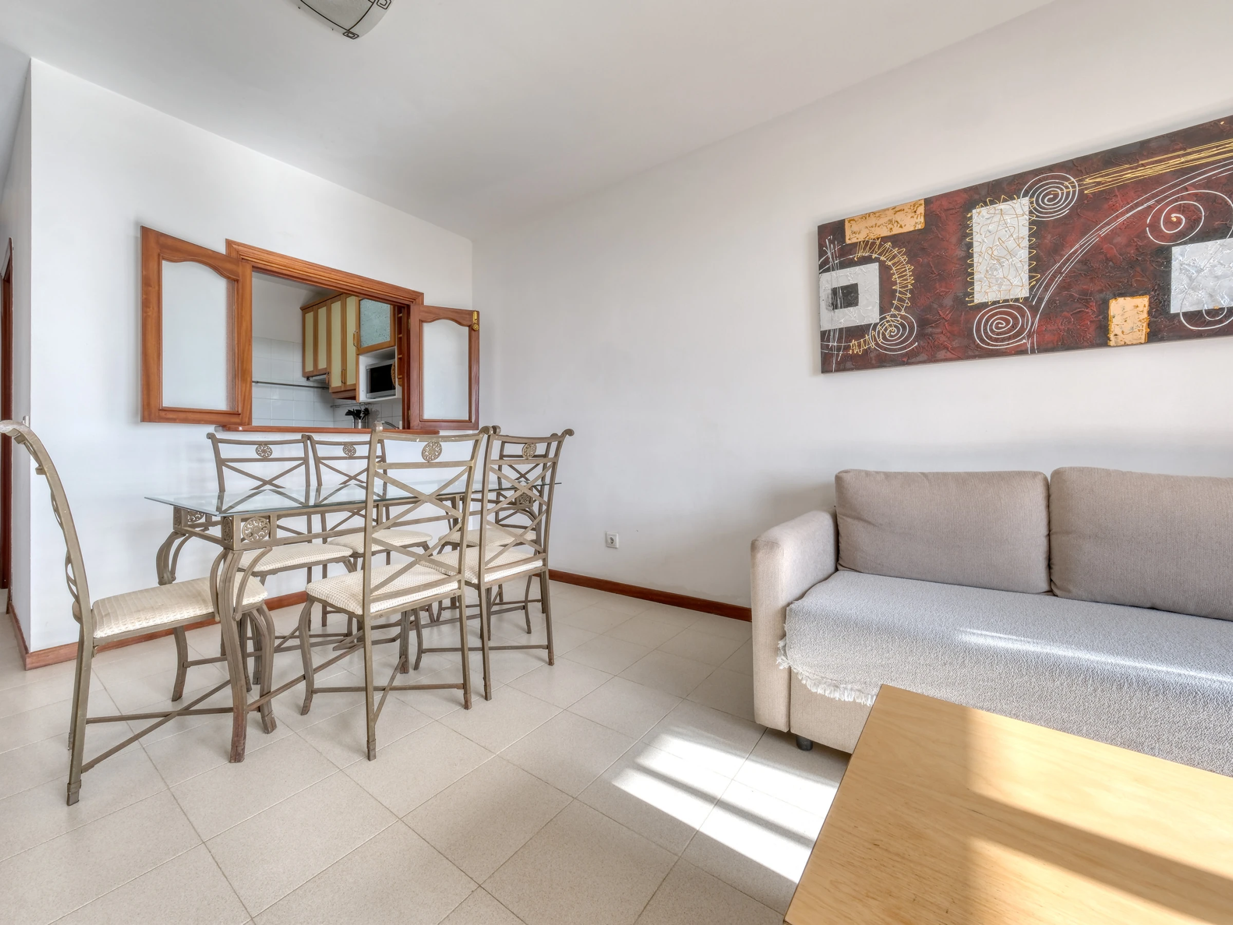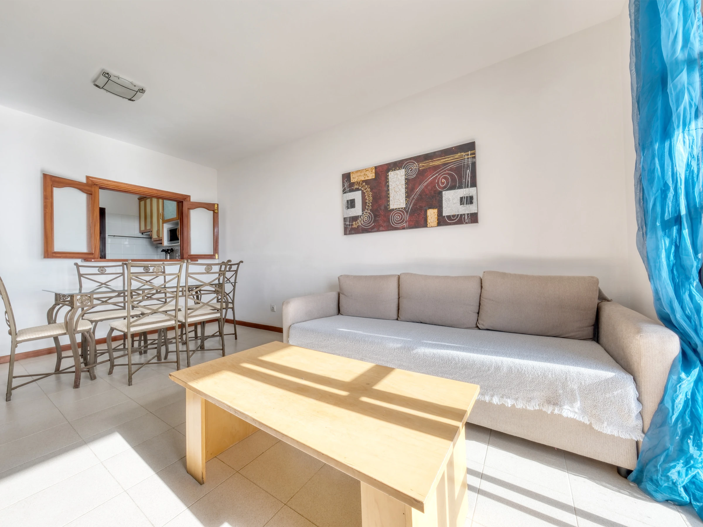 Situé au troisième étage sans ascenseur, cet appartement lumineux offre tout le confort nécessaire pour profiter d'un séjour parfait. La résidence dispose d'une piscine communautaire, d'un court de tennis et d'un bar, idéaux pour se détendre et profiter du bon climat de l'île.