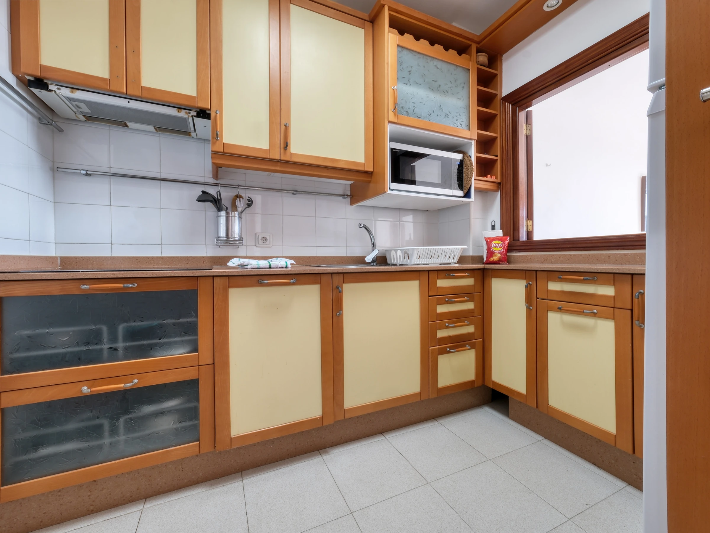 L'appartement dispose d'une cuisine indépendante entièrement équipée avec une plaque vitrocéramique, un réfrigérateur, un lave-vaisselle, un micro-ondes, une cafetière, un grille-pain, un presse-agrumes, un équipement de cuisine complet et une réserve, conçue pour que vous puissiez vous sentir comme chez vous. Le salon est spacieux et accueillant, dispose d'une Smart TV et d'un wifi gratuit, et s'ouvre sur un balcon privé avec vue sur la piscine commune et la mer, équipé d'une table et de chaises, parfait pour profiter d'un petit-déjeuner en plein air ou se détendre en contemplant le coucher de soleil.