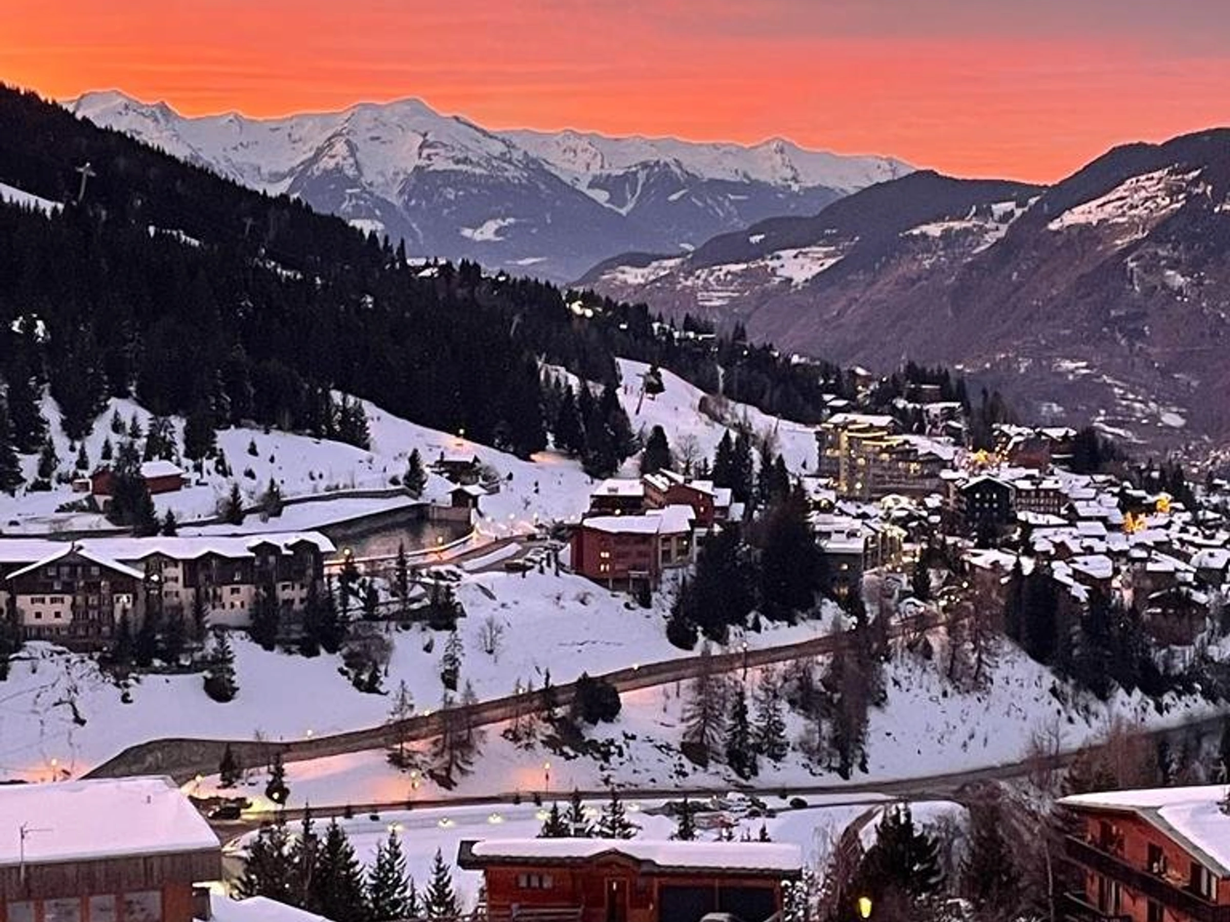 Grand appartement, skis aux pieds, situé dans le centre de Courchevel Moriond, offrant une exposition sud et ouest et une belle vue sur la vallée et les sommets.