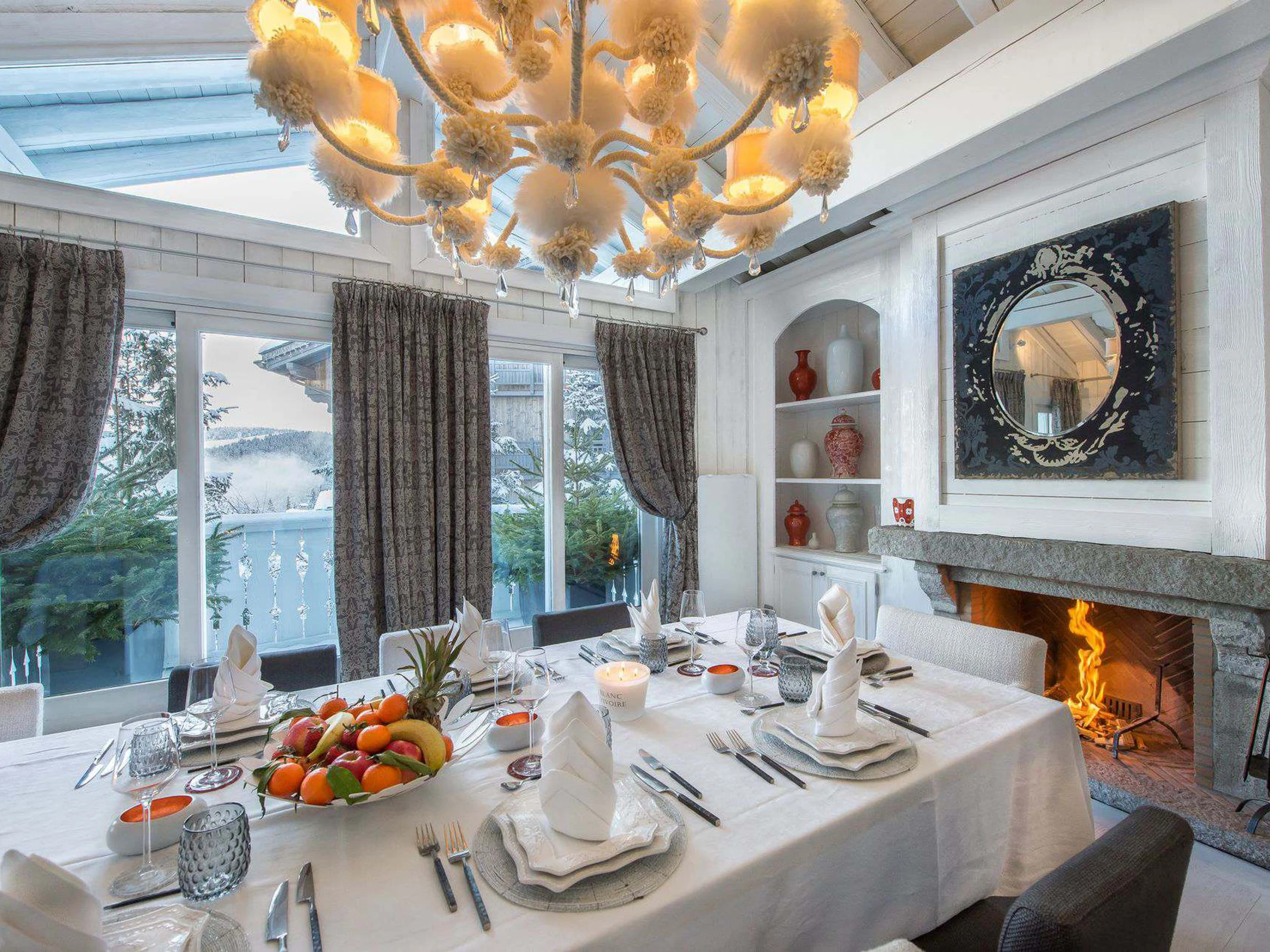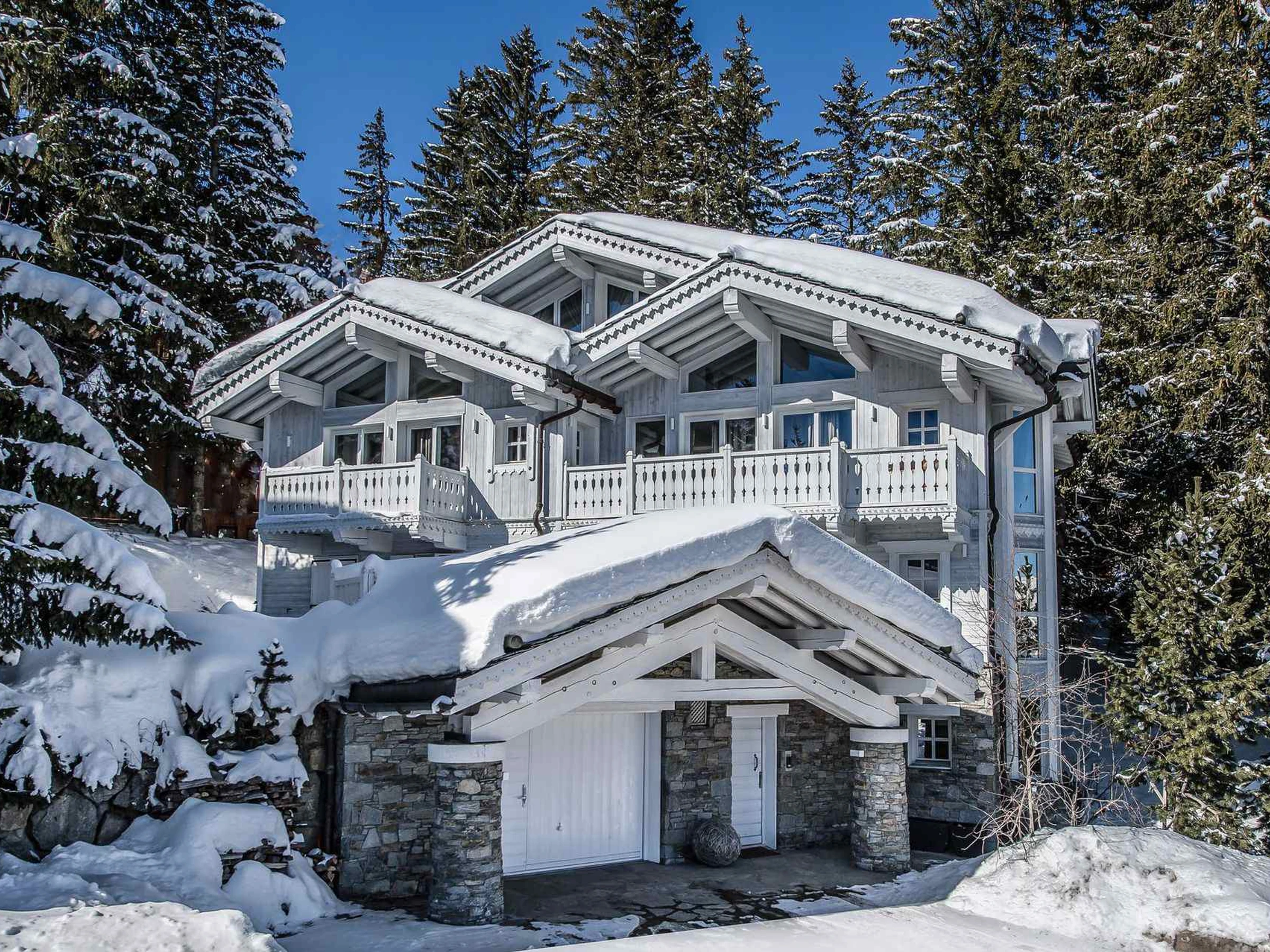 Chalet d'exception de 450m², monochrome blanc, avec 6 chambres comprennant lit double et salle de bain attenante. Nombreux espaces détente et loisirs; bar, home cinema, hammam, jacuzzi intérieur, piscine, salle de sport et de massage. Service petit déjeuner préparé par un chef.
