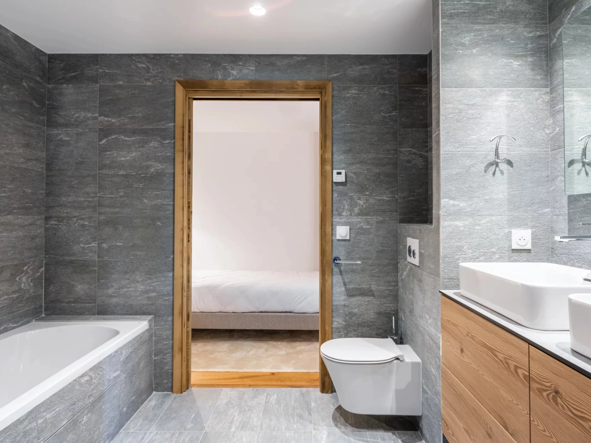 - Chambre 1 : Lit King Size ou twin, balcon privatif, salle de bain 1 avec baignoire, double vasques et toilette
