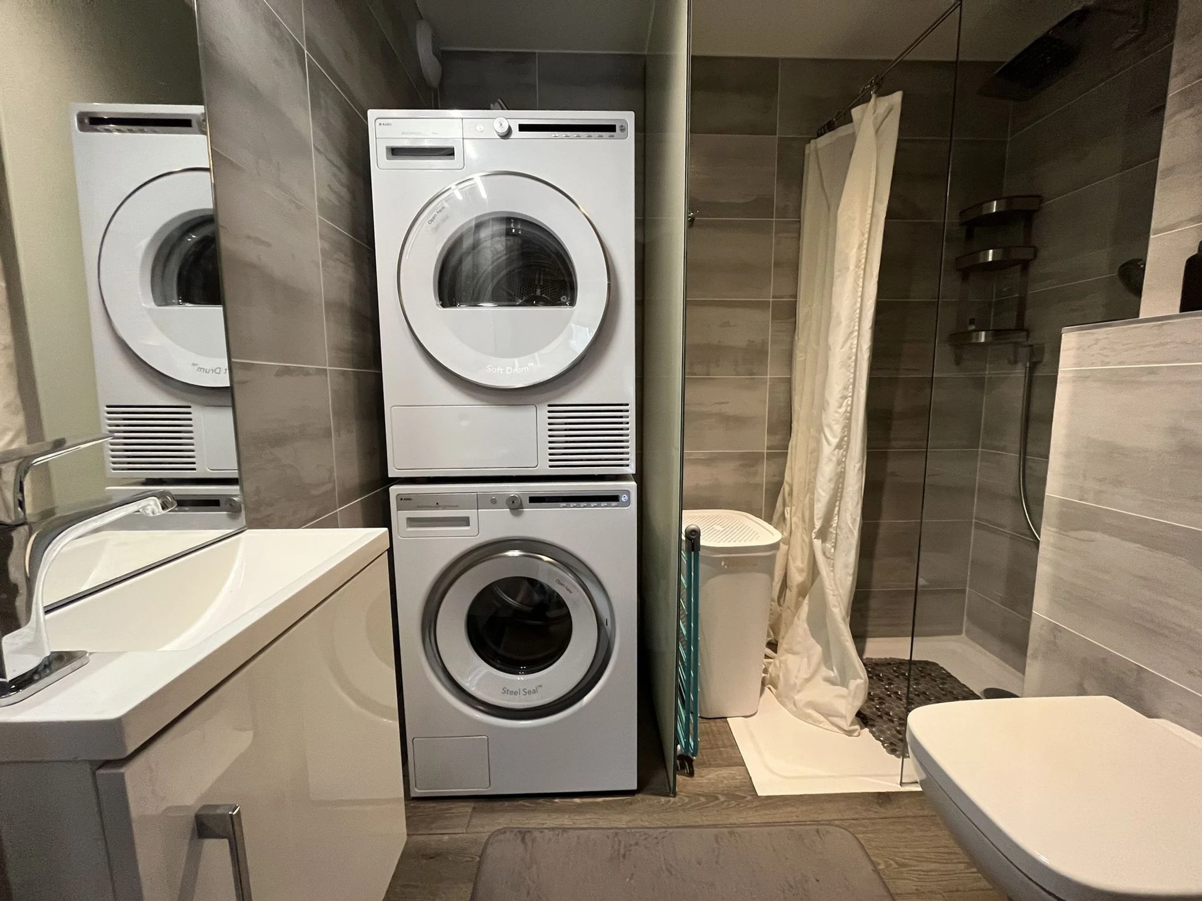 - 1 chambre lit superposé 3 couchages (90*200) en suite salle de douche, toilettes et buanderie