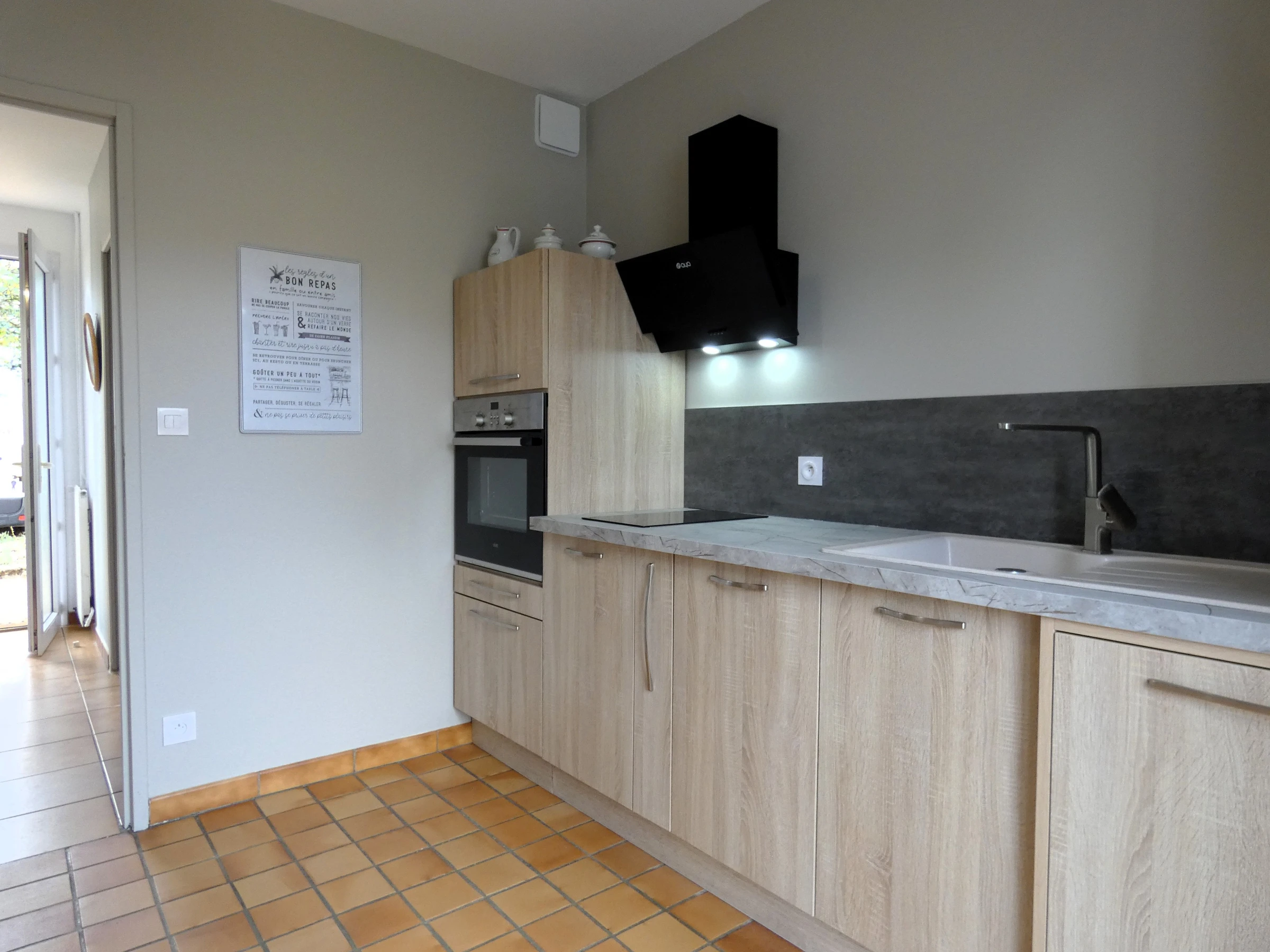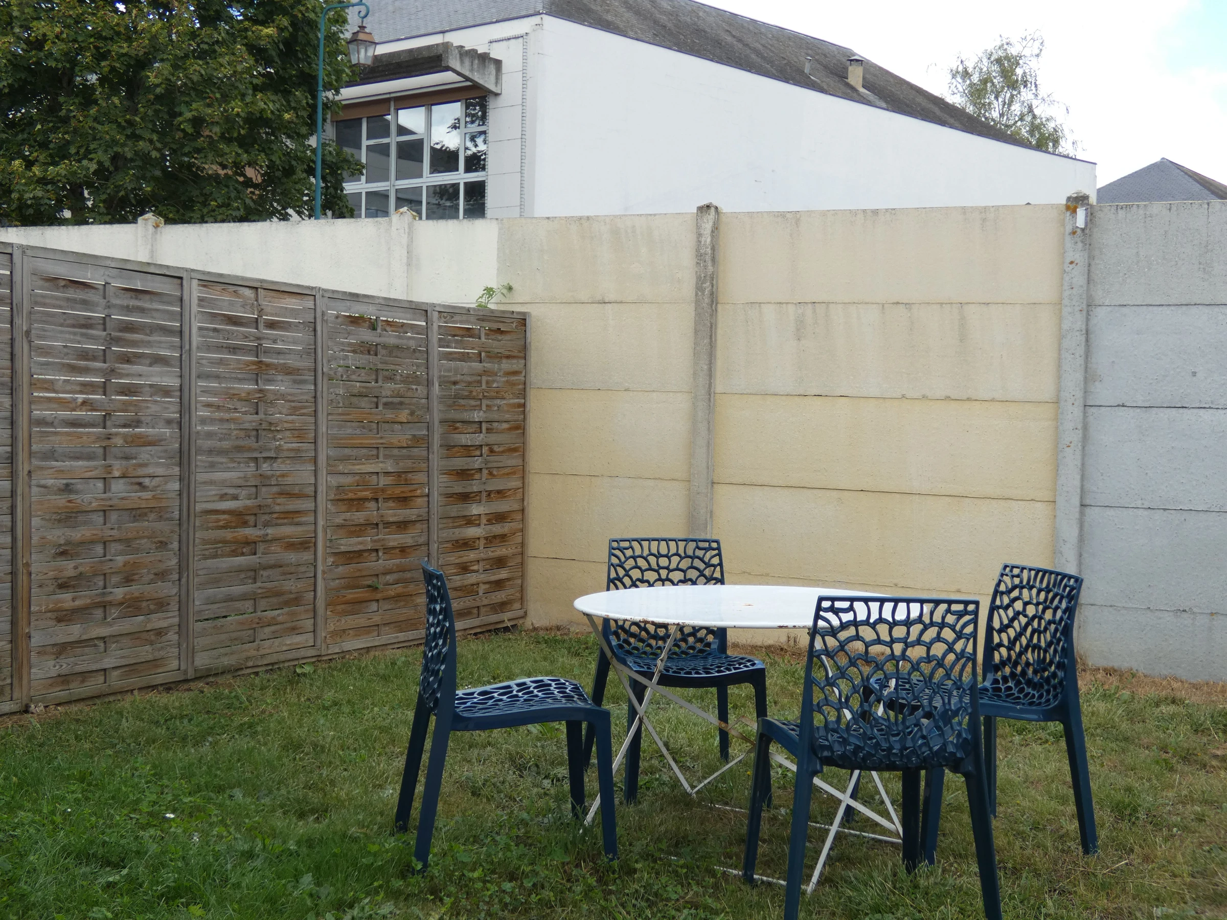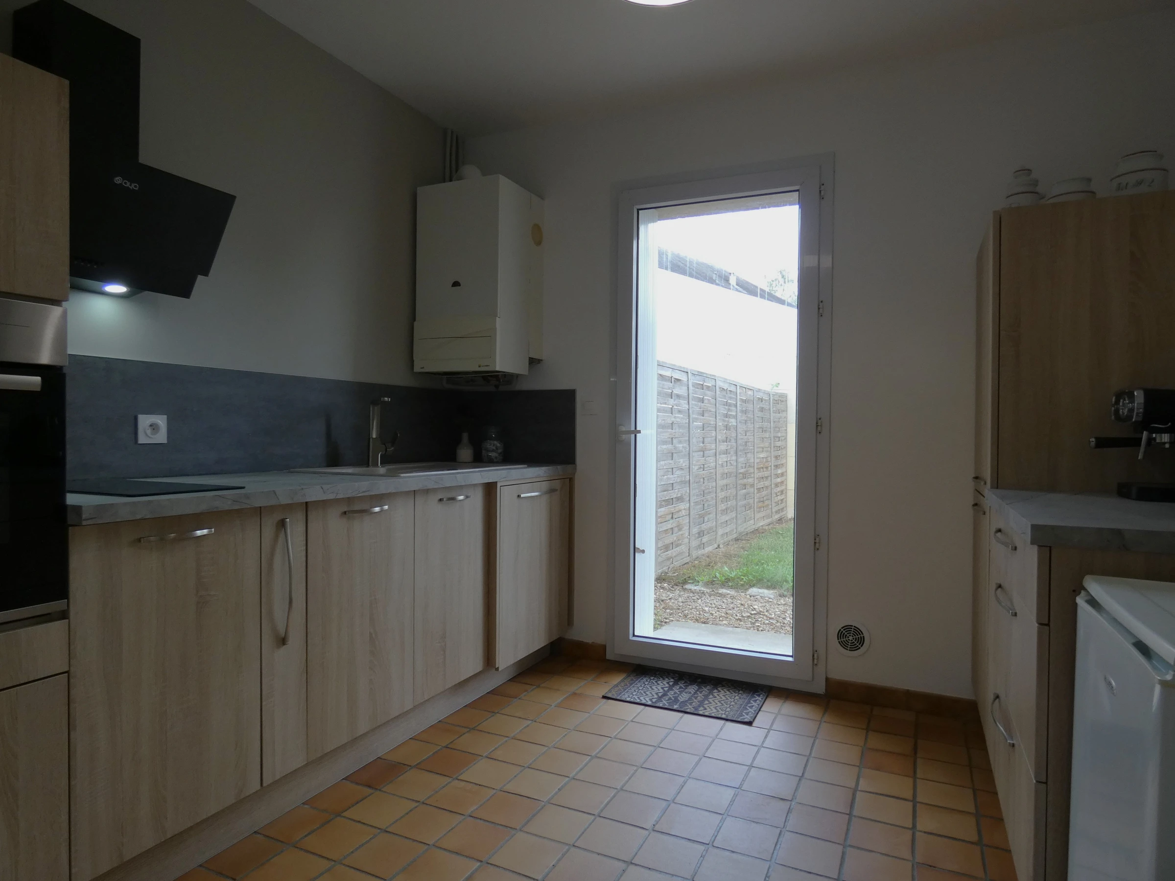 Une cuisine moderne et toute équipée, un salon confortable dans un espace chaleureux, un coin salle à manger, un salle d'eau et une cour privée et close