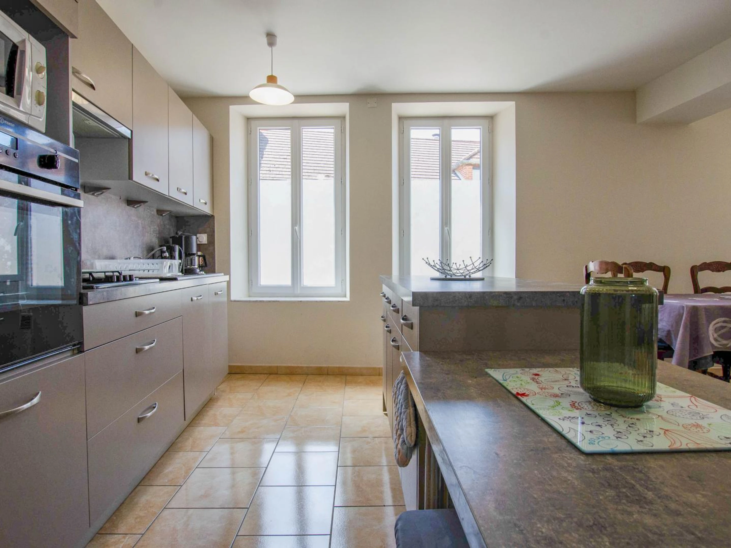 Vous disposerez d'une pièce de vie avec cuisine ouverte, coin repas et espace détente (canapé convertible pour 2 personnes, couchage 140x190), d'une chambre double avec bureau, d'une salle de bain (douche + baignoire), d'un wc indépendant et d'une buanderie. A l'extérieur (en cours d'aménagement), salon de jardin, parasol, barbecue. Place de parking privative. Linge de toilette et de maison inclus, draps fournis. Chauffage et électricité dans la limite d'une consommation raisonnable (relevé de compteurs arrivée / départ). Ménage de fin de séjour en supplément. À 1h30 de Paris, 45 min de Troyes et de ses célèbres magasins d'usine, venez poser vos valises dans ce gîte de plain pied situé à Crancey, petit village paisible aux portes de Romilly-sur-Seine, dans l'Aube. Idéal pour un séjour en famille ou entre amis, il peut accueillir jusqu'à 4 personnes et vous offre tout le confort nécessaire pour un moment de détente au cœur de la Champagne méridionale. Emplacement calme, tout en étant à proximité des commerces de Romilly-sur-Seine. Profitez également d'un petit jardinet clos et privatif de 50 m², parfait pour un petit-déjeuner en plein air, un apéritif au soleil ou une soirée tranquille sous les étoiles. À l'intérieur, une ambiance douce et conviviale vous attend, alliant simplicité et praticité.
