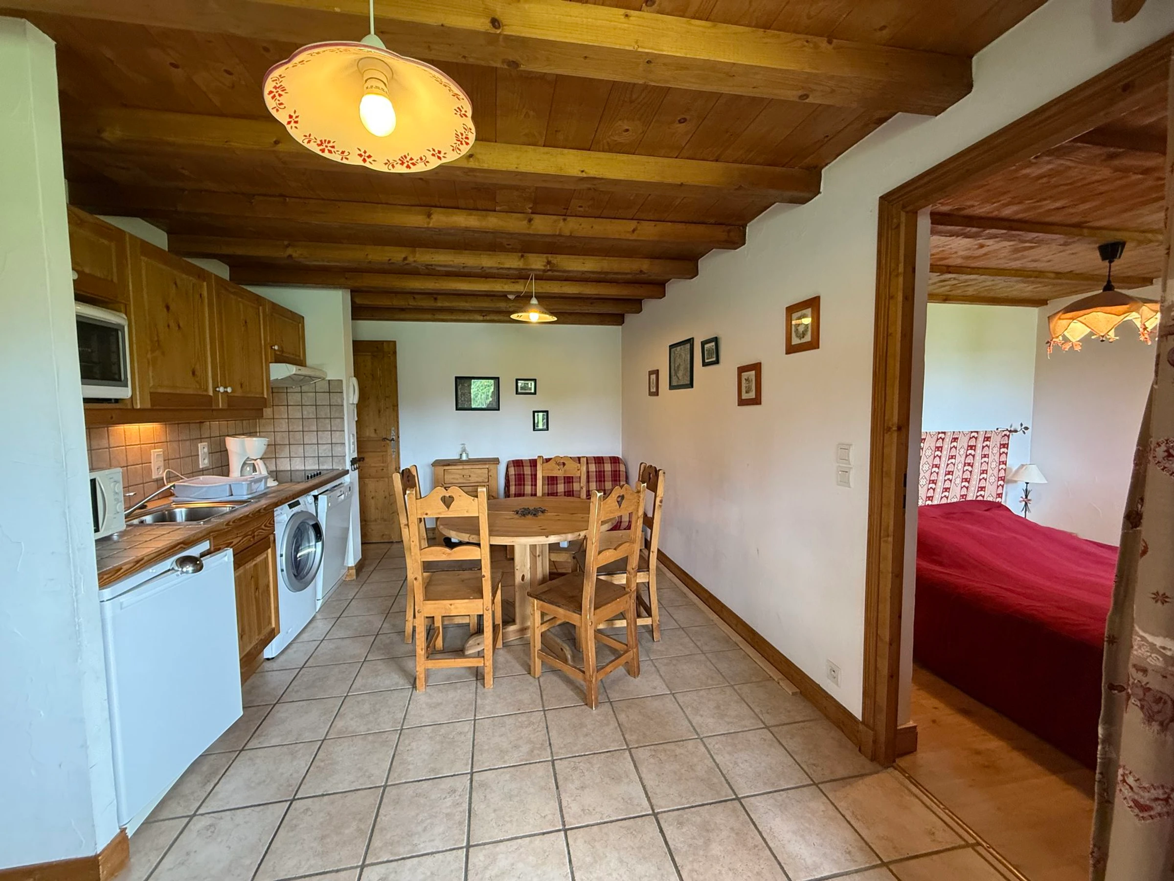 En été, vous serez non seulement à 600m des jeux pour enfants mais aussi à proximité de nombreux sentiers pour d'agréables ballades à pied ou en VTT. La télécabine de la Logère, ouvert 5 jours par semaine, vous permet d'accéder facilement aux plus beaux panoramas sur le Mont Blanc et les Aravis. Le plan d'eau de Flumet et sa base de loisirs sont à seulement 10km.