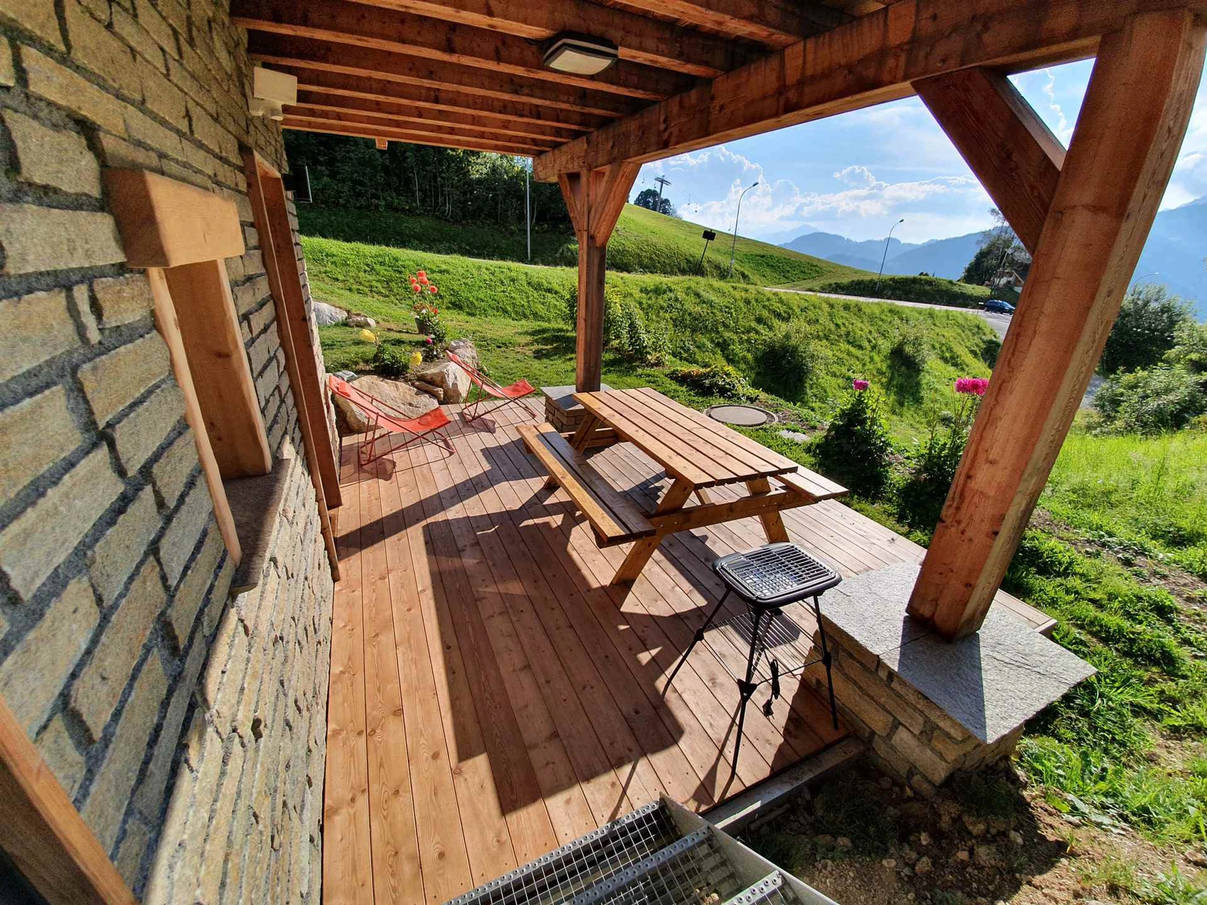 - Grande terrasse exposée Sud-Ouest en rez de jardin avec vues montagnes