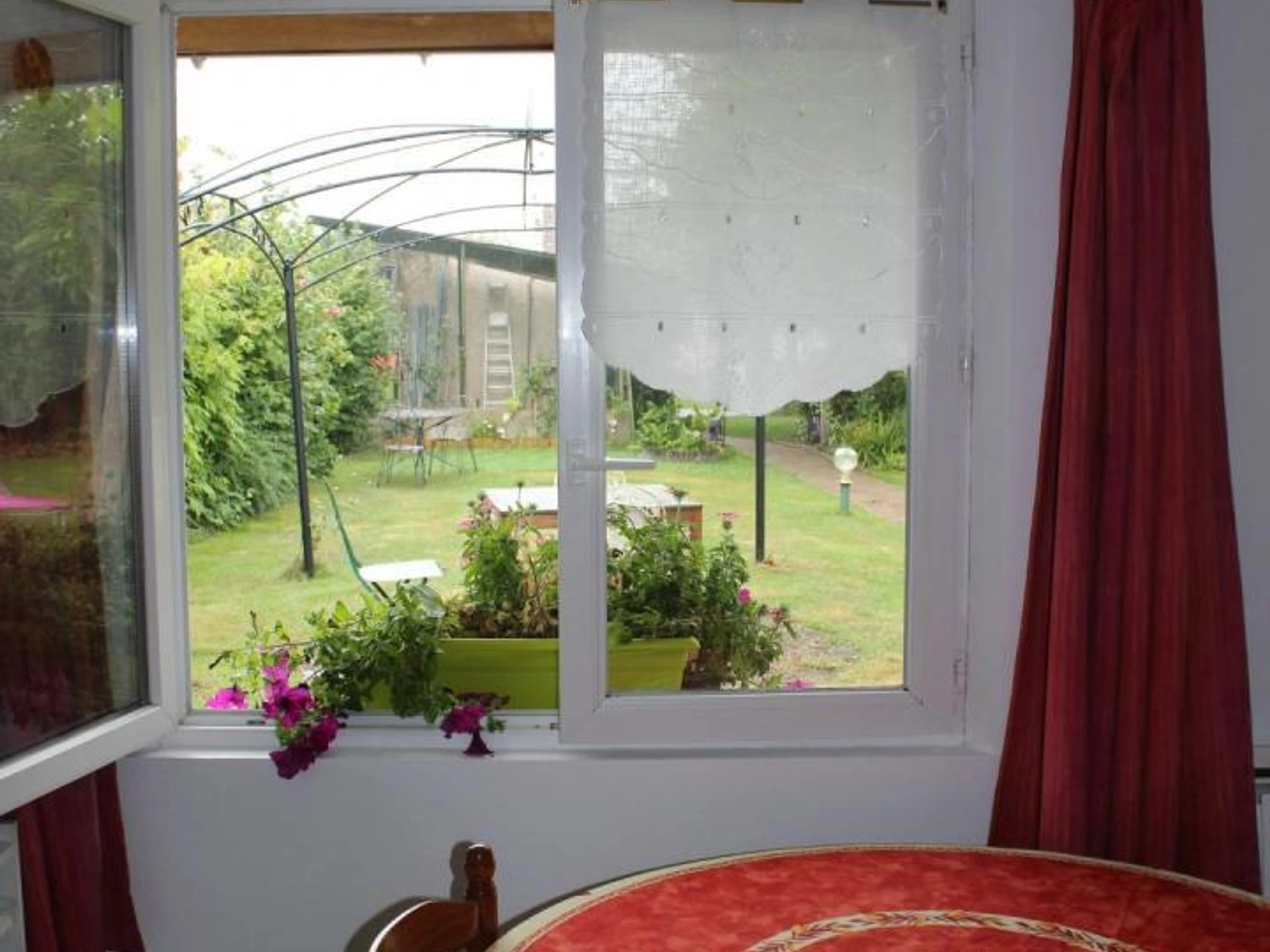 Jour d'arrivée libre. Gîte au fond du jardin de la propriétaire. Plain-pied (53 m²) : séjour (canapé convertible pour 1 personne supplémentaire ou 2 enfants), TV 80cm, /coin-cuisine équipée ( micro-ondes, 4 feux gaz, frigo-congélateur), salle d'eau (douche 95x95 cm), lave-linge, WC indépendant (sanibroyeur), 2 chambres en enfilade 1 lit 140x190, 2 lits 90x190. Wifi, jardin commun de 1 100 m². Terrasse privée. Lits faits à l'arrivée. Possibilité de forfait ménage. 2 chambres d'hôtes sur place. Par la force des vagues, mettez le cap sur un territoire qui a du souffle. Du haut des beffrois, humez, avec délices, l'incroyable énergie du littoral flamand !