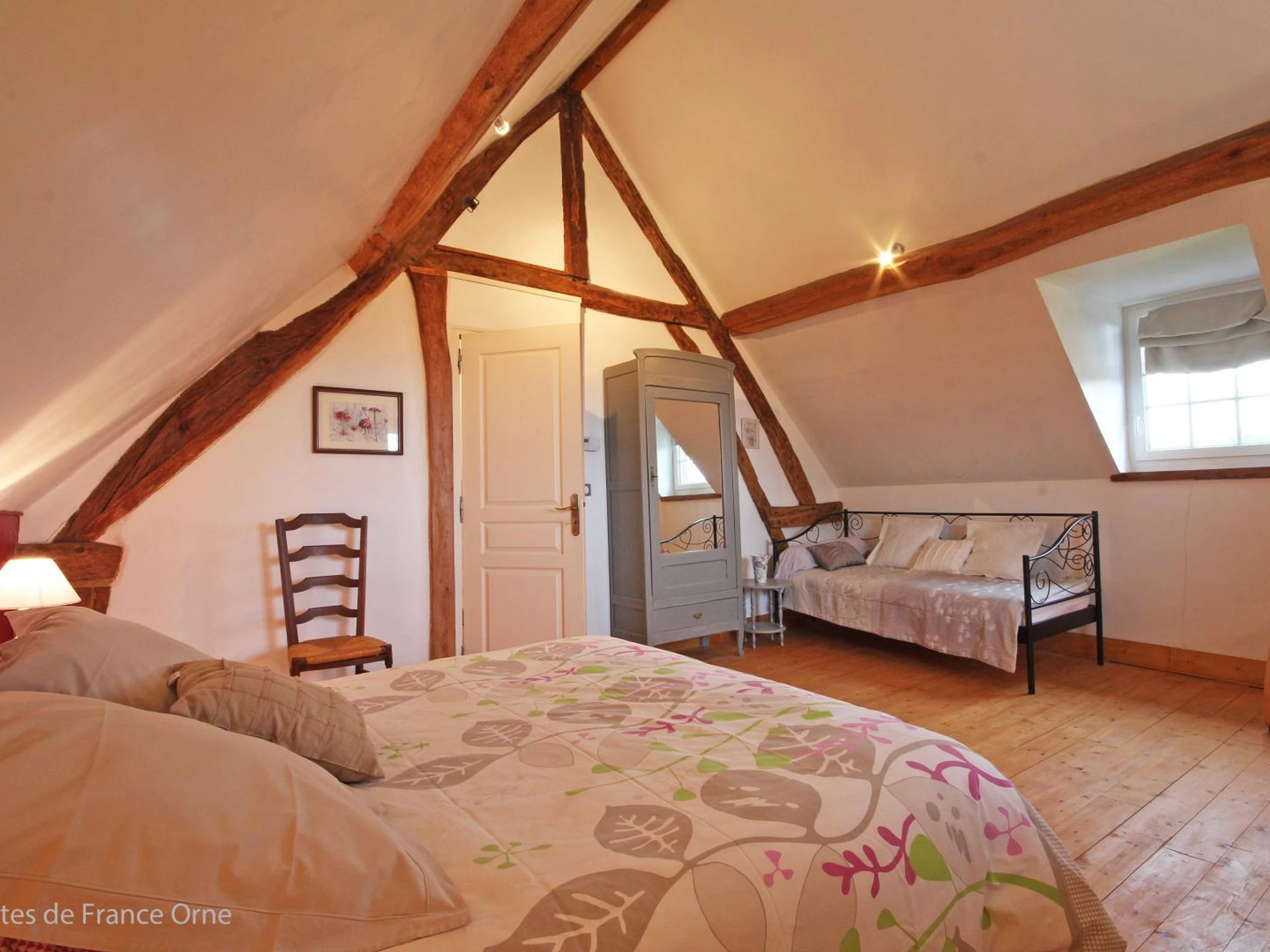 À l'étage : 1 chambre (1 lit 2 personnes en 160cm x 200cm, 1 lit 1 personne), 1 chambre (2 lits 1 personne), salle de bains et WC.