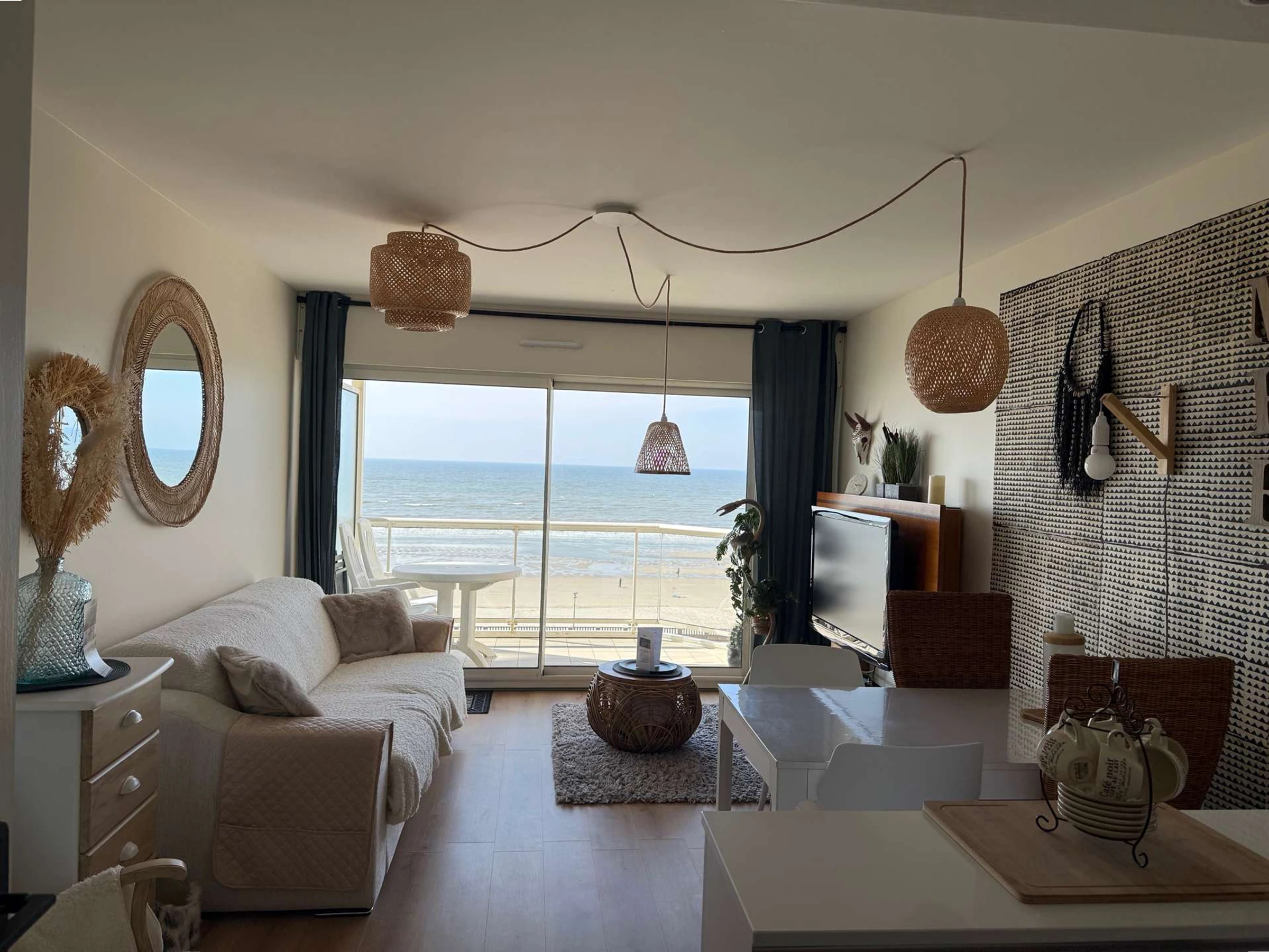 Il se compose d’un séjour lumineux avec vue mer, d’un coin cuisine équipé (dont lave-vaisselle), d’une chambre avec lit double 140, d’une salle d’eau avec cabine de douche, d’un lave-linge et de WC séparés.