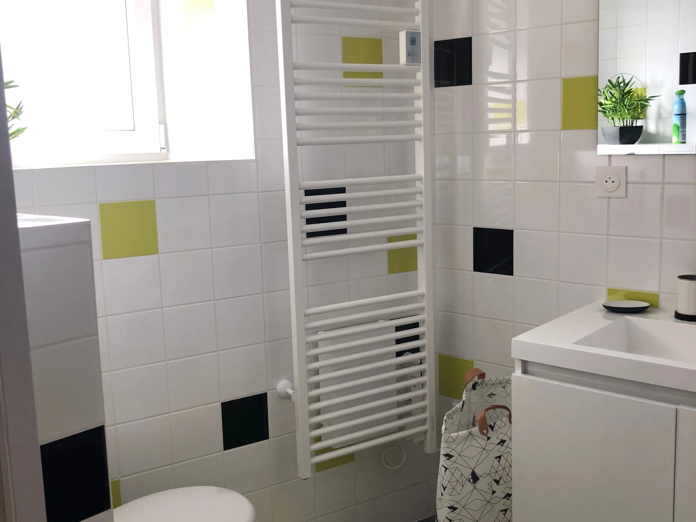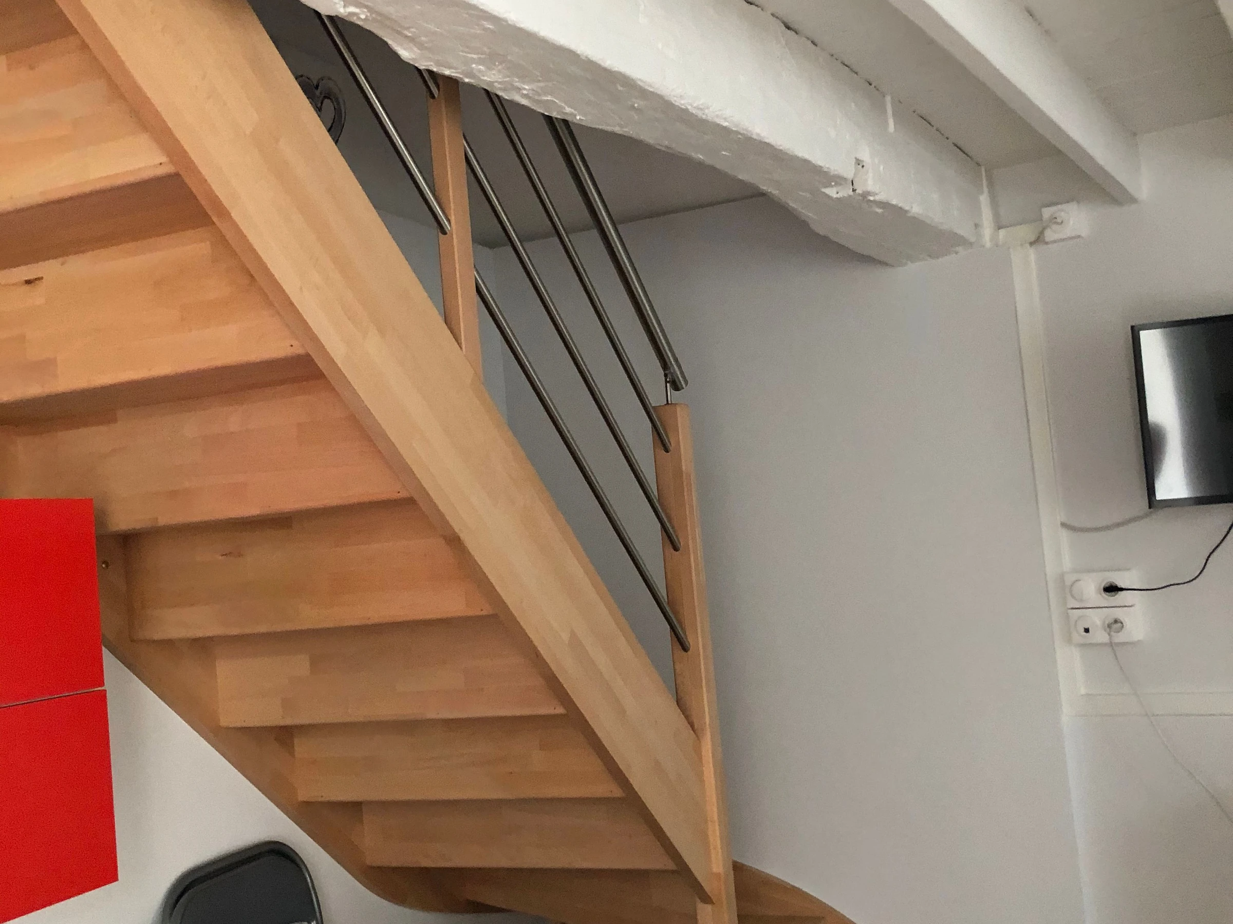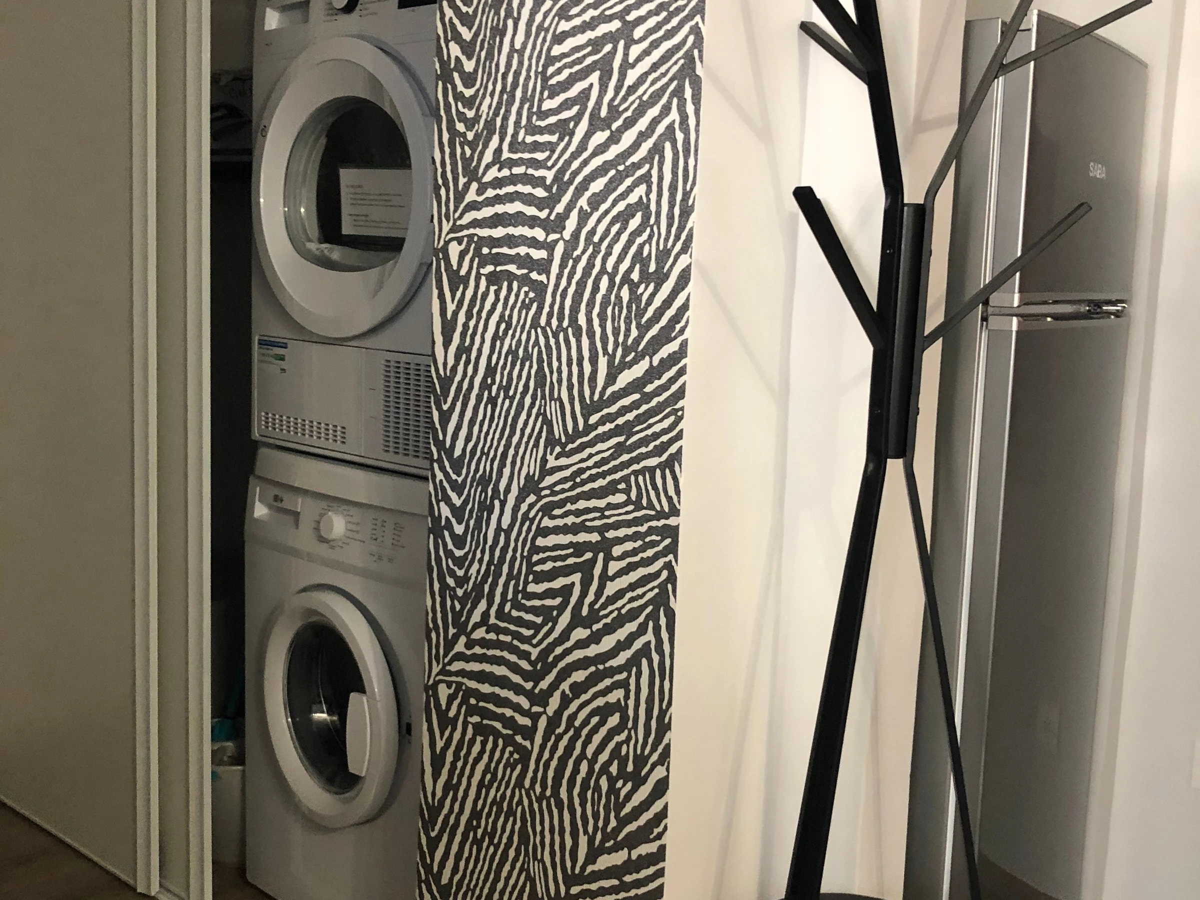 Au RdC: cuisine équipée avec frigo et petit espace congélateur. Salle d'eau et buanderie avec lave-linge -