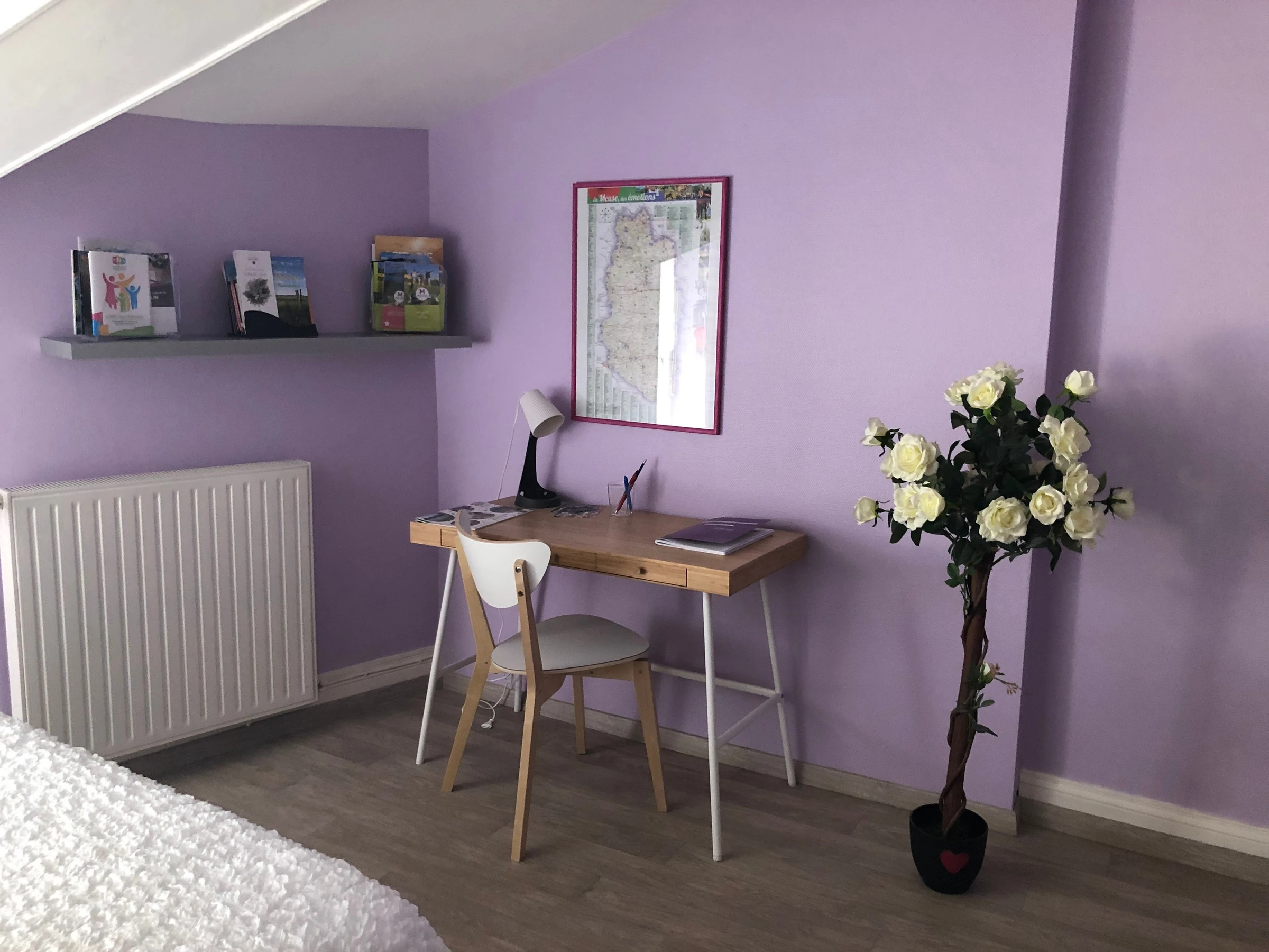 Au centre de l'ancienne petite ville fortifiée de Damvillers, entre Verdun et Monmédy, ce gîte douillet et bien aménagé vous accueille, face à la mairie, dans une des maisons les plus anciennes du village. Il a gardé le charme des constructions anciennes avec son escalier de meunier et ses chambres sous pentes De nombreux sentiers et étangs vous apporteront le plaisir de découvrir un environnement de qualité. Il est recommandé pour des couples seuls. A l'étage : 1 grande chambre avec 1 lit 2 personnes et 1 salon télé avec banquette convertible.