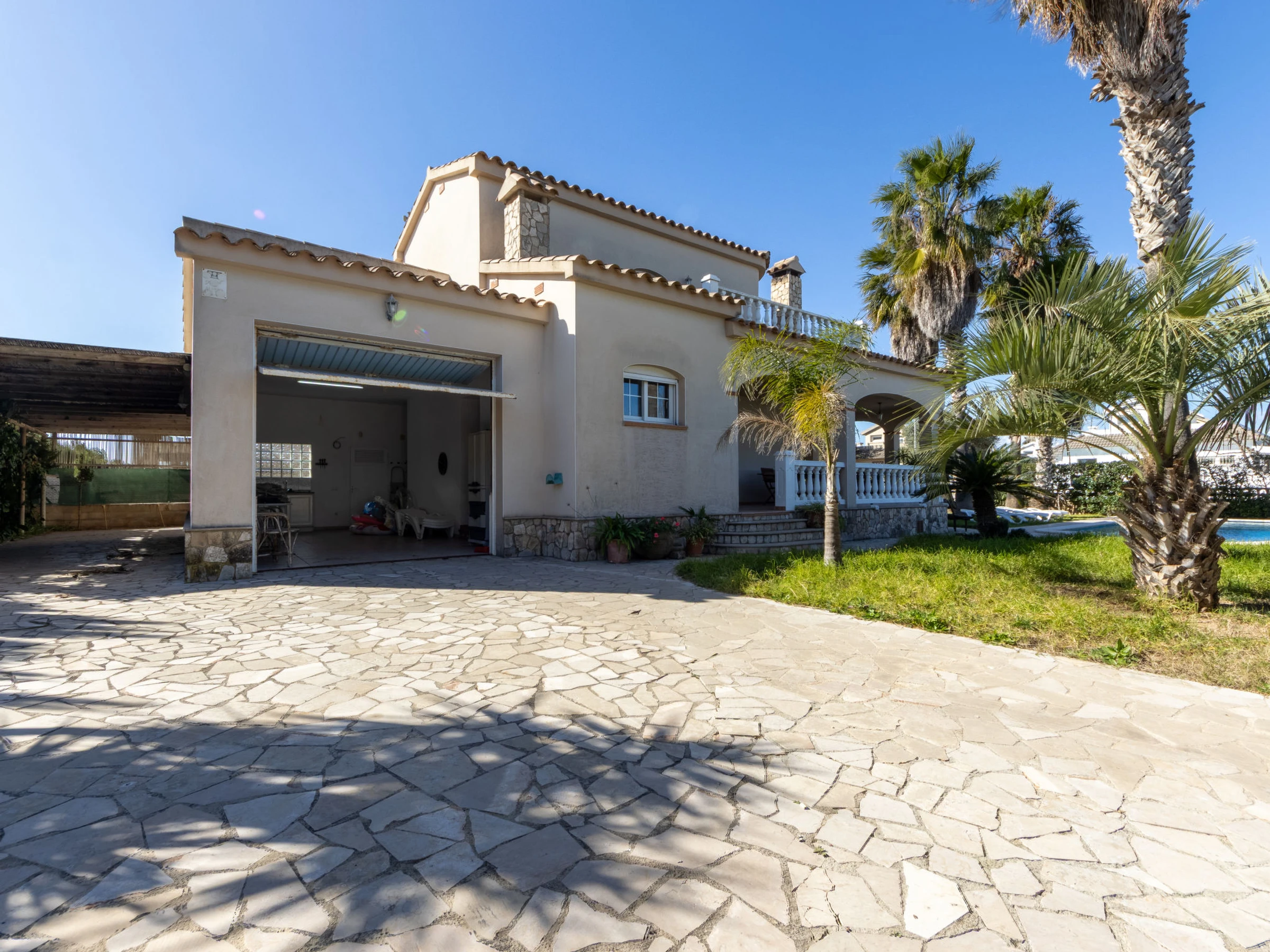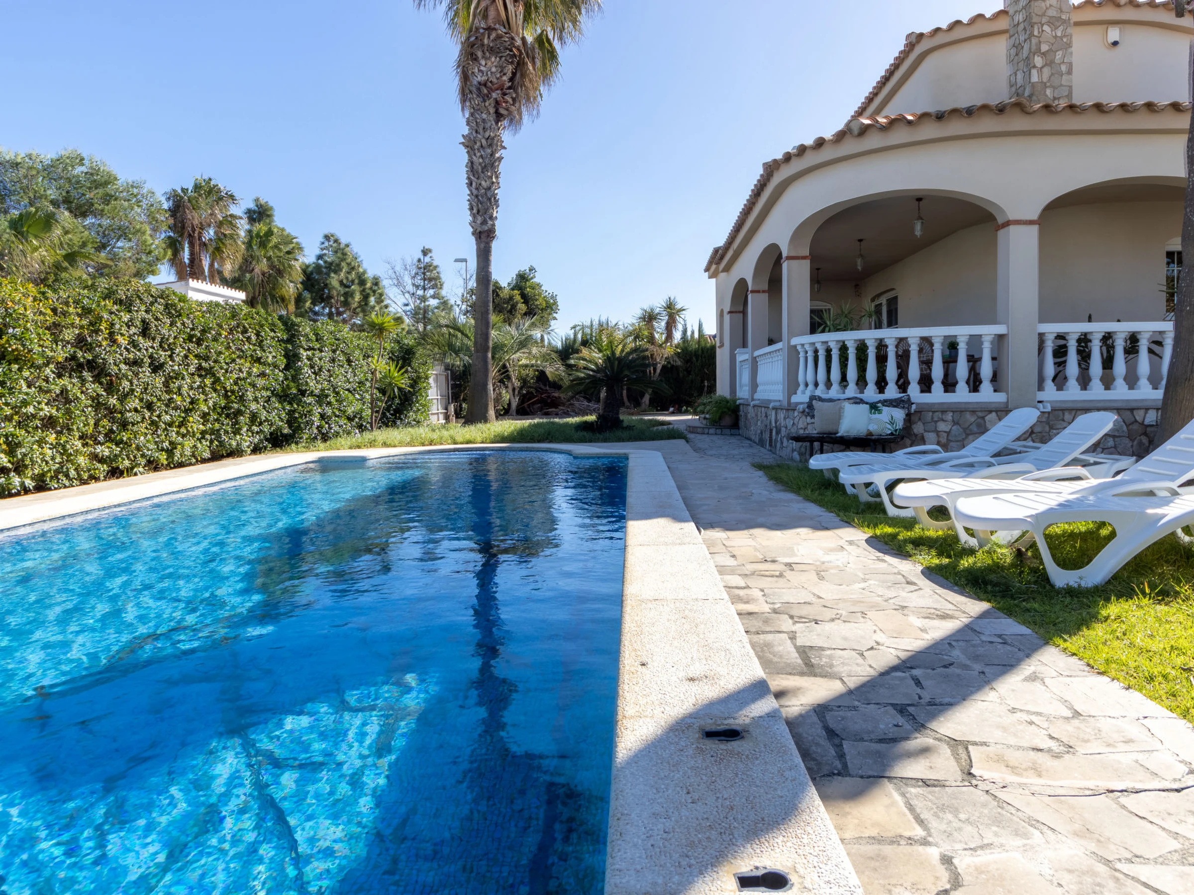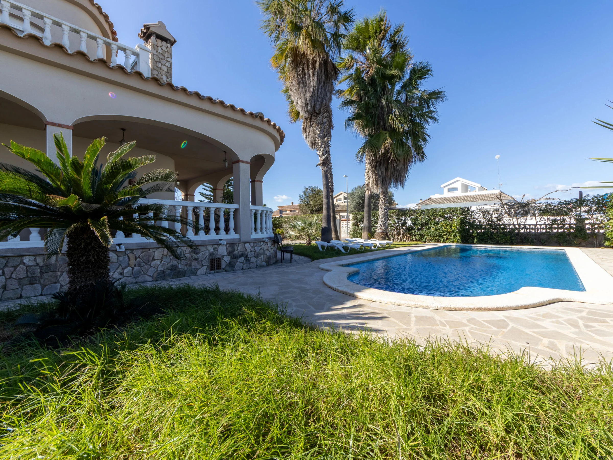 Urb. Riumar à 8 km de Deltebre: Maison accueillante, confortable "Primavera", de 2 étages. Situation tranquille, ensoleillée, excellente situation: centrale mais tranquille, à 200 m de la mer, à 200 m de la plage. A usage privé: terrain (clôturé), piscine rectangulaire (7 x 4 m, profondeur 190 cm, disponibilité saisonnière: [hidden] - [hidden] avec marches intérieures. Douche extérieure, pergola, terrasse, meubles de jardin, barbecue. Infrastructures de la Maison: Connexion WIFI, air-conditionné, lave-linge. Place de parking près de la maison sur le terrain. Magasin d'alimentation 200 m, supermarché 300 m, restaurant, bar, boulangerie 200 m, arrêt de bus "Riumar" 100 m, gare ferroviaire "Aldea- Amposta" 25 km, plage de sable "Riumar" 500 m. Port plaisance 1 km. Attractions à proximité: Parque natural Delta del Ebro 2 km, Tortosa 35 km, Playa el Trabucador 29 km, Barcelona 190 km, Port Aventura 70 km. Région de randonnées: Parque natural Puerto Tortosa Beseit 52 km, GR 92 15 km. Veuillez noter: voiture recommandée. Adapté(e) aux familles. Groupes de jeunes sur demande seulement.