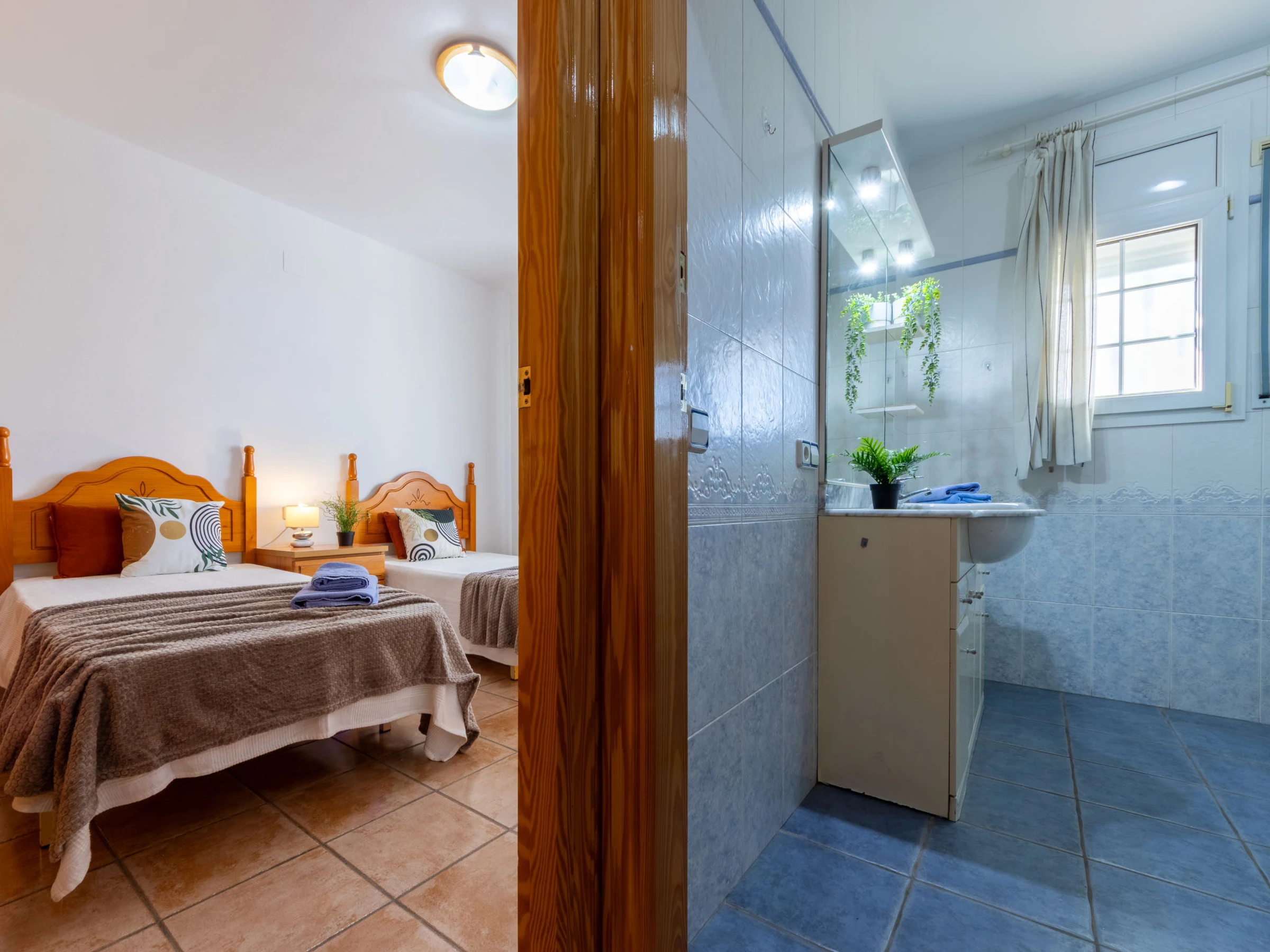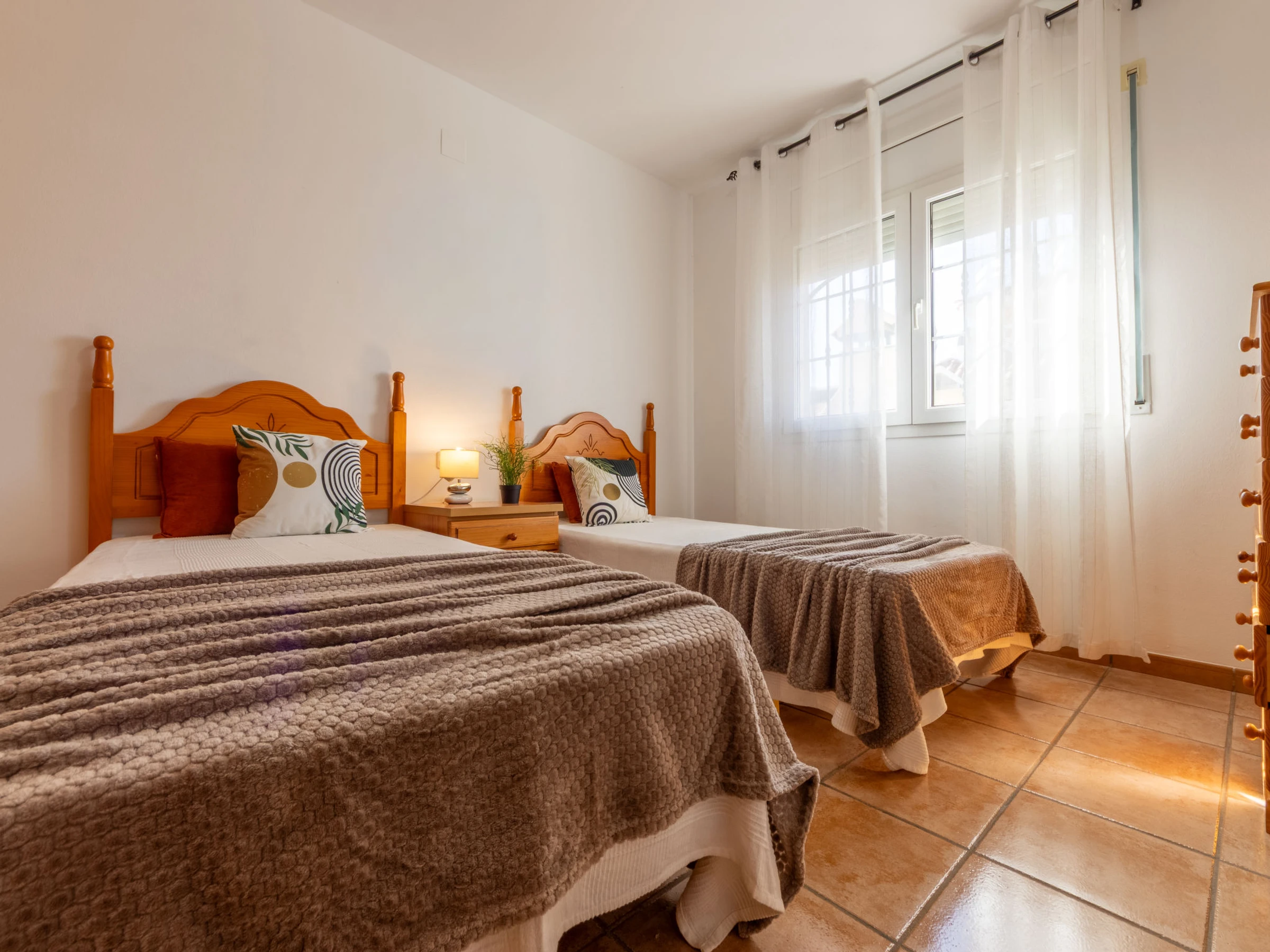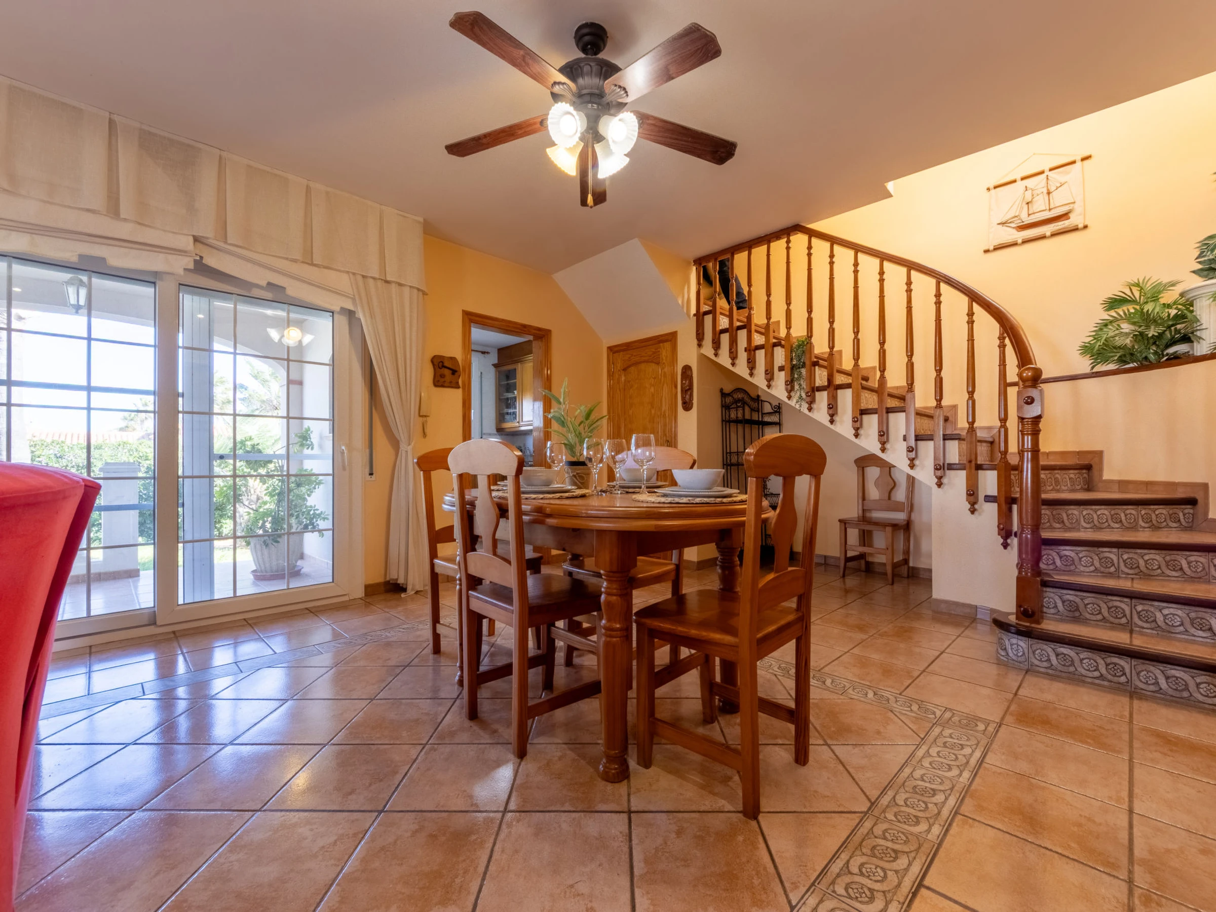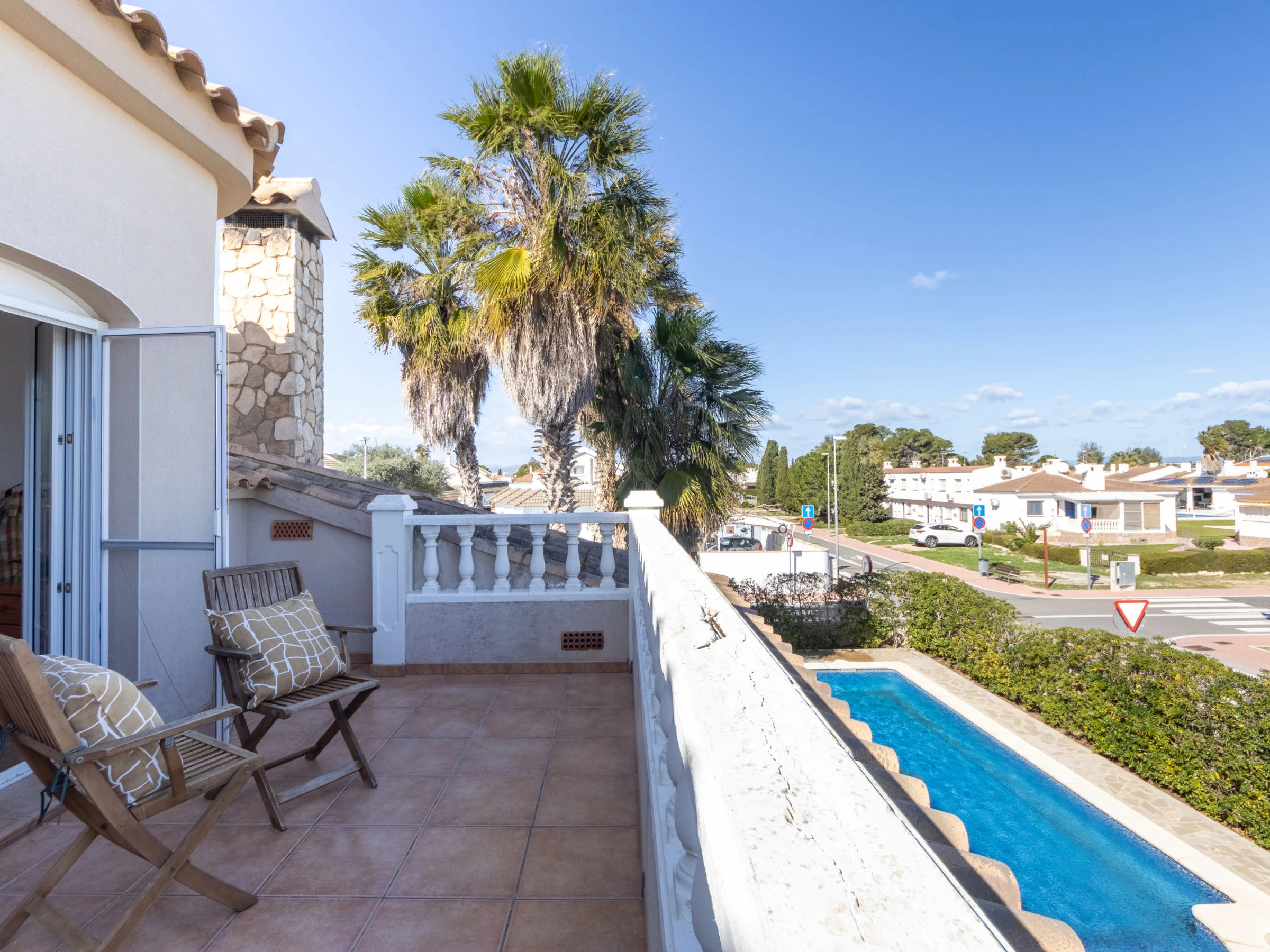 Urb. Riumar à 8 km de Deltebre: Maison accueillante, confortable "Primavera", de 2 étages. Situation tranquille, ensoleillée, excellente situation: centrale mais tranquille, à 200 m de la mer, à 200 m de la plage. A usage privé: terrain (clôturé), piscine rectangulaire (7 x 4 m, profondeur 190 cm, disponibilité saisonnière: [hidden] - [hidden] avec marches intérieures. Douche extérieure, pergola, terrasse, meubles de jardin, barbecue. Infrastructures de la Maison: Connexion WIFI, air-conditionné, lave-linge. Place de parking près de la maison sur le terrain. Magasin d'alimentation 200 m, supermarché 300 m, restaurant, bar, boulangerie 200 m, arrêt de bus "Riumar" 100 m, gare ferroviaire "Aldea- Amposta" 25 km, plage de sable "Riumar" 500 m. Port plaisance 1 km. Attractions à proximité: Parque natural Delta del Ebro 2 km, Tortosa 35 km, Playa el Trabucador 29 km, Barcelona 190 km, Port Aventura 70 km. Région de randonnées: Parque natural Puerto Tortosa Beseit 52 km, GR 92 15 km. Veuillez noter: voiture recommandée. Adapté(e) aux familles. Groupes de jeunes sur demande seulement.