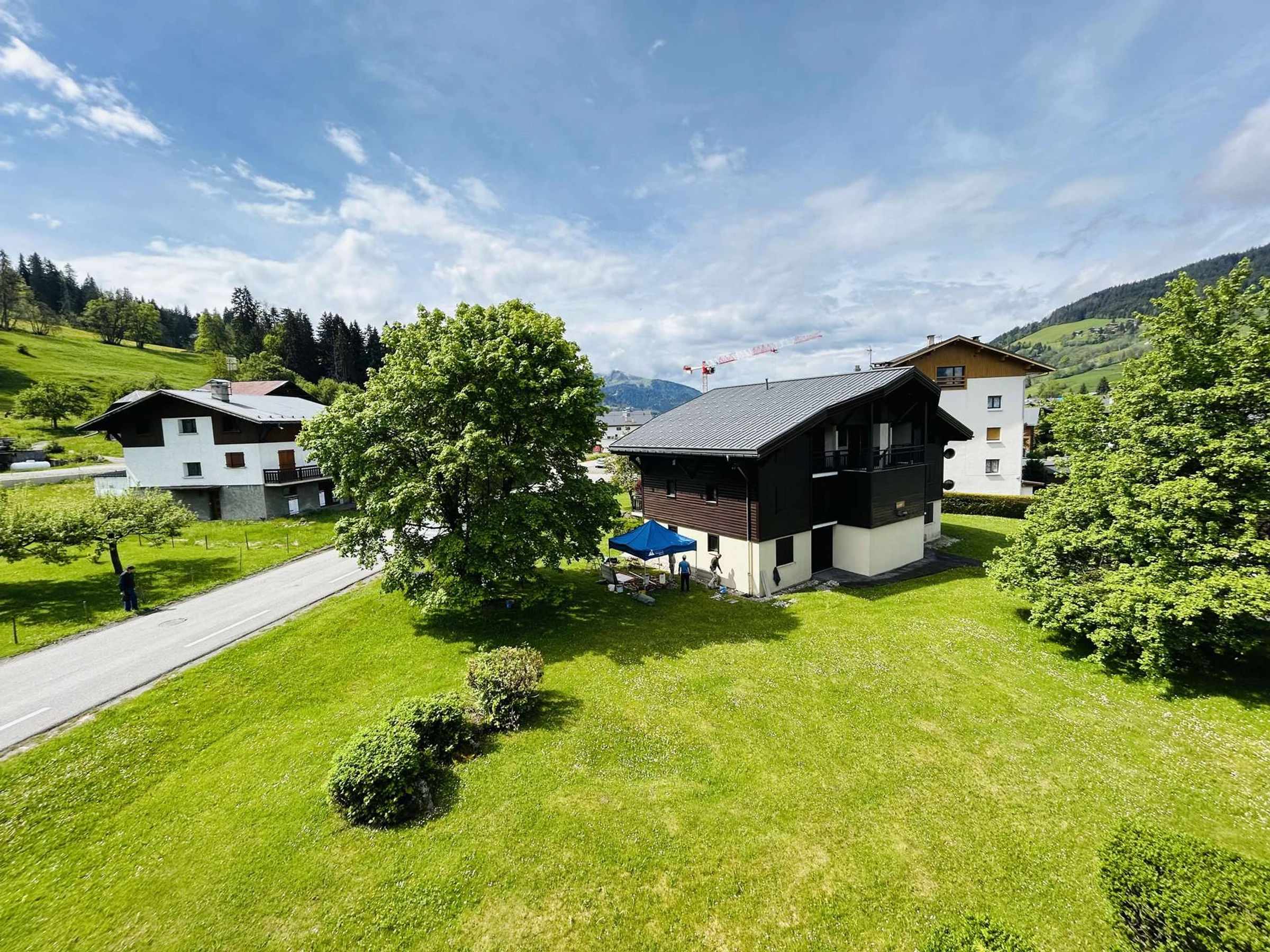 Ensemble de 5 chalets situé à 1,9 km de la télécabine de la Princesse. Supermarché à 500m. Centre-village de Megève à 2,5 km. Pistes de ski de fond à 500m. Vastes espaces verts autour des chalets.