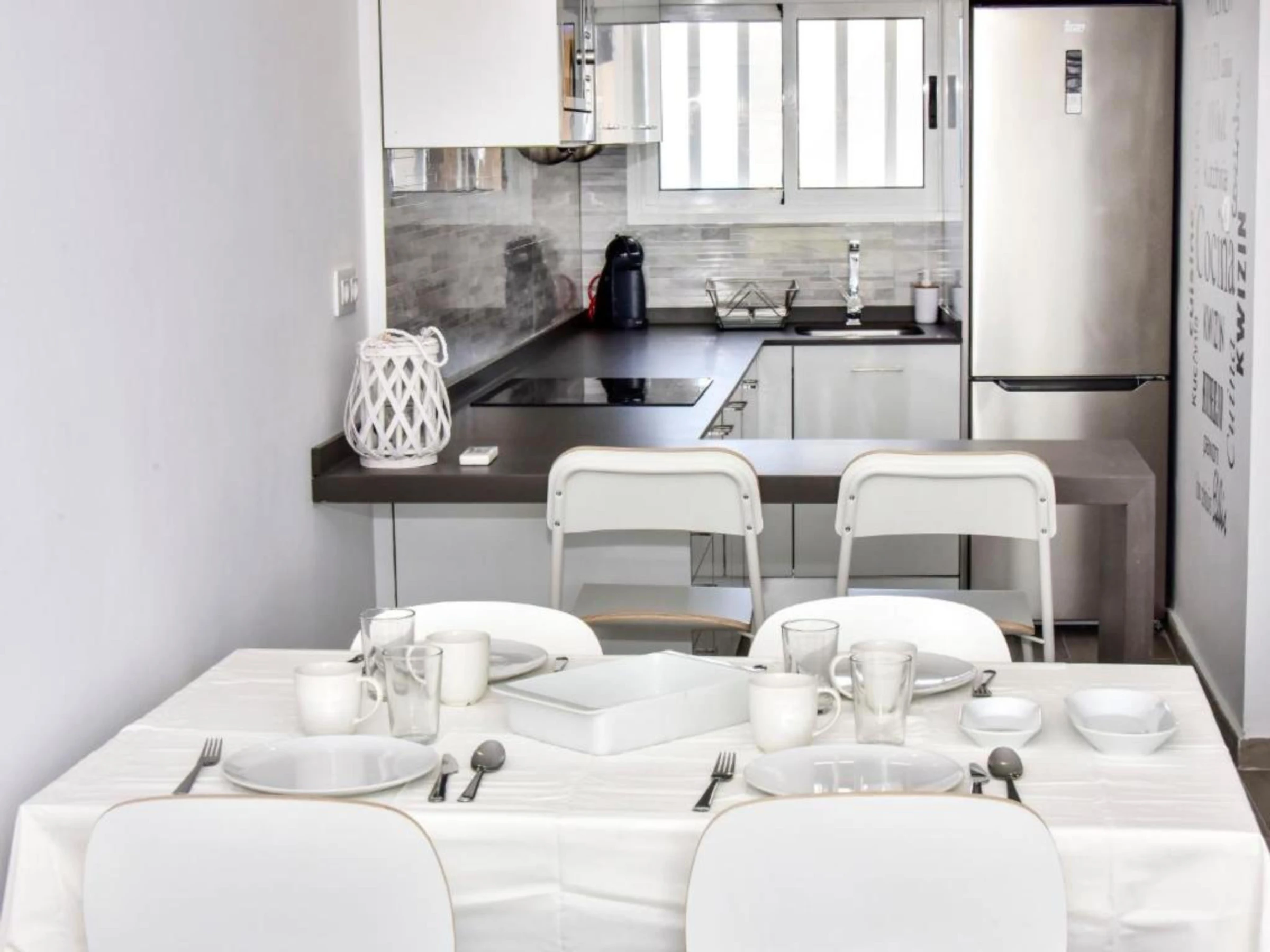 L'appartement peut accueillir 5 personnes, réparties dans 2 chambres avec une configuration confortable : un lit double, deux lits individuels et un canapé. Sa surface de 61 mètres carrés est conçue avec goût et fonctionnalité, offrant un espace lumineux et confortable.