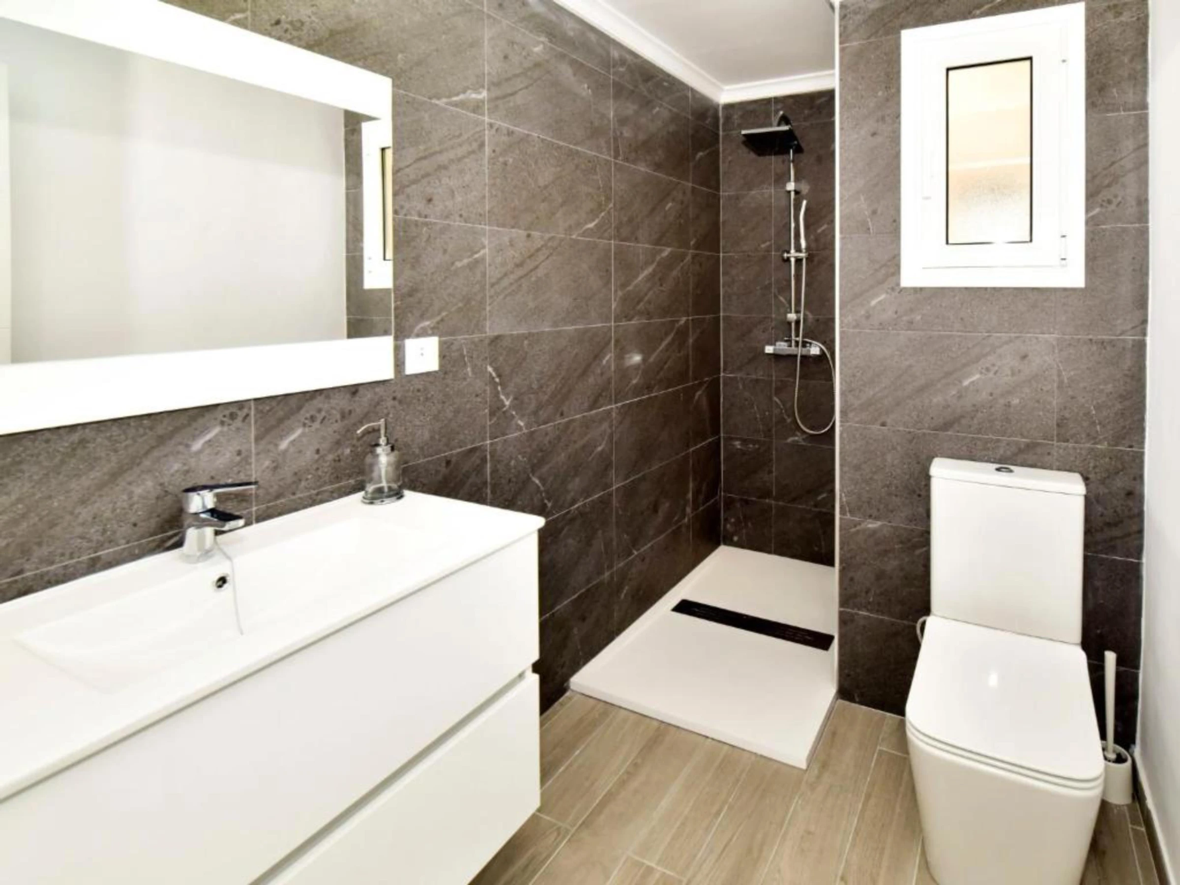 La cuisine américaine est entièrement équipée d'appareils électroménagers modernes, y compris un réfrigérateur, un lave-linge, un four, un micro-ondes, un lave-vaisselle, une cafetière, un grille-pain et une vaisselle complète. Le salon dispose de la climatisation pour garantir votre confort lors des journées les plus chaudes.